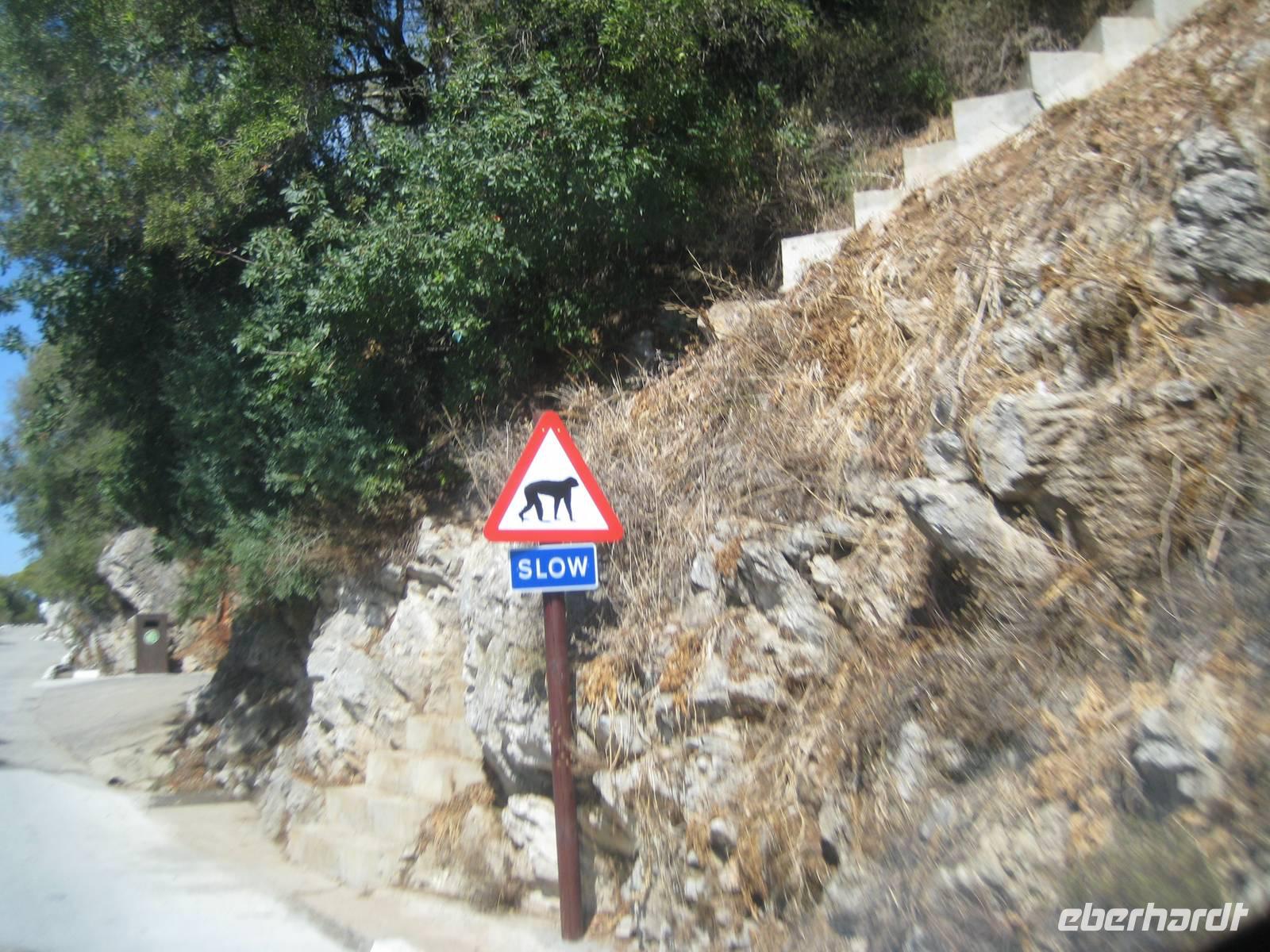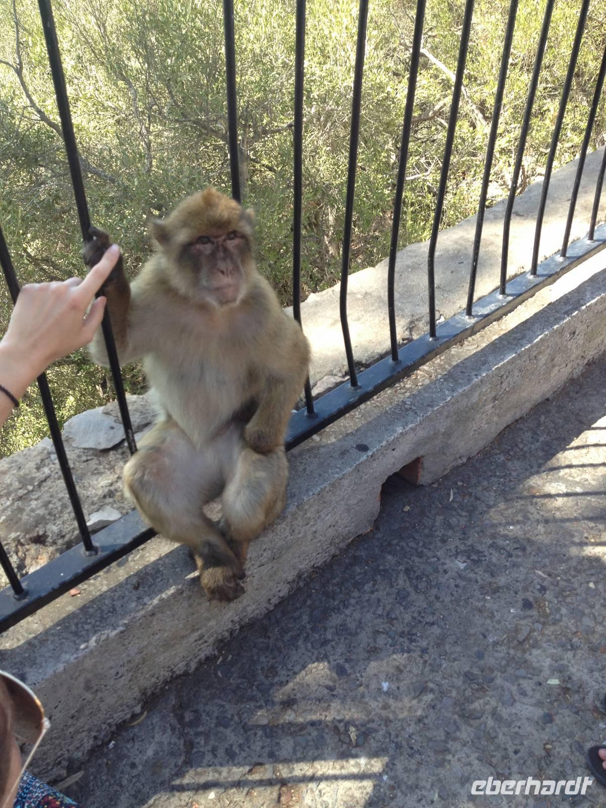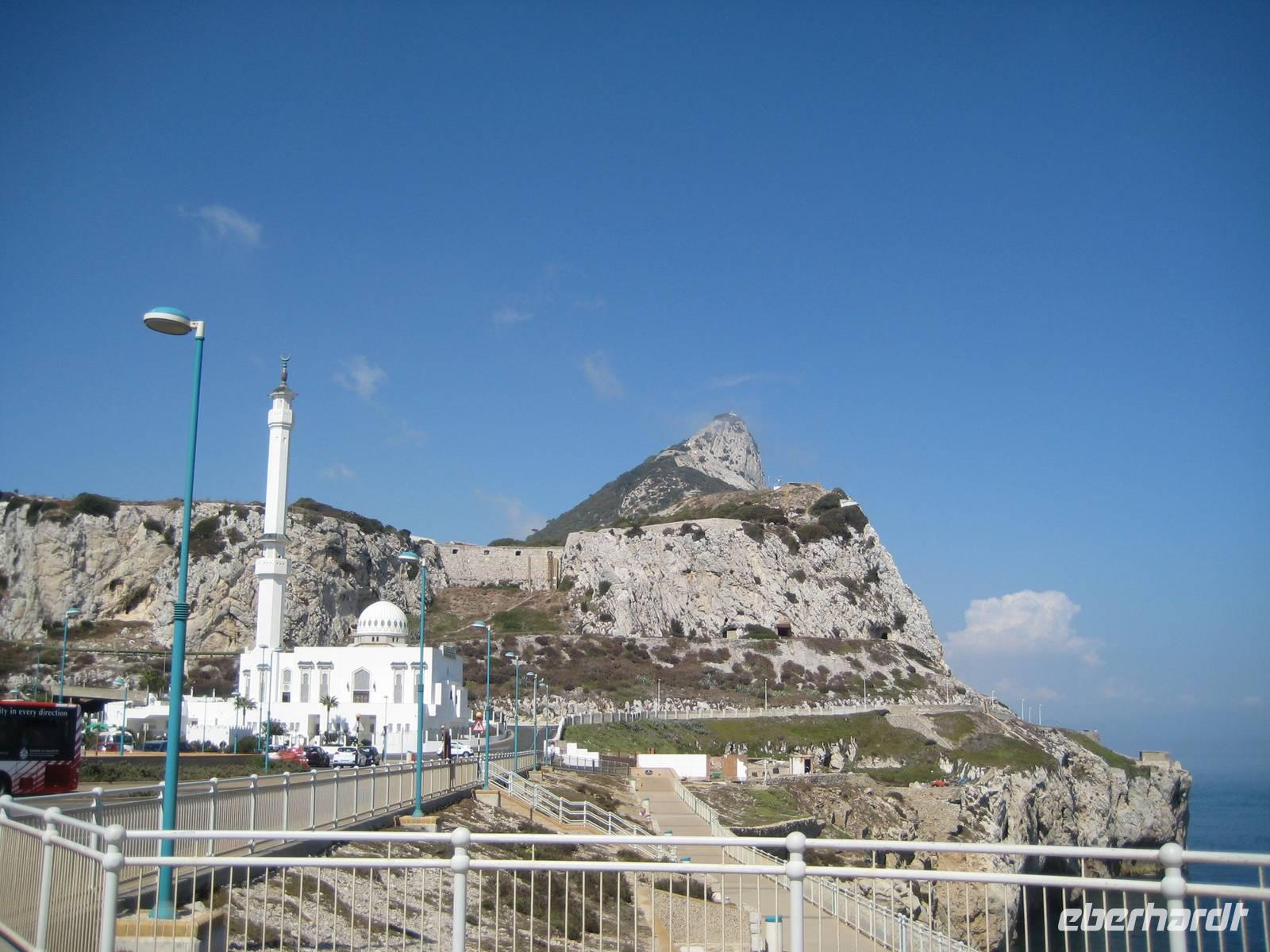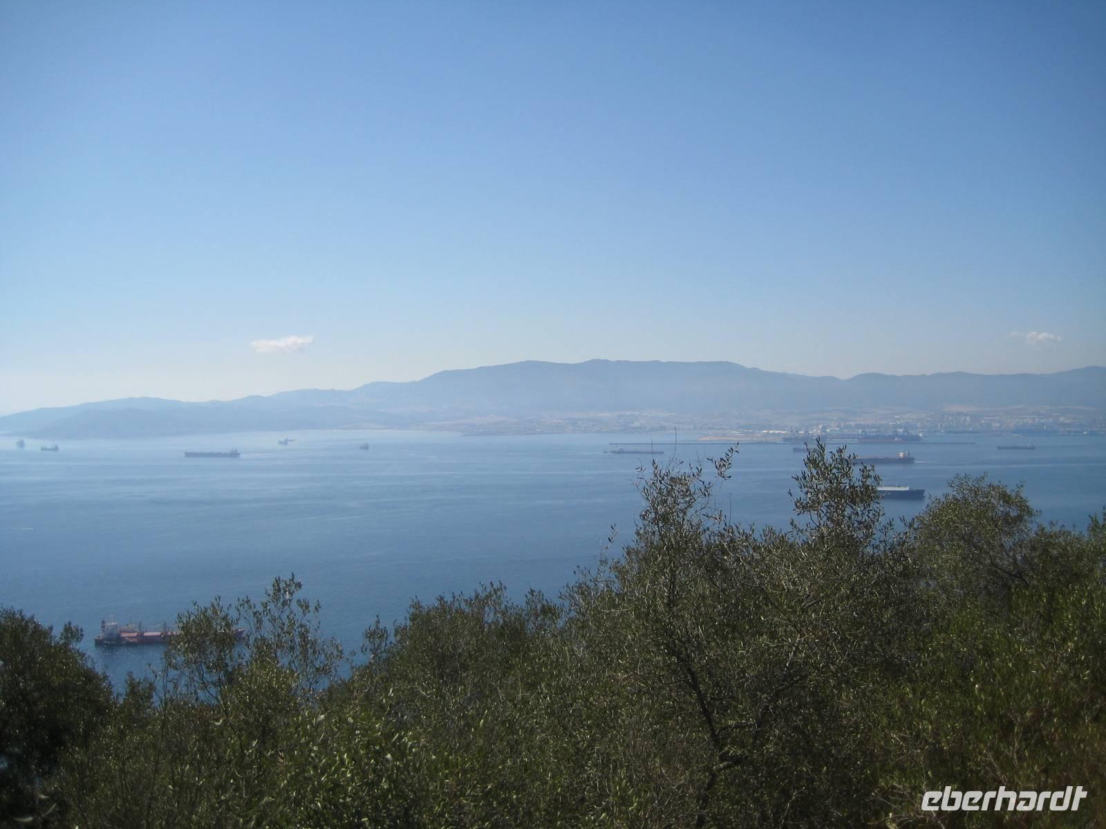 Wir treffen uns wieder und es geht in einem kleinen Bus zum Fels von Gibraltar. Auf dem Weg machen wir Halt an einem Aussichtspunkt, von wo aus man das nur 18km entfernte Afrika erblicken kann.