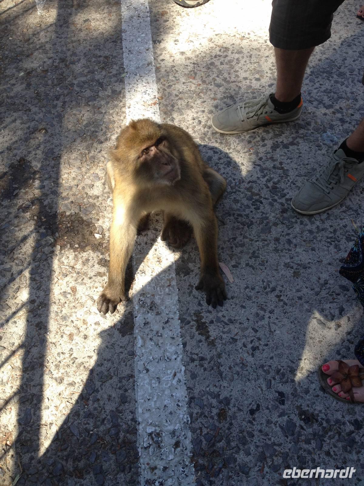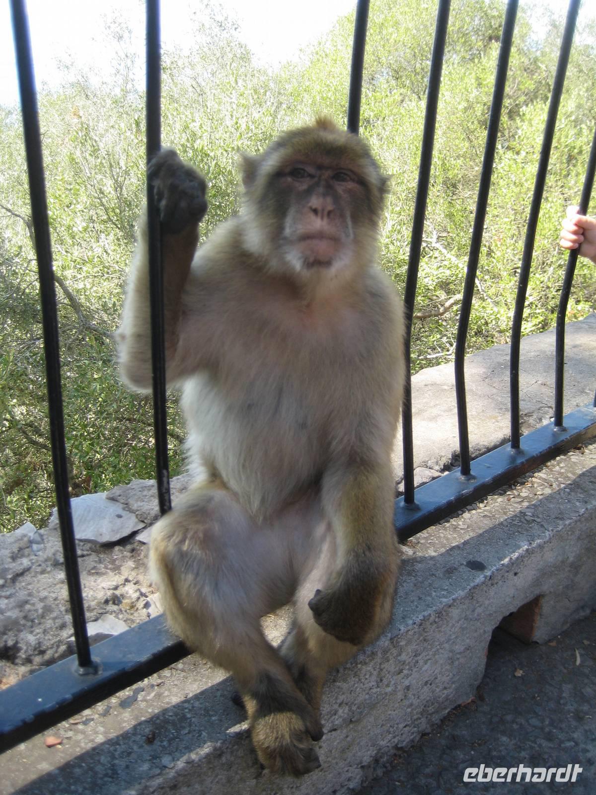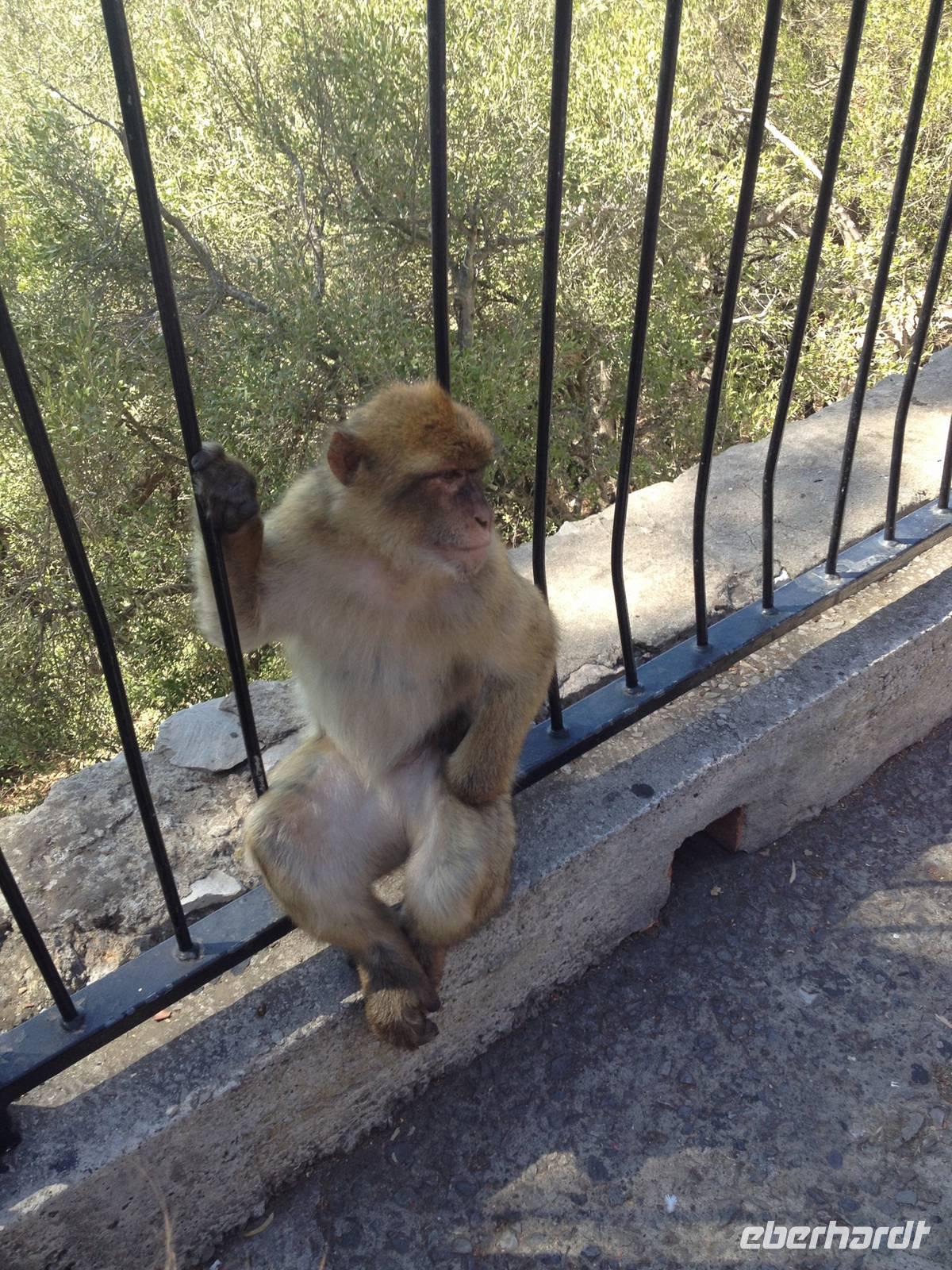 Wir treffen uns wieder und es geht in einem kleinen Bus zum Fels von Gibraltar. Auf dem Weg machen wir Halt an einem Aussichtspunkt, von wo aus man das nur 18km entfernte Afrika erblicken kann.