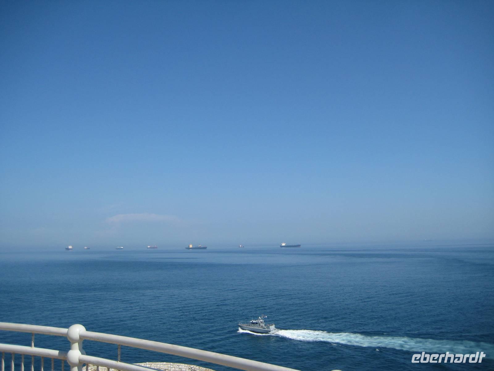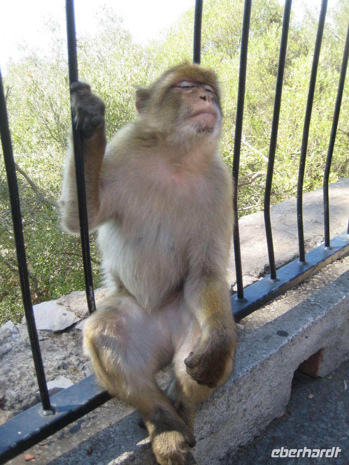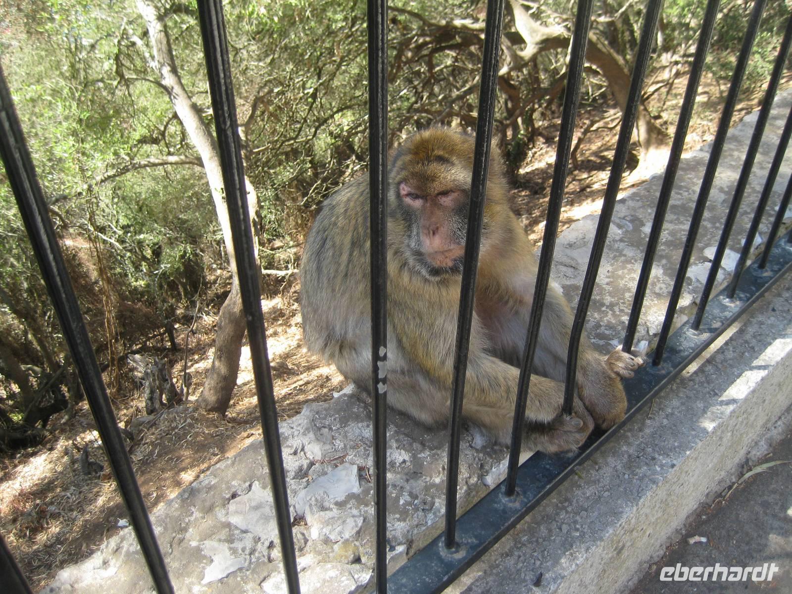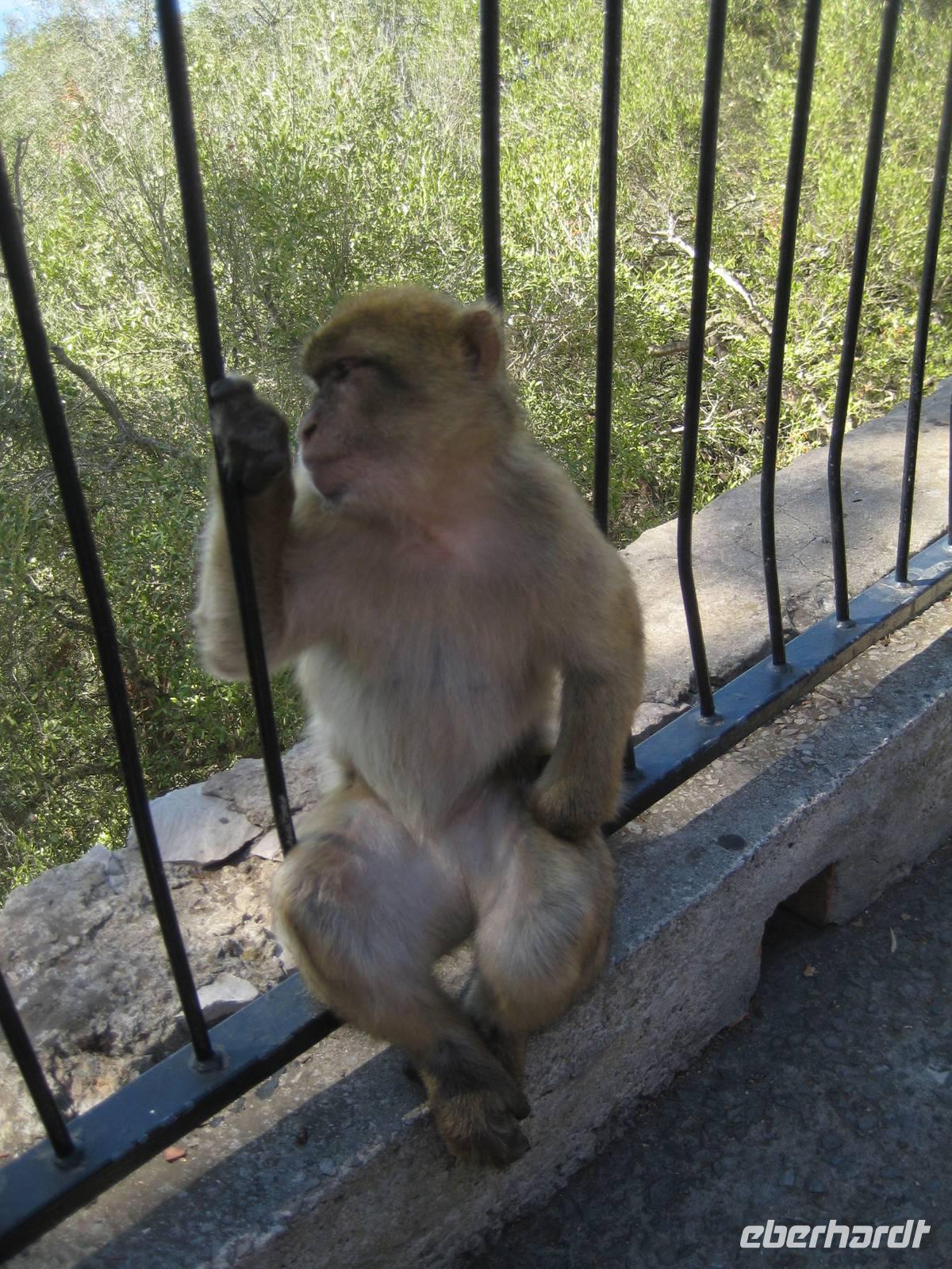 Wir treffen uns wieder und es geht in einem kleinen Bus zum Fels von Gibraltar. Auf dem Weg machen wir Halt an einem Aussichtspunkt, von wo aus man das nur 18km entfernte Afrika erblicken kann.