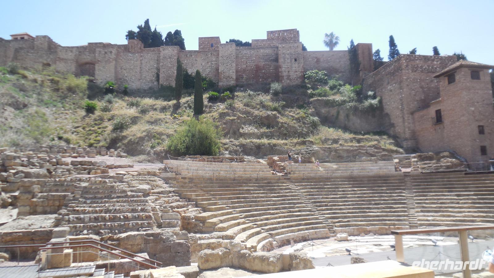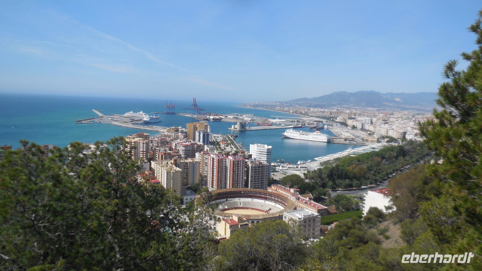 Dort machten wir den zweiten Stopp und konnten die ganze Stadt von oben sehen und wie die Burg Gibralfaro mit der maurische Festung Alcazaba verbunden ist.