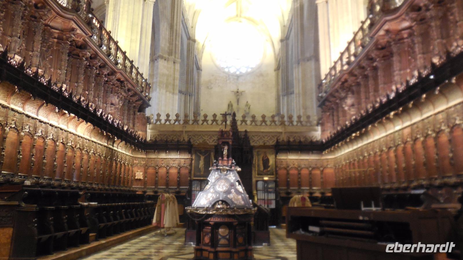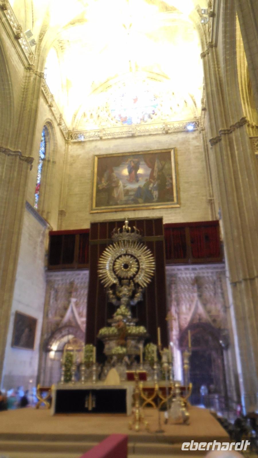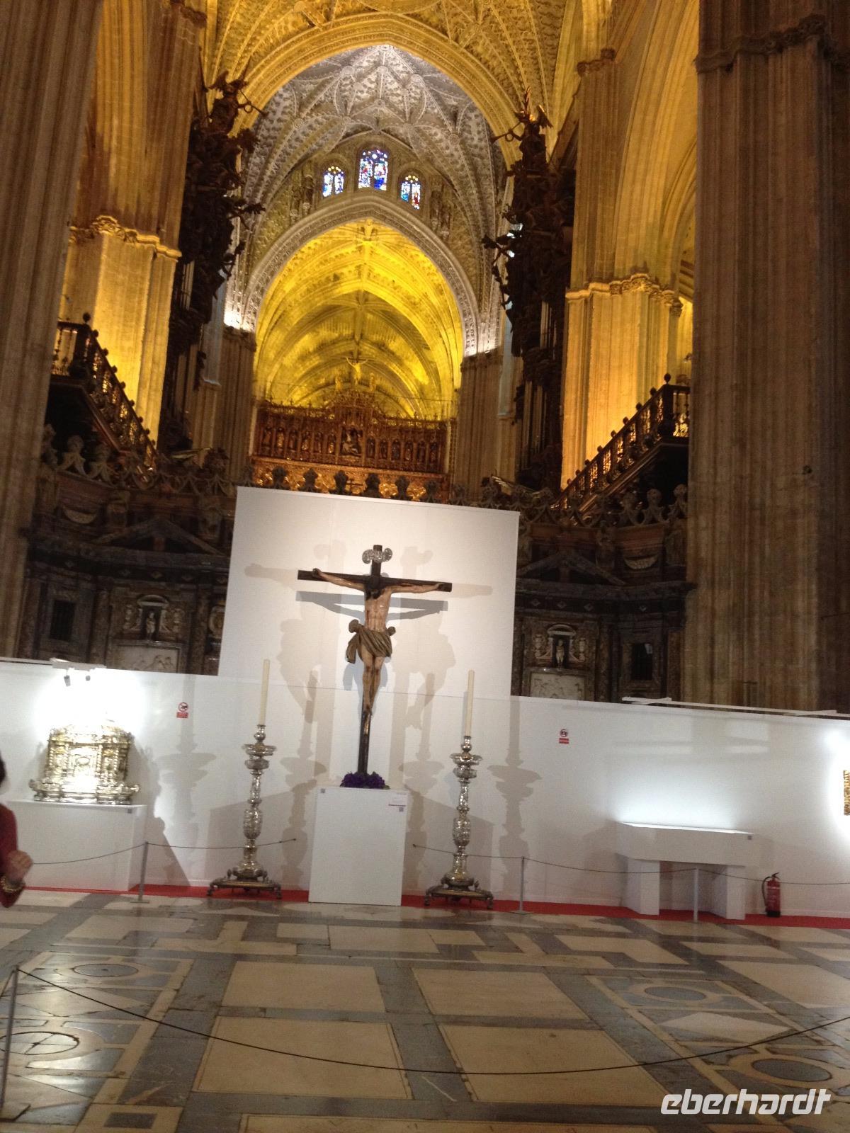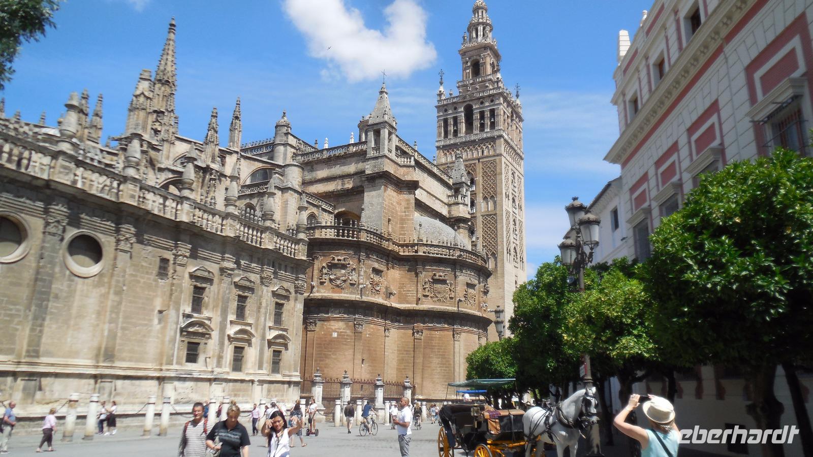 Danach trafen wir unsere örtliche Reiseleiterin Concha und besuchten die größte gotische Kathedrale der Welt mit ihrem alten Minarett, das heutzutage ein Glockenturm ist, bekannt als La Giralda. bei der Besichtigung in der Kathedrale trafen wir auf die Vorbereitungen für der Korpus Tag (Fronleichnam), besuchten das Grab von Kolumbus und verschiedene Altäre für die Prozessionen am Korpus Tag.