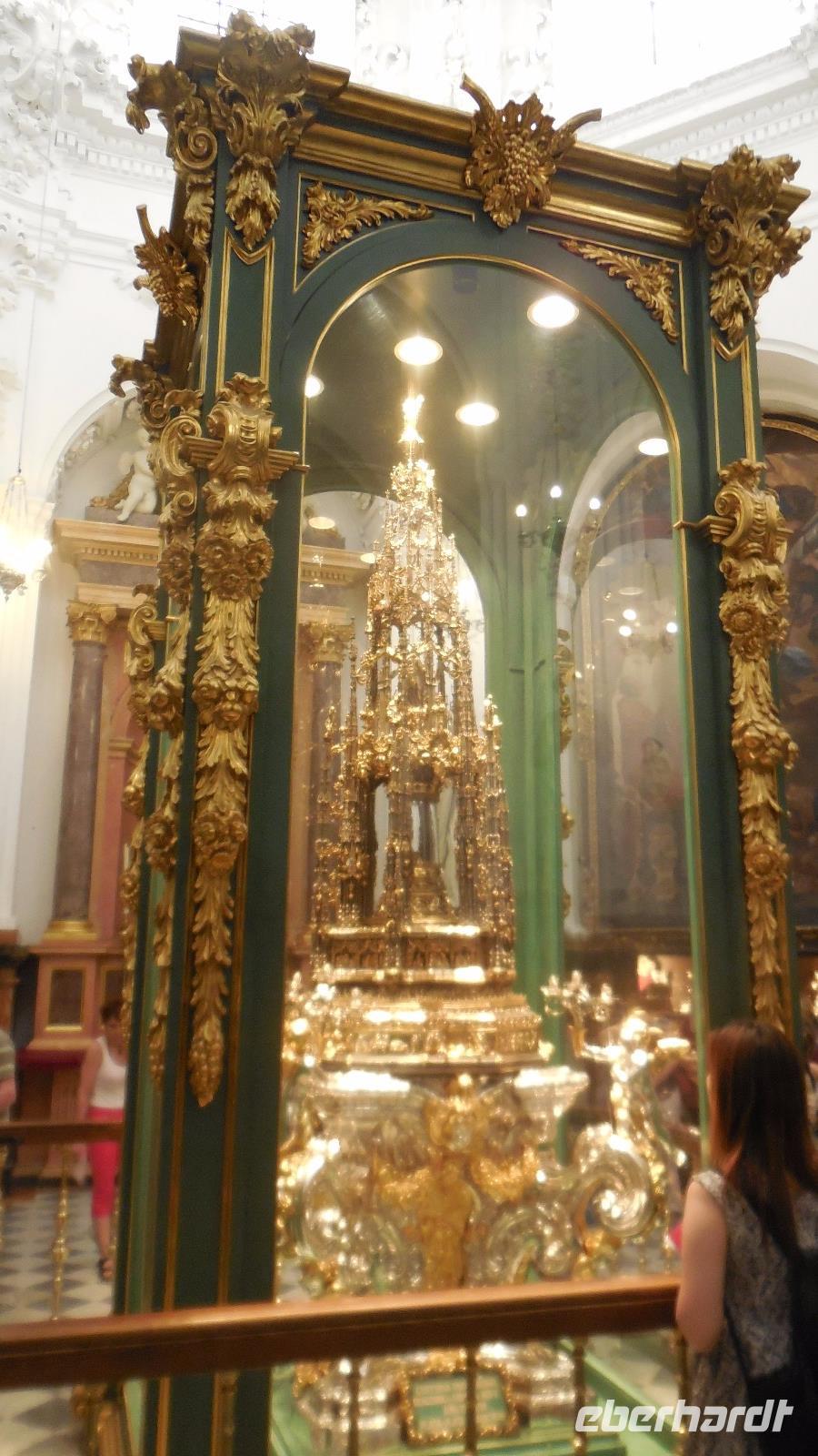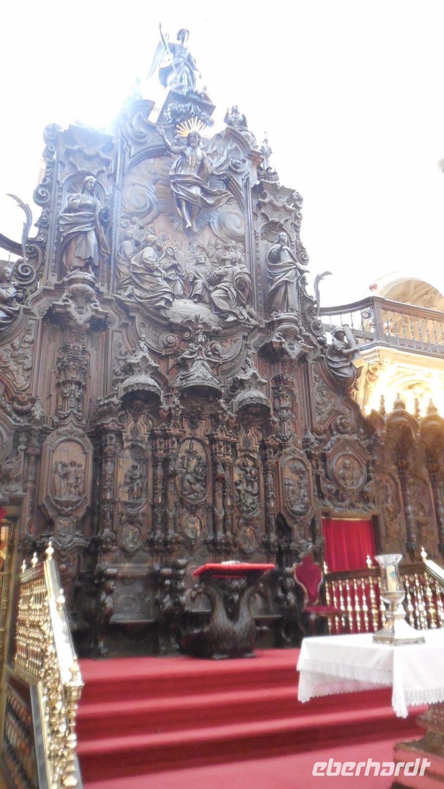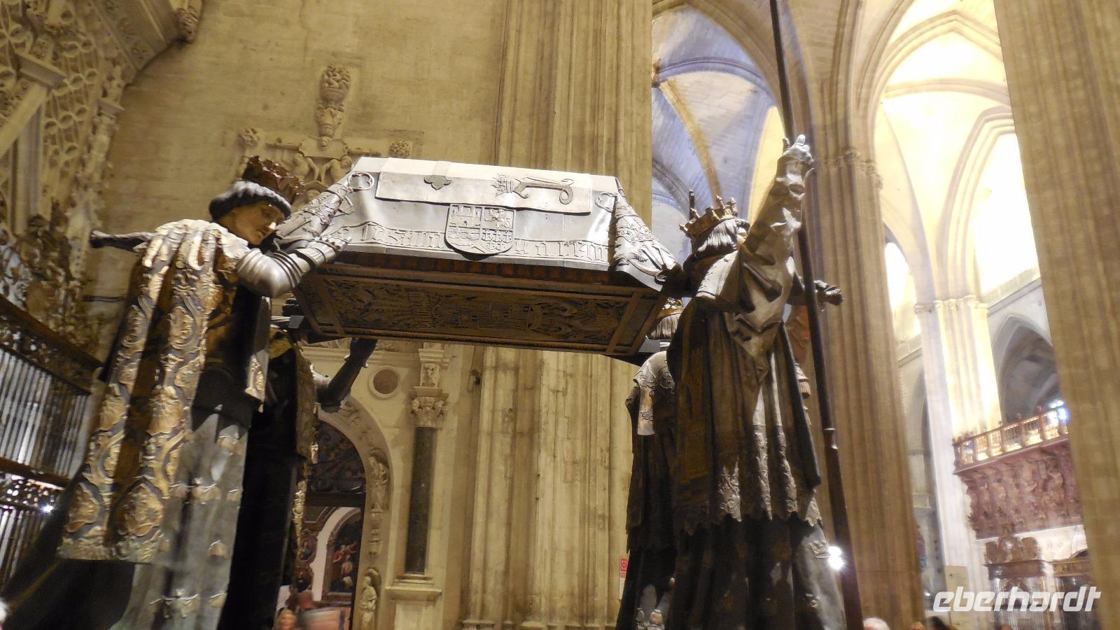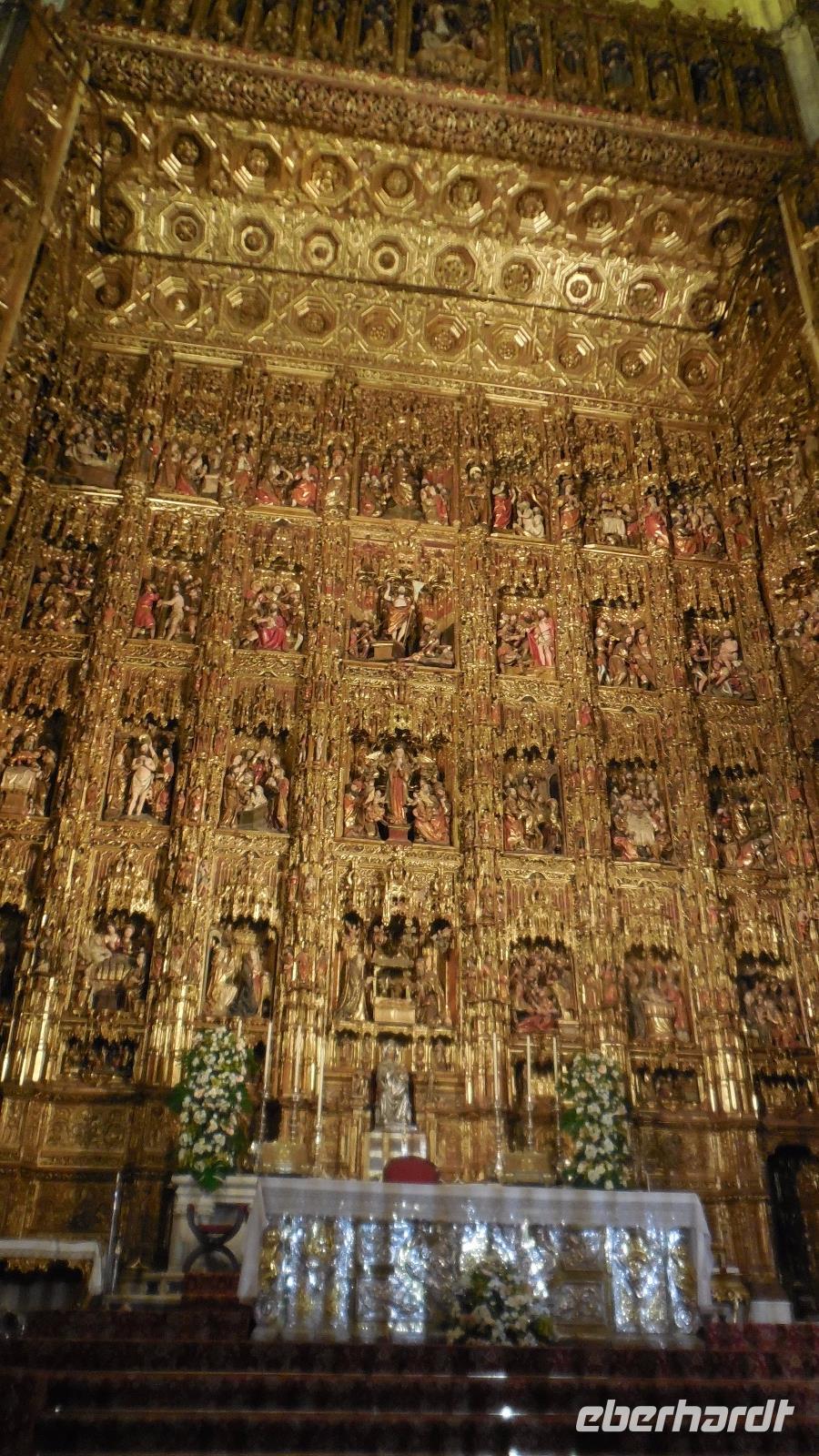 Danach trafen wir unsere örtliche Reiseleiterin Concha und besuchten die größte gotische Kathedrale der Welt mit ihrem alten Minarett, das heutzutage ein Glockenturm ist, bekannt als La Giralda. bei der Besichtigung in der Kathedrale trafen wir auf die Vorbereitungen für der Korpus Tag (Fronleichnam), besuchten das Grab von Kolumbus und verschiedene Altäre für die Prozessionen am Korpus Tag.