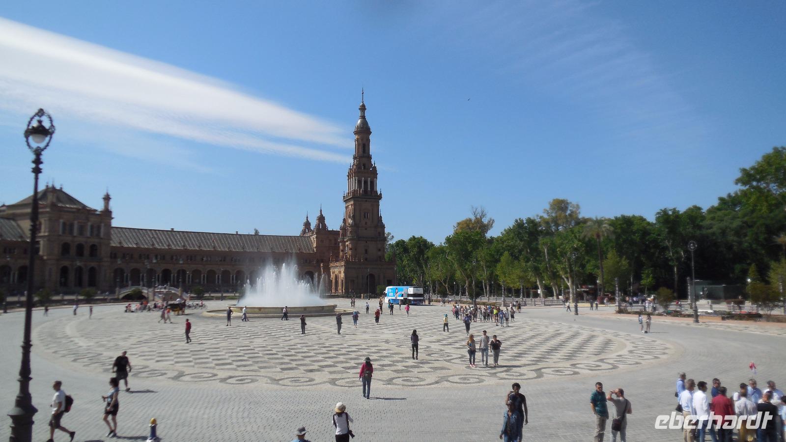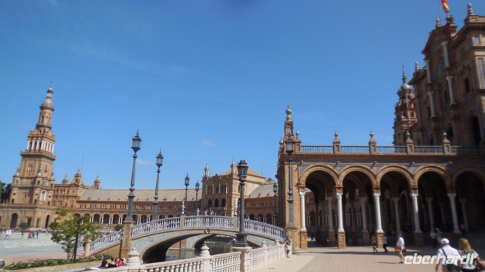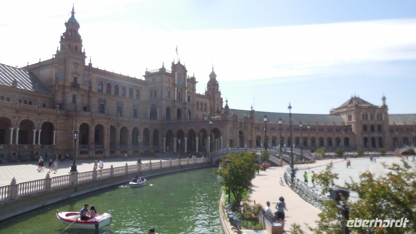 In Sevilla fuhren wir durch die Iberoamerikanische Ausstellung von 1929 und besuchten den größten Pavillon, den Spanien Platz "Plaza de España", wo all