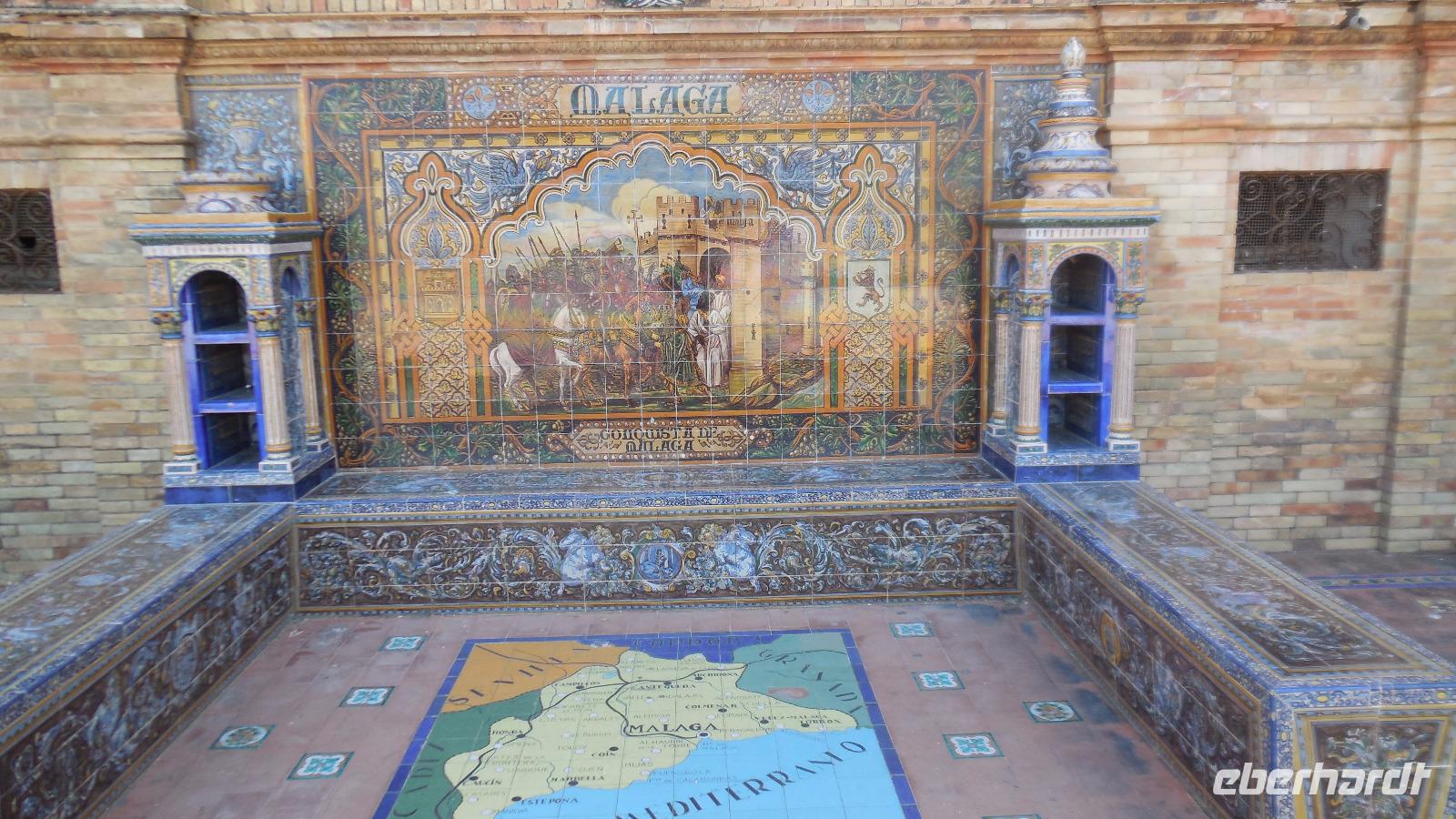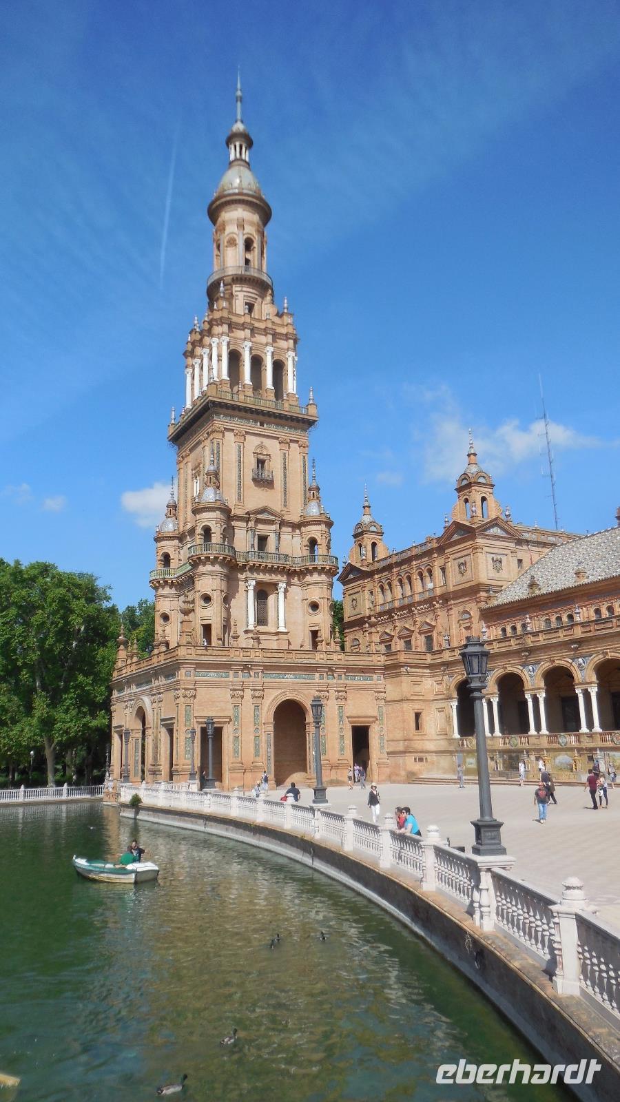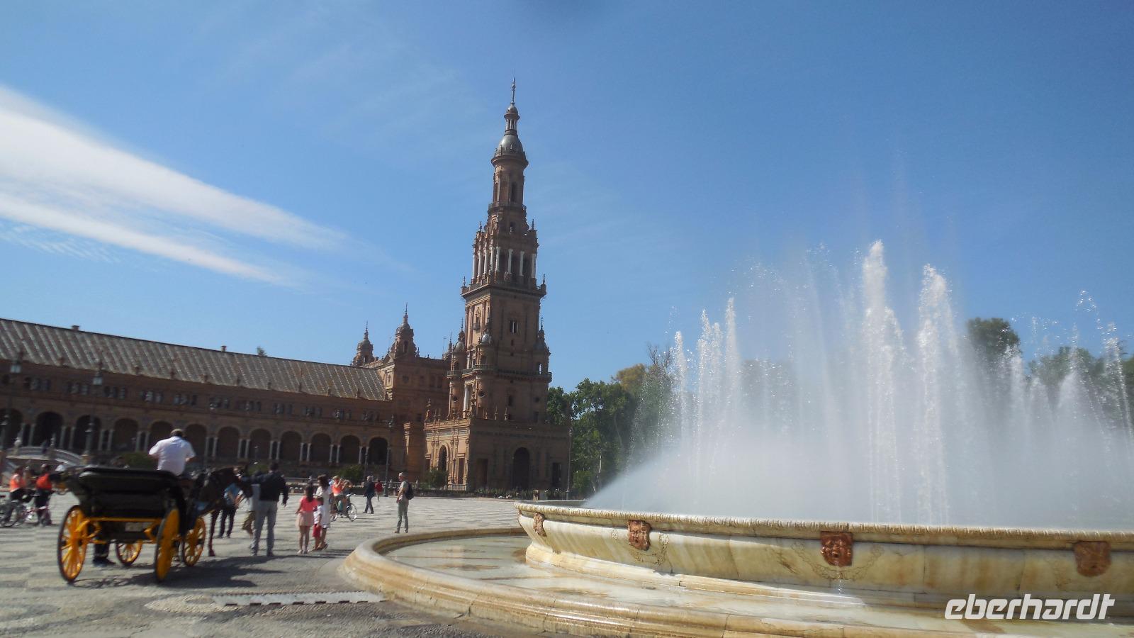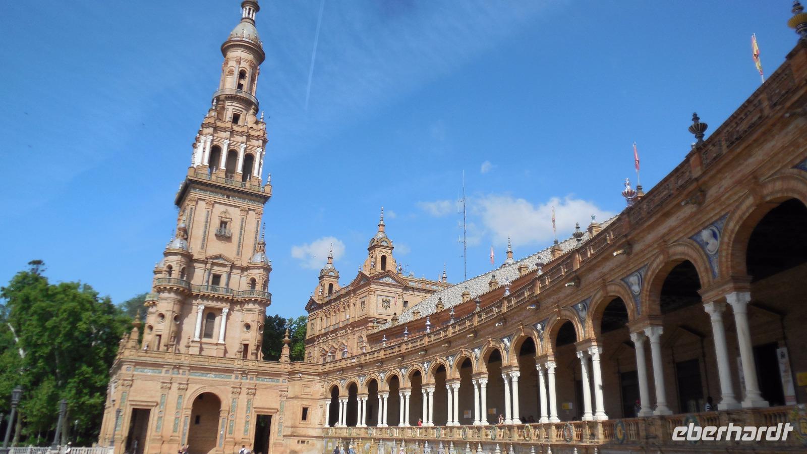 In Sevilla fuhren wir durch die Iberoamerikanische Ausstellung von 1929 und besuchten den größten Pavillon, den Spanien Platz "Plaza de España", wo all