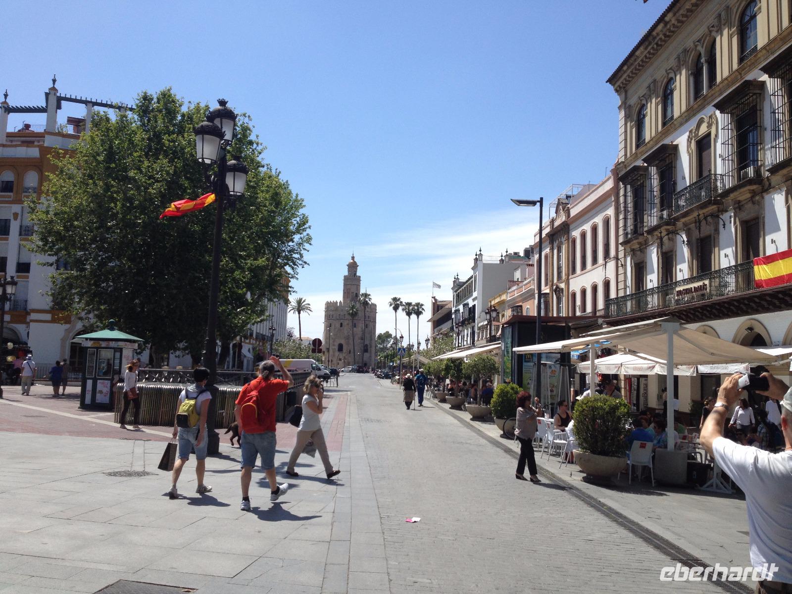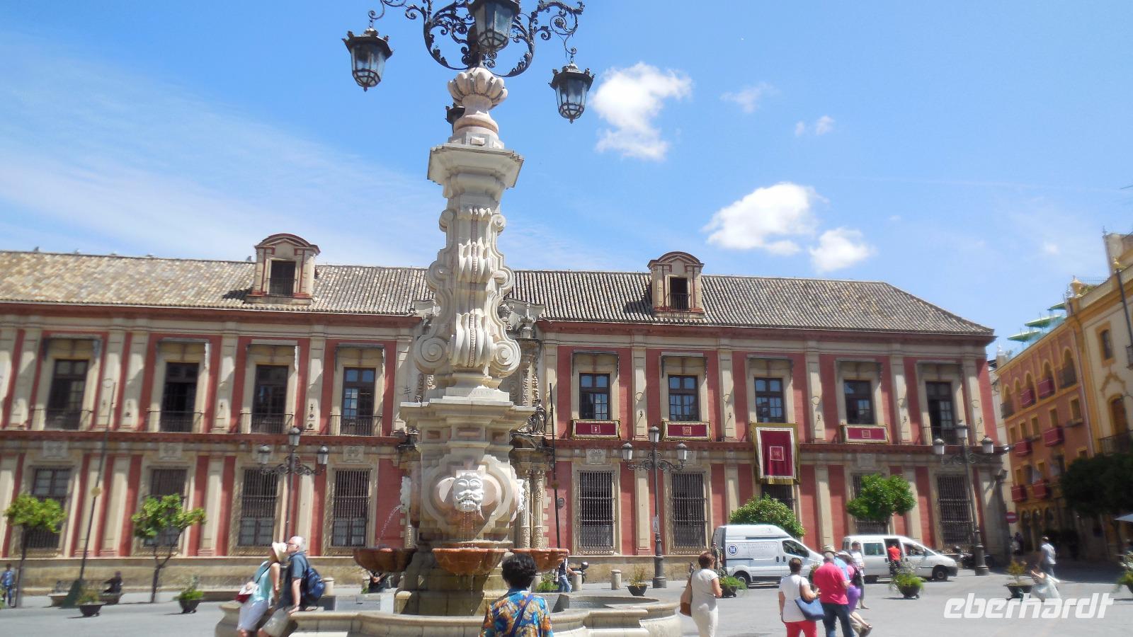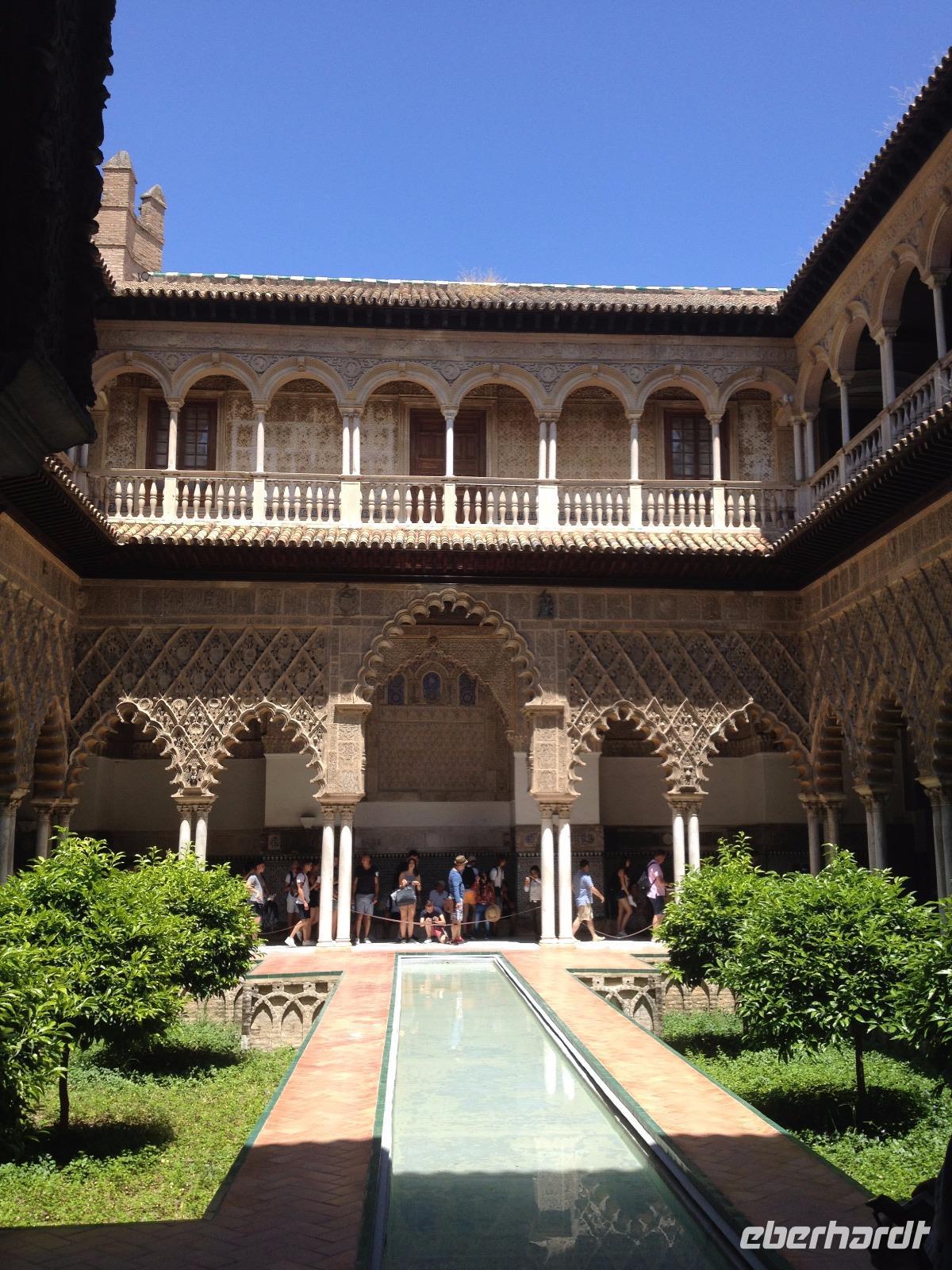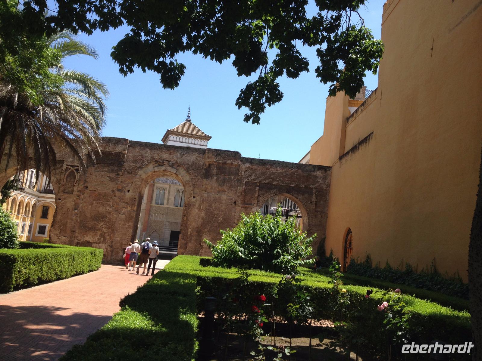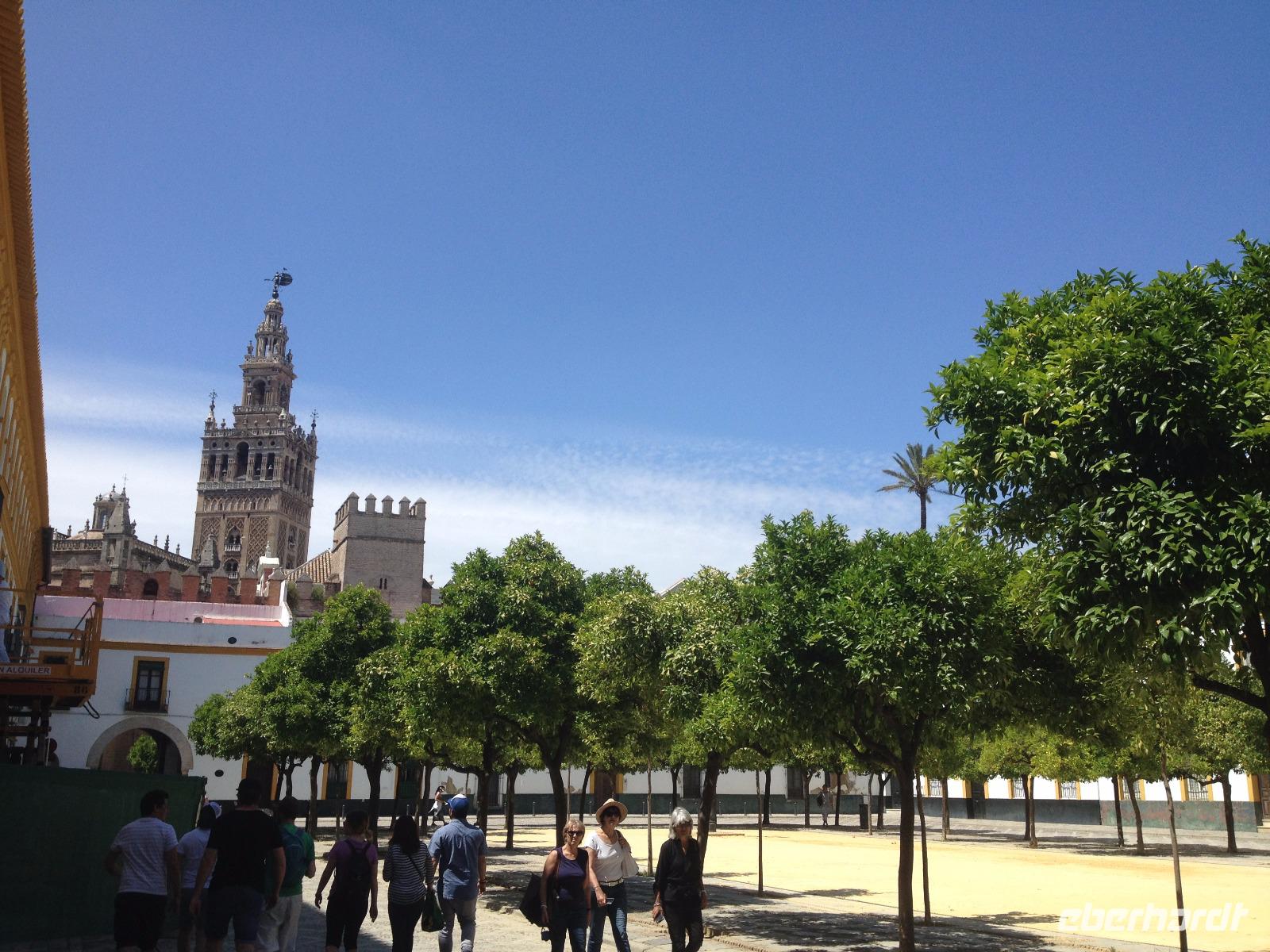 Danach kamen wir in das alte arabische Viertel "Santa Cruz". Wir bummelten durch die Gassen, die verschiedenen Patios de los Naranjos, Orangenbäume- Innenhofe, und entlang dem Königspalast bis zur Kathedrale.