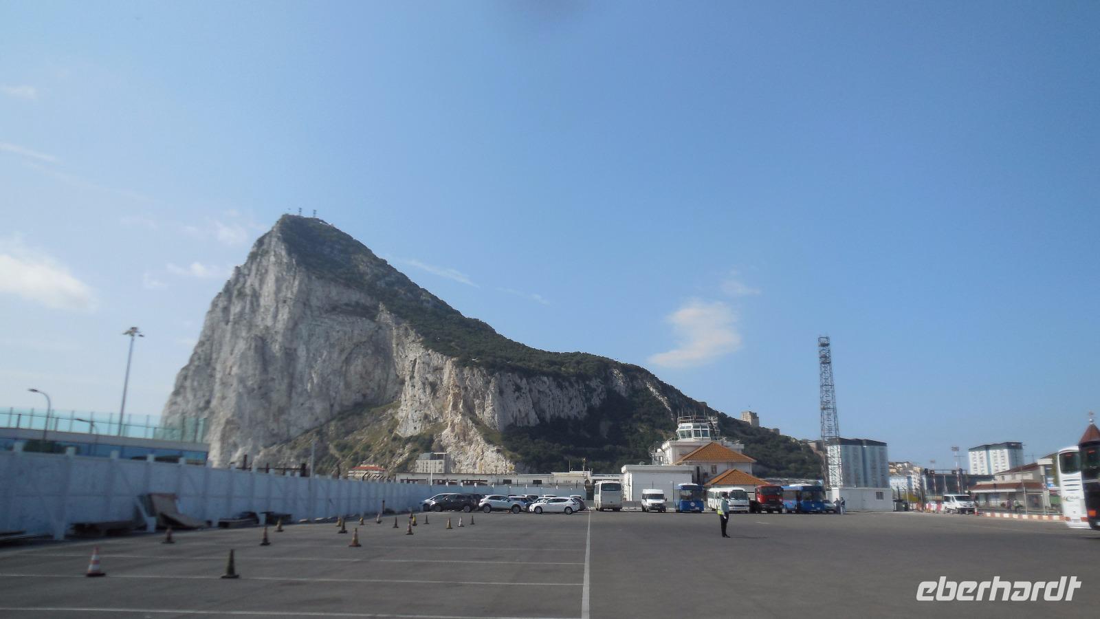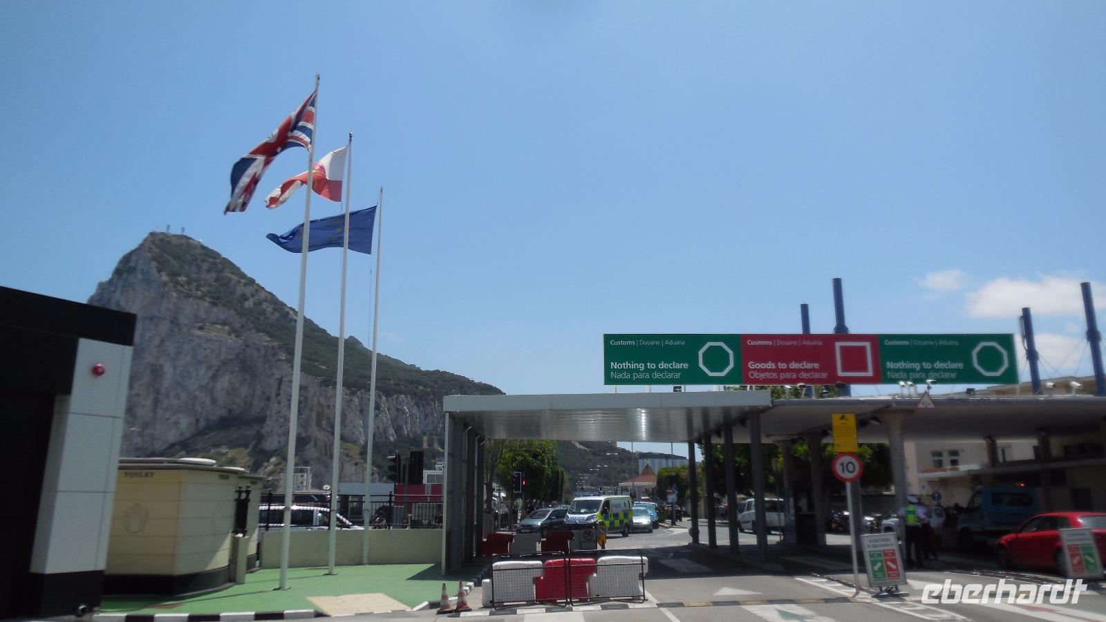 Wir überquerten problemlos die spanische und englische Grenze und kamen in der britischen Felsenstadt an.