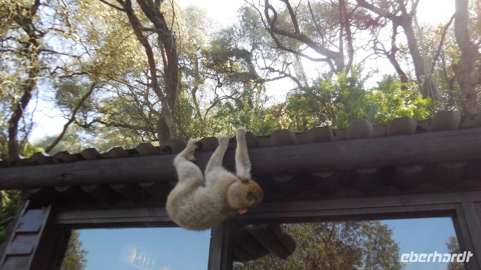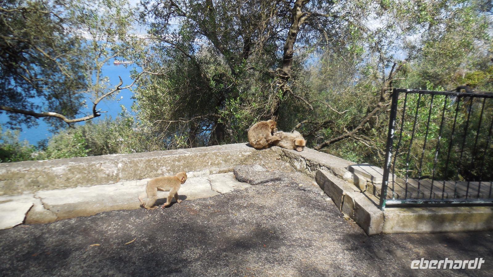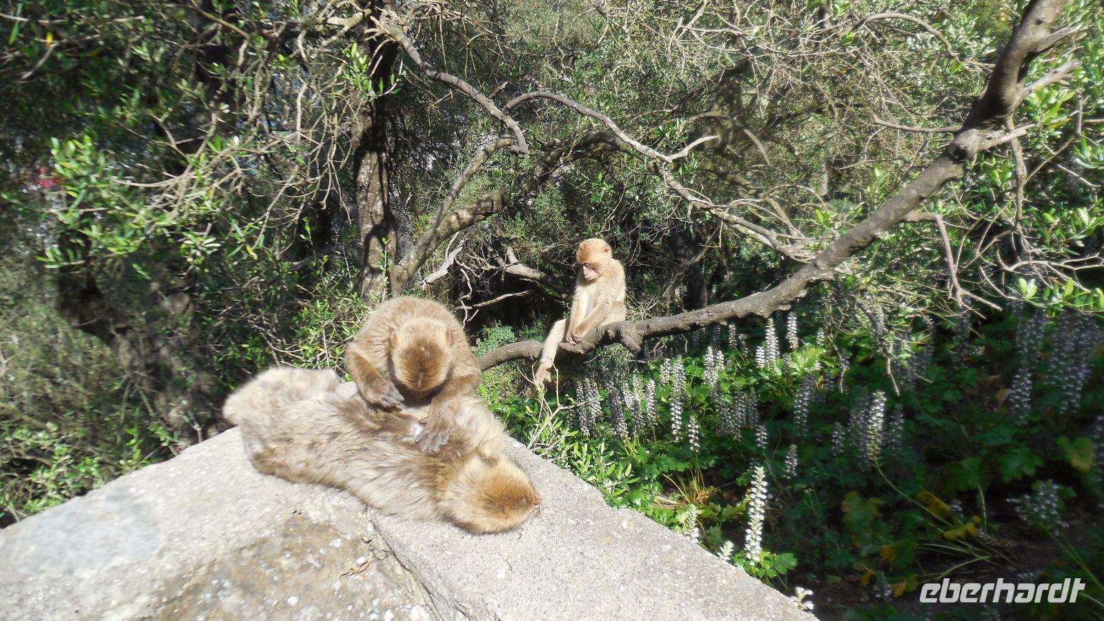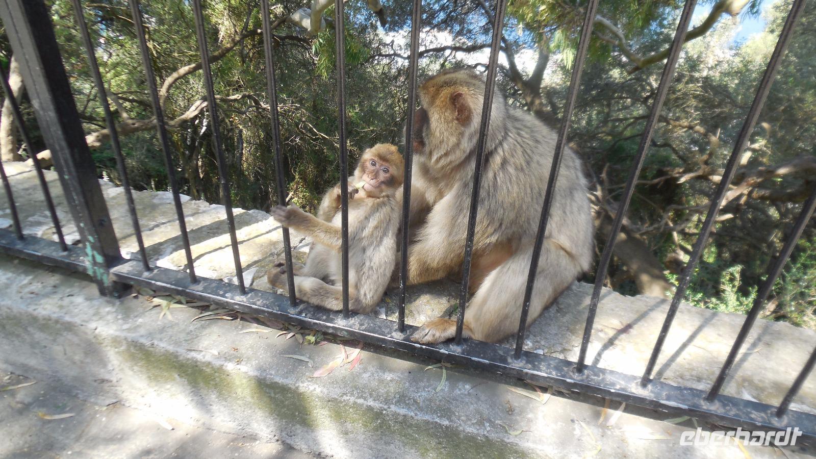 Danach kamen die auf dem Felsen lebenden Affen, um uns zu begrüßen und uns die Familie vorzustellen. Wir waren an der Futterstelle und die Affen haben auch unseren Bus inspiziert, haben ihn dann aber doch nicht als Mitfahrgelegenheit benutzt.