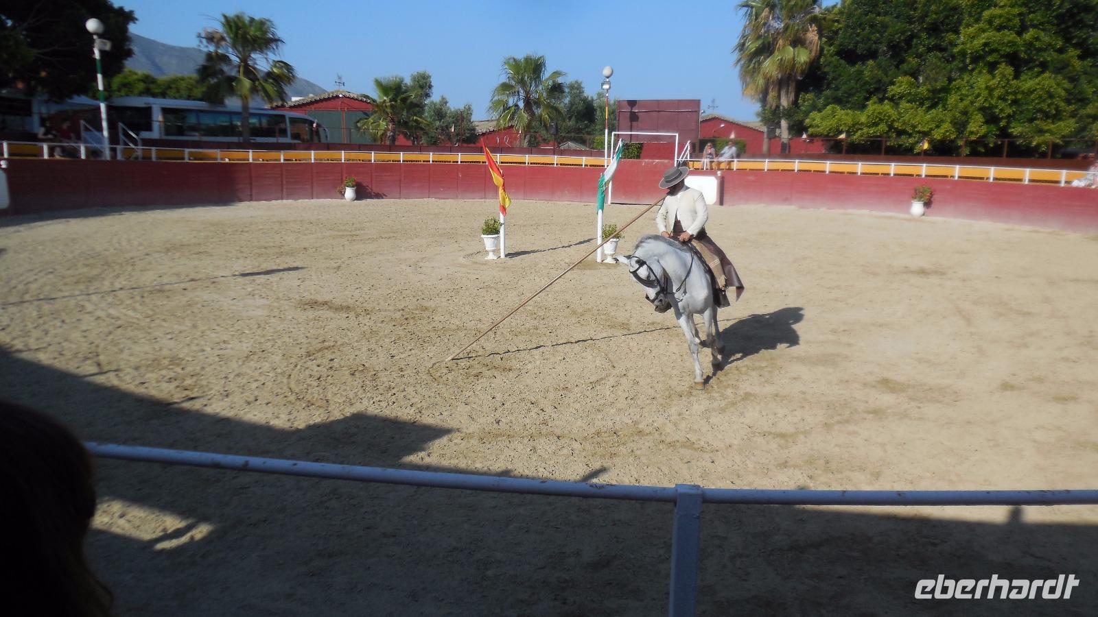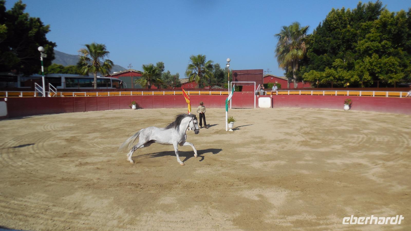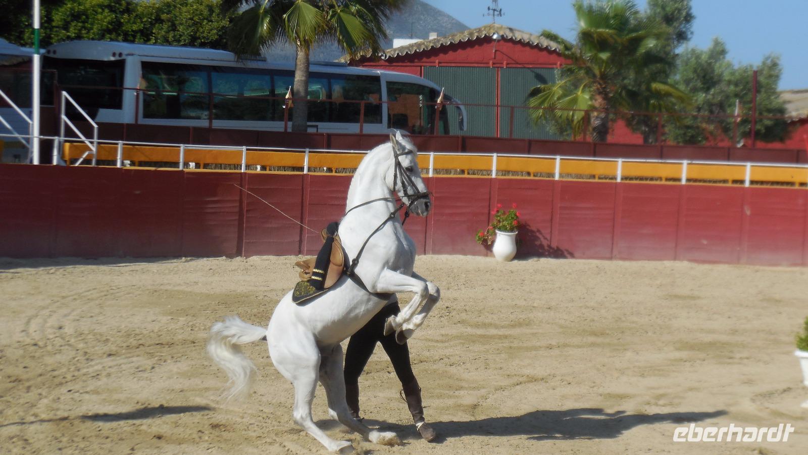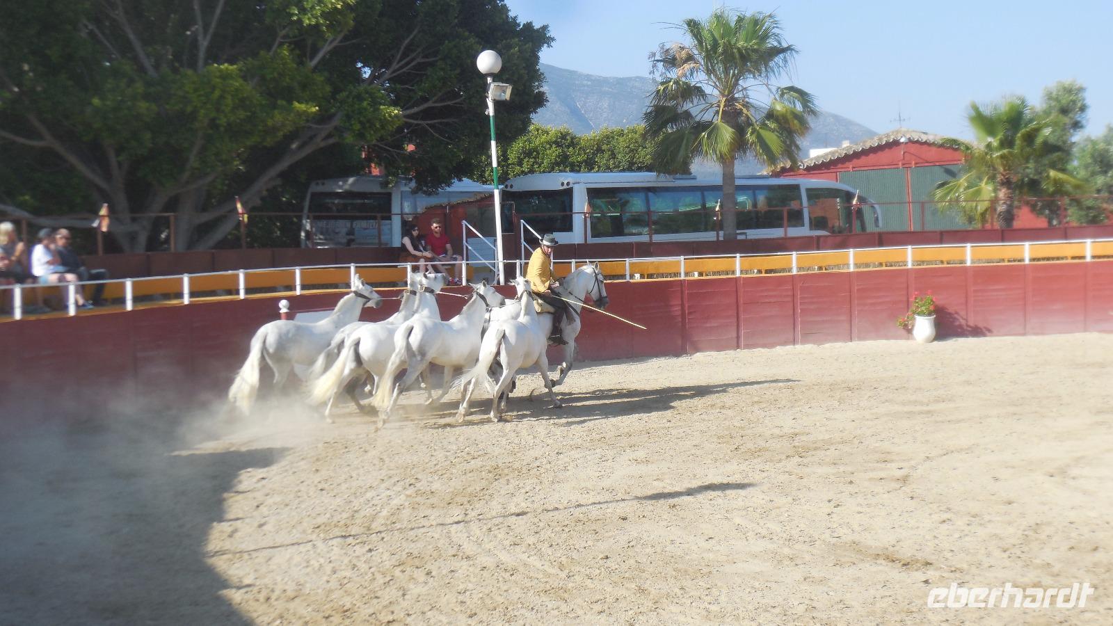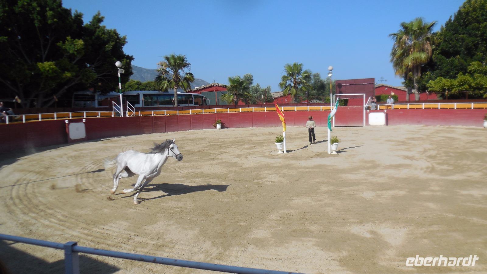 Am Abend konnten wir eine Pferde Show genießen, wo die andalusischen Pferde in der Stierkampfarena getanzt haben. Danach haben wir ein leckeres Grillmenü gegessen und zum Abschluss eine Flamenco Show gesehen.