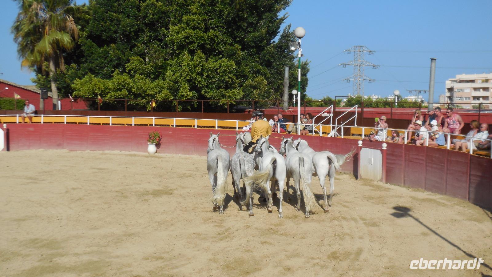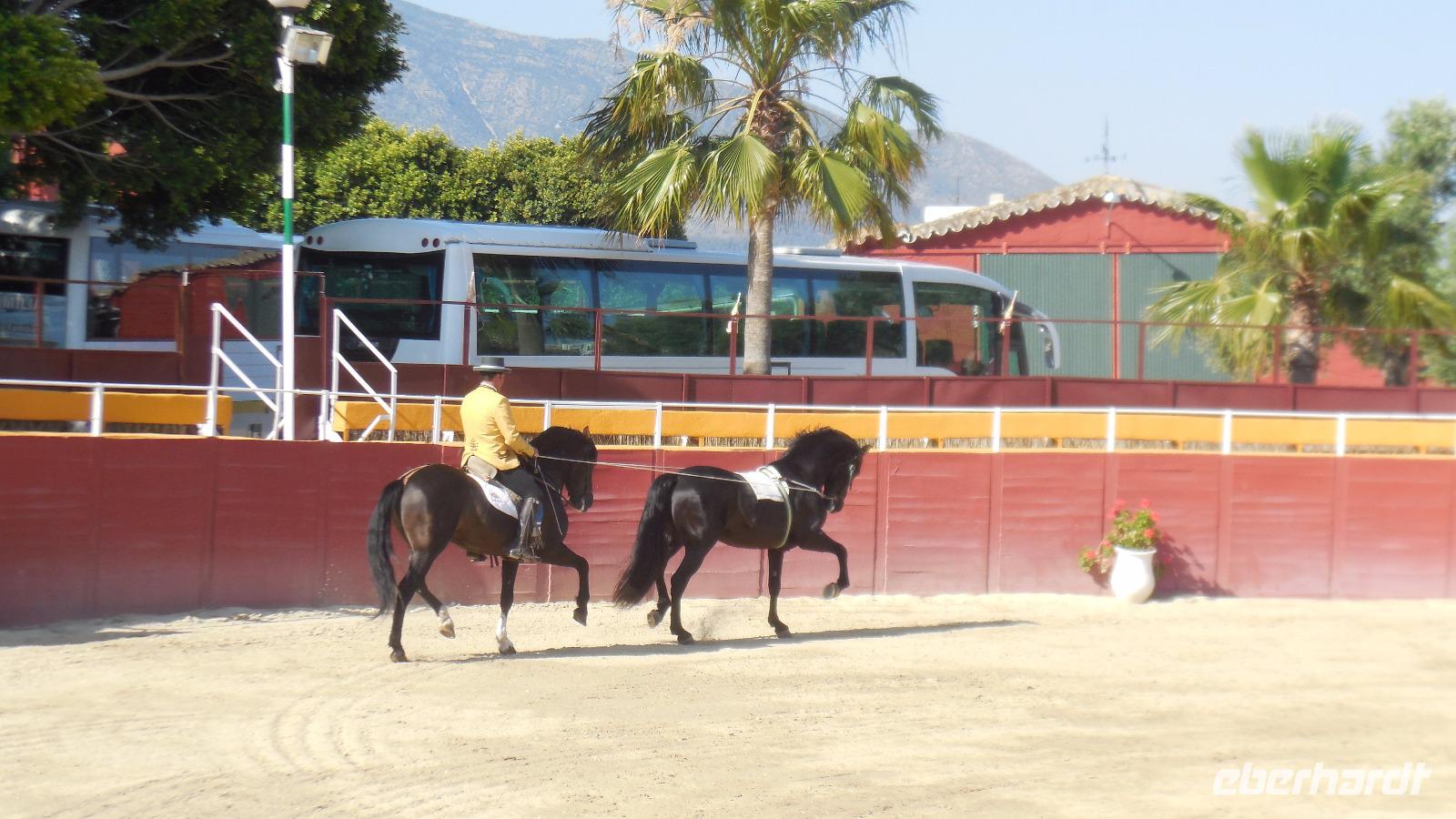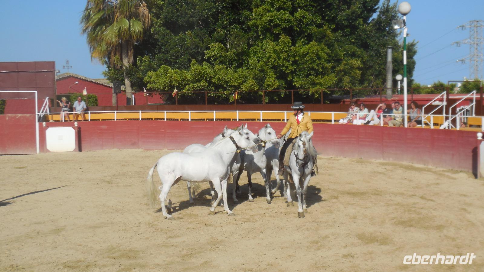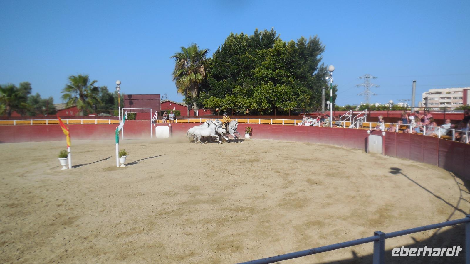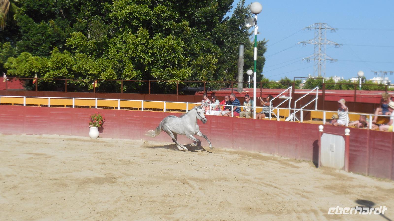 Am Abend konnten wir eine Pferde Show genießen, wo die andalusischen Pferde in der Stierkampfarena getanzt haben. Danach haben wir ein leckeres Grillmenü gegessen und zum Abschluss eine Flamenco Show gesehen.