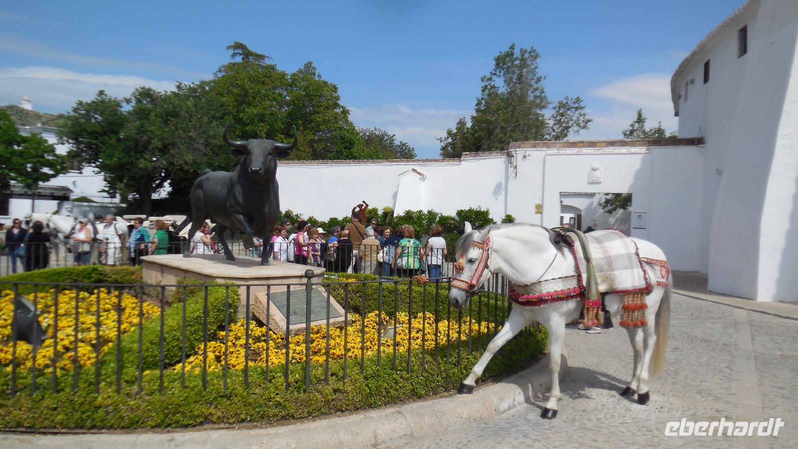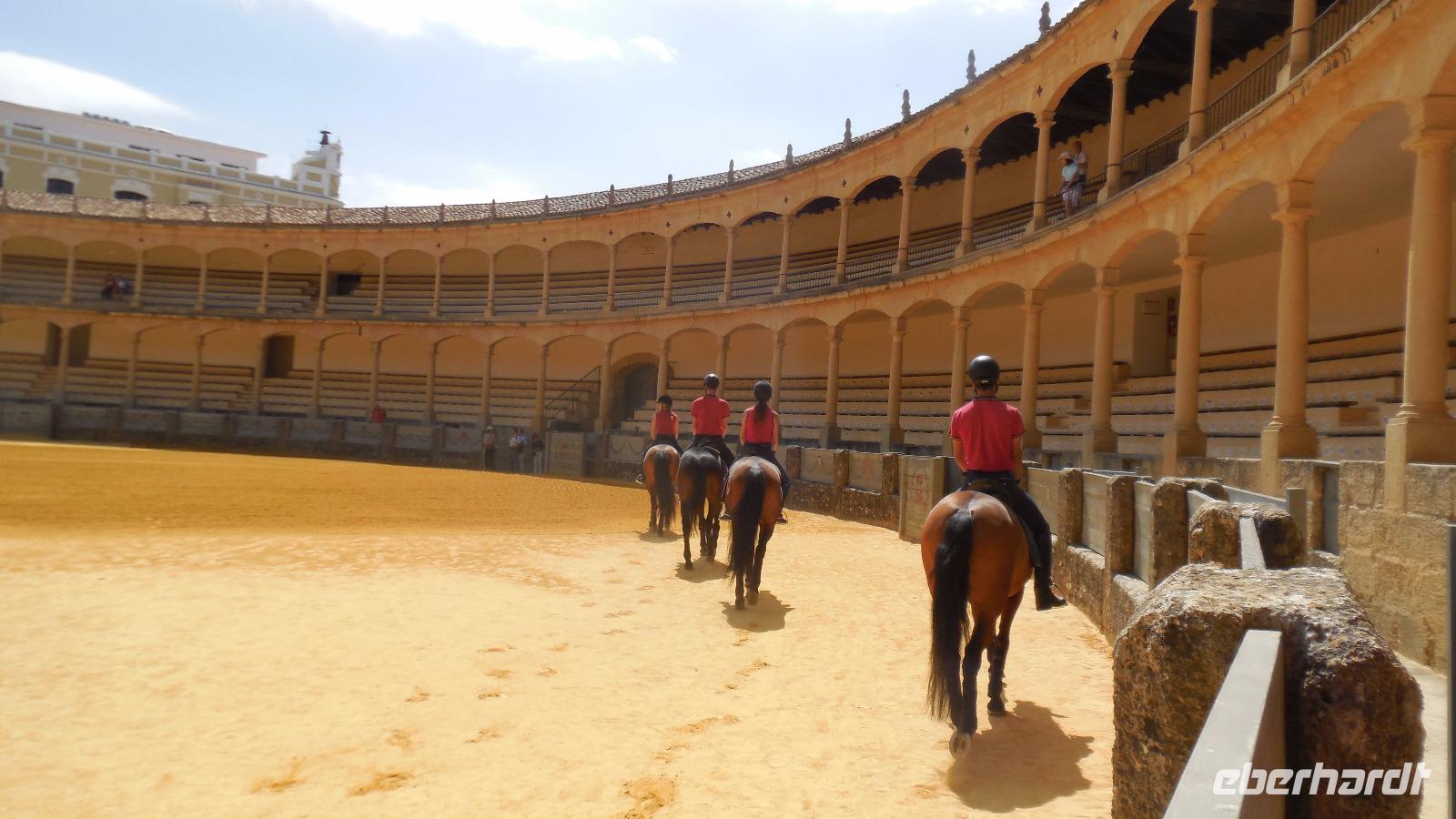 Dann besuchten wir die älteste Stierkampfarena Spaniens . Hier erzählte uns Daniel die Geschichte der Stierkämpfe. Außerdem konnte wir noch einige andalusische Pferde sehen.