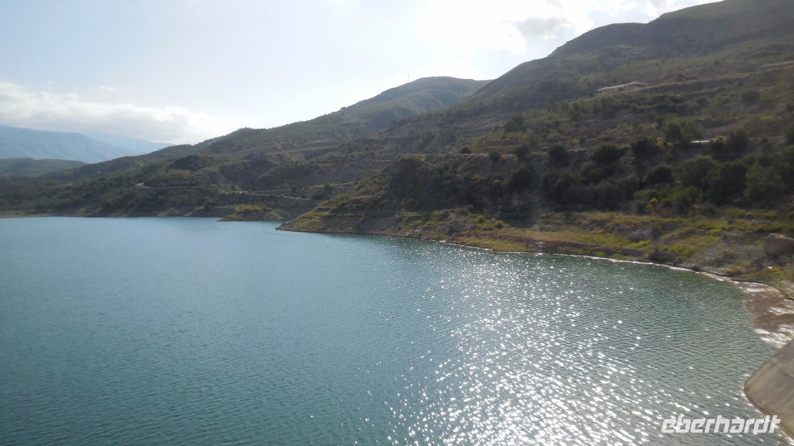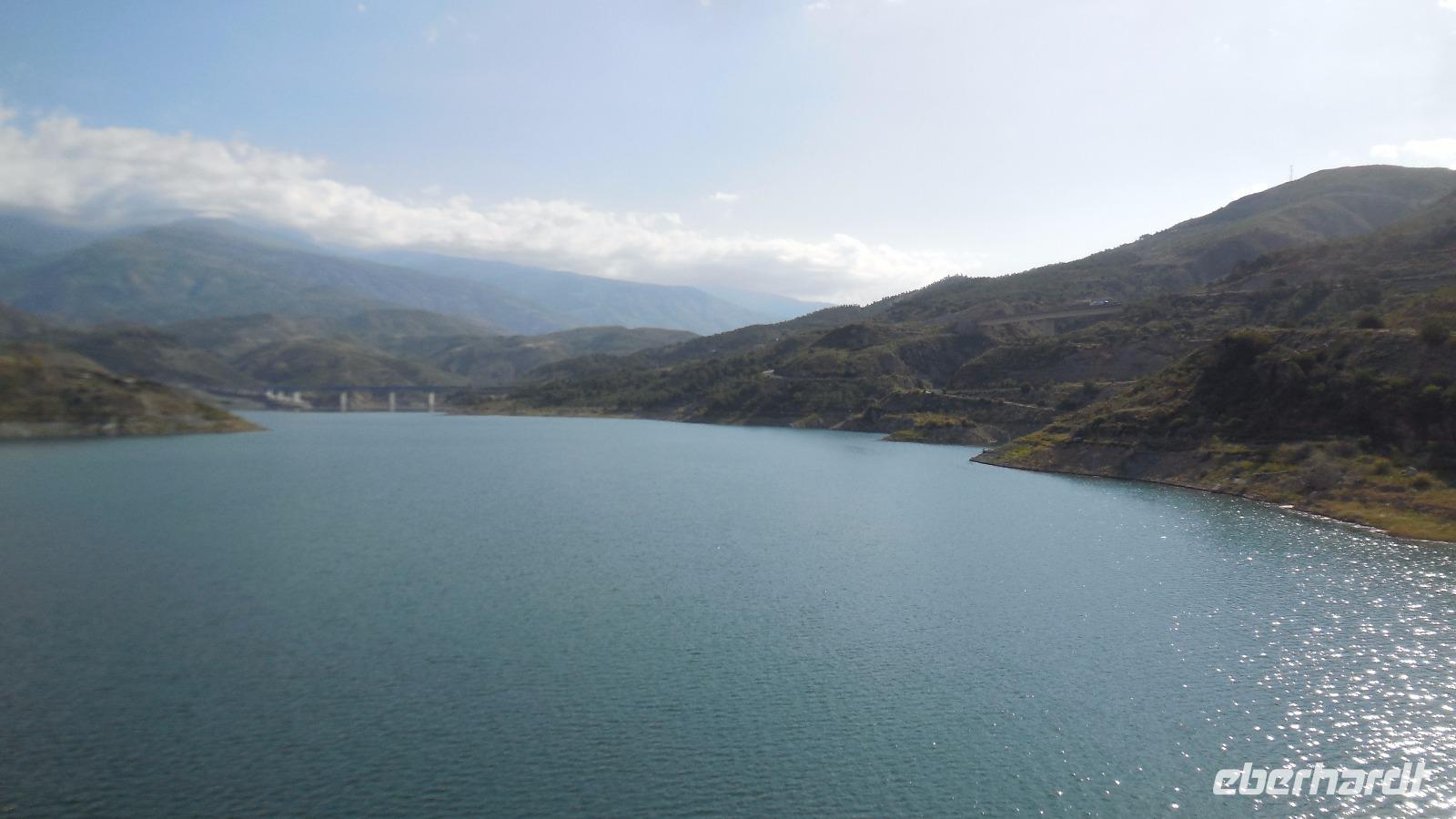 Wir fuhren durch den Canyon bis zum Trinkwasser- Staudamm, wo wir den See vom Guadalfeo Fluss fotografieren konnten.