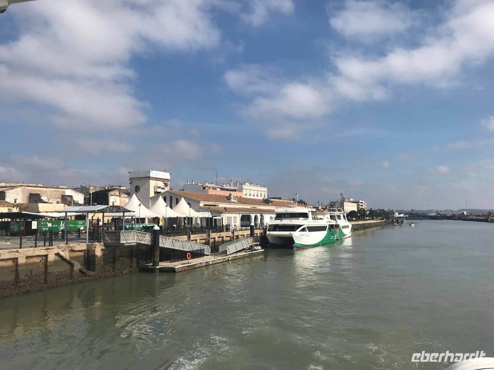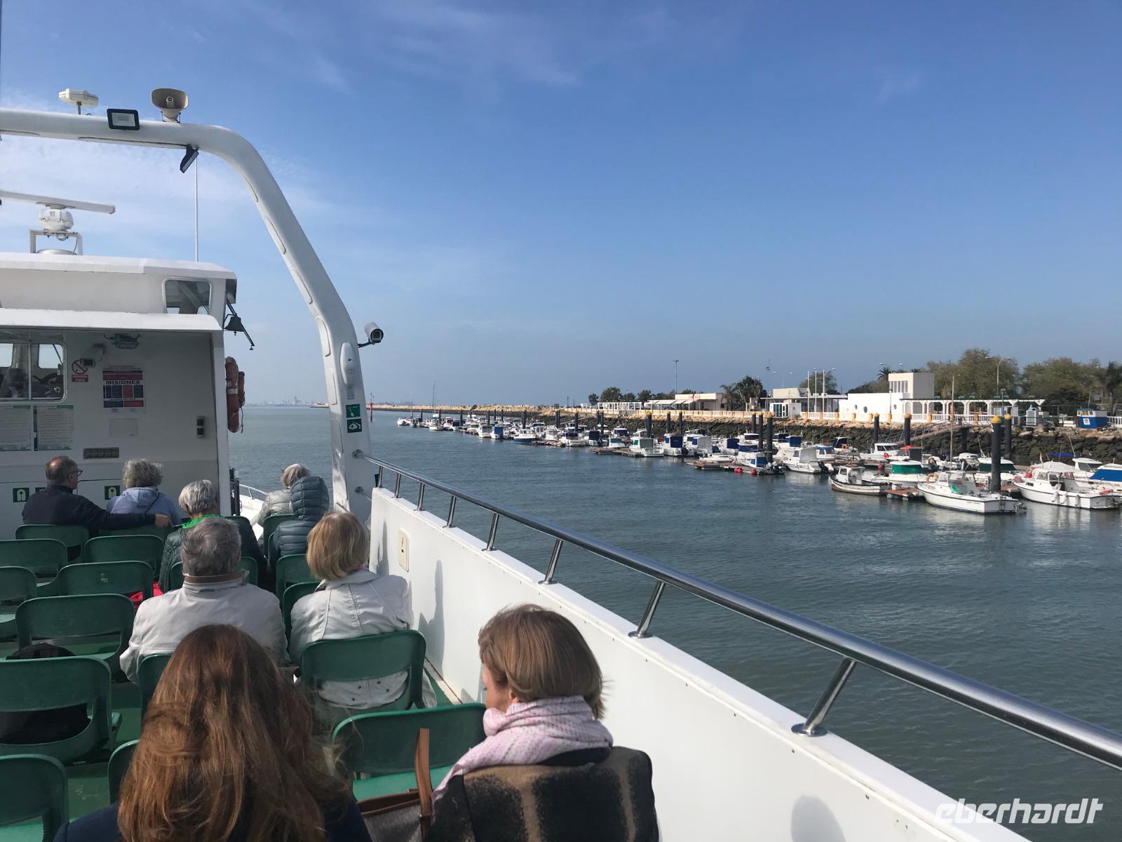 Den heutigen Tag lassen wir mit einem ausgiebigen Frühstück starten, das Buffet im Hotel bietet uns schließlich eine reiche Auswahl. Sodann brechen wir zu unserem heutigen Ausflug nach Cádiz auf. Da die Mezquita in Córdoba leider vorerst geschlossen bleibt, möchten wir Cádiz als schöne Alternative besuchen. Wir werden bereits von unserem Busfahrer Juanito erwartet, der uns Richtung Süden zum Hafen Puerto de Santa María fährt. Mit dem Katamaran erreichen wir nach einer halbstündigen Fahrt die alte Hafenstadt Cádiz, die fast allseitig vom Meer umgeben ist. Dort angekommen treffen wir auf unsere örtliche Reiseleiterin Marianne, die uns in die Altstadt führt und die Geschichte der Hafenstadt näherbringt. Über den Rathausplatz schlendern wir am Meer vorbei und legen einen Halt bei der Kathedrale ein. Die Bäckereien in Cádiz, die an den Ecken der Altstadtstraßen zu finden sind, bieten in den Schaufenstern ihre lokalen Spezialitäten Turrón de Cádiz an. Dieses leckere und durchaus nahrhafte Marzipangebäck probieren wir sogleich.