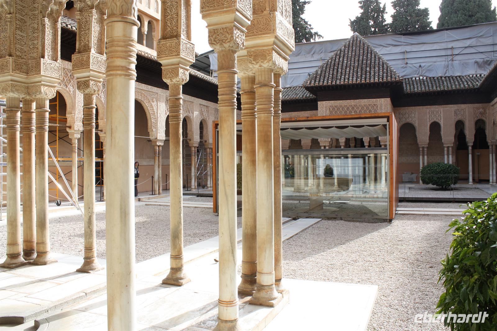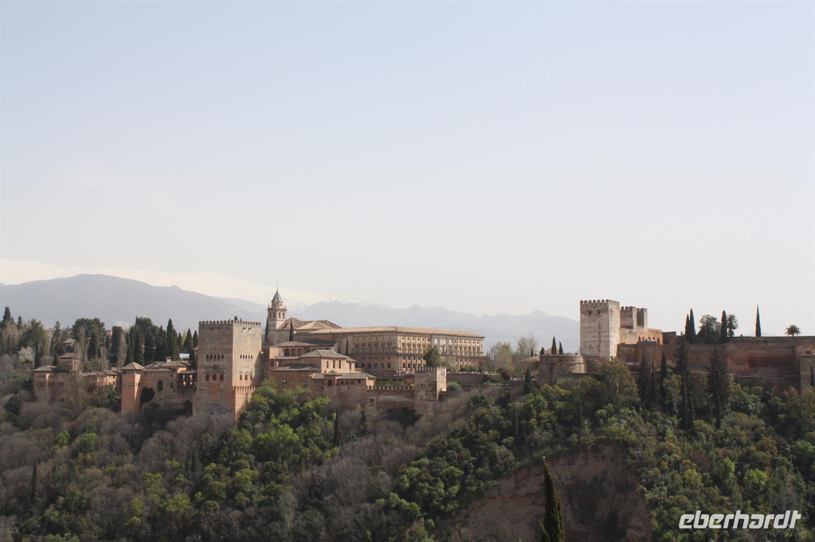 Die Stadt am Fuße der Sierra Nevada ist unser heutiges Ausflugsziel. Bei unserer Fahrt erhaschen wir den ein oder anderen Blick auf die schneebedeckten Gipfel des südlichsten Skigebietes Europas. An der Alhambra begrüßt uns freundlich unsere Gästeführerin, die uns die Feinheiten der arabischen Palastanlage zeigen wird. Die bedeutenste Stadtburg auf dem Hügel von Granada ist eines der schönsten Beispiele des maurischen Baustils. Leider ist jedoch die Hauptattraktion, der Löwenbrunnen, zur Restauration, sodass wir das beliebte Fotomotiv lediglich auf Postkarten zu sehen bekommen. Nichts desto trotz besticht der Baukomplex der Alhambra mit seiner für das Mittelalter typischen Kombination aus einer befestigten Oberstadt mit einer auch gegen diese selbst noch extra gesicherten Zitadelle für den Machthaber. Die reichen arabischen Verzierungen sind ebenso bewundernswert wie der Myrtenhof mit Wasserbecken und der Palast Karl des V. Natürlich dürfen auch die "Gärten des Architekten" nicht fehlen. Durch Laubengänge, Hecken gesäumte Wege und Terrassen wandeln wir wie zu vergangenen Zeiten durch die prächtige Sommerresidenz der Herrscharen vergangener Zeiten. Das Blütenmeer ist ein Augenschmaus, besonders für Gartenfreunde. Nach einer kurzen Verschnaufpause spazieren wir in die Innenstadt Granadas. Jeder hat die Möglichkeit die Stadt auf eigene Faust zu entdecken bevor wir am frühen Nachmittag gemeinsam noch das berüchtigte Zigeunerviertel Albaicin zu besuchen. Der Ausblick vom Mirador San Niccolas in Richtung Alhambra und Generalife vor der Kulisse der schneebedeckten Gipfel der Sierra Nevada bietet ein herrliches Panorama. Die Castagnettenklänge im Hintergrund und das bunte, studentische Treiben sorgt für ein gelungenes Bild.