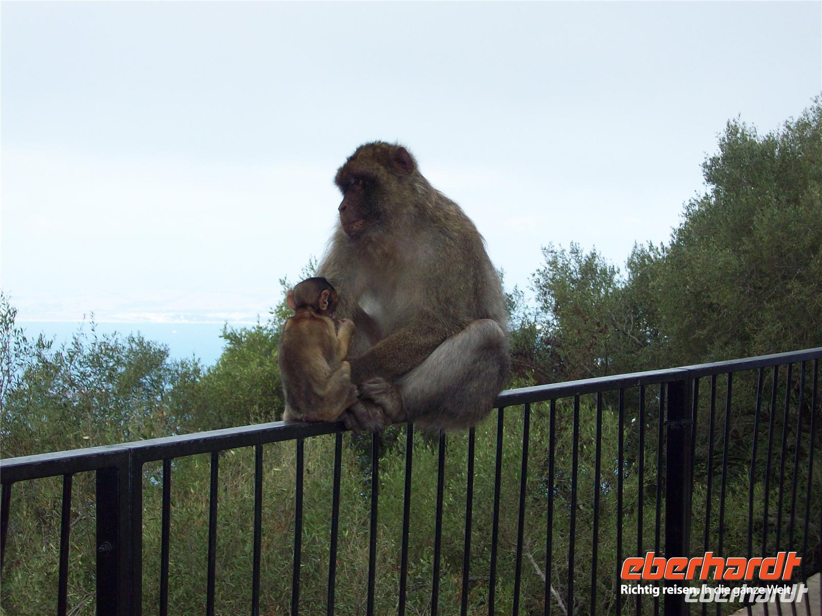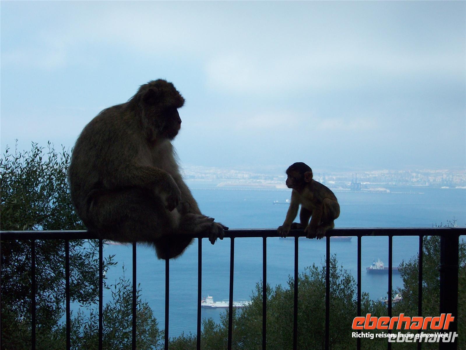 sagen: „wenn Engel reisen, ist das Wetter wunderbar.“. Und so war selbst in England an diesem Tag wunderschönes Wetter. Natürlich kann man nicht einfach so zu Gibraltar hineinfahren. Erst nach zwei Passkontrollen, sowohl in Spanien als auch in Gibraltar, durften wir zu unserem Parkplatz fahren und in den örtlichen Reisebus umsteigen. Mit diesem fuhren wir durch die schmalen, engen Gassen zum Leuchtturm am Europa-Point. Und wir hatten echt Glück, man konnte sogar etwas die Konturen des afrikanischen Festlandes erkennen. Weiter ging unsere Erkundungstour auf den Felsen „The Rock“, wie er von den Bewohner Gibraltars genannte wird. Hier besuchten wir die wunderschöne und größte Höhle Gibraltars - die St. Michael’s Cave. Sie beeindruckt mit Ihren wunderbaren Tropfsteinen und einem rießigen Konzertsaal. Wussten Sie eigentlich, dass Gibraltar auf seinen nur 6,5 km² über 143 Höhlen verfügt. Einfach unglaublich! Auf dem Weg zum Bus waren sie dann endlich da, schon lange ersehnt und für einige der Hauptgrund der Reise, die Gibraltar-Affen. Auf dem Felsen „The Rock“ oder auch Affenfelsen genannt, leben heute noch etwa 400 Affenfamilie und wir hatten das Glück 3 Familien von diesen sehen zu können. Einfach nur putzig! Nach dem wir den Berg mir unserem lustigen kleinen Bus verlassen hatten, hatte jeder die Möglichkeit die Stadt auf eigene Faust zu erkunden oder sich ein nettes Café auf der Main Street zu suchen und dem turbulenten Treiben der Stadt zuzusehen. Gesättigt und mit einigen Souvenirs