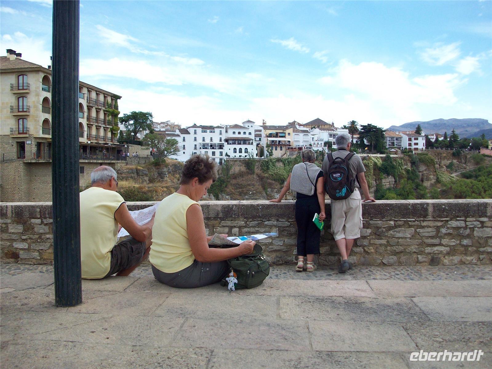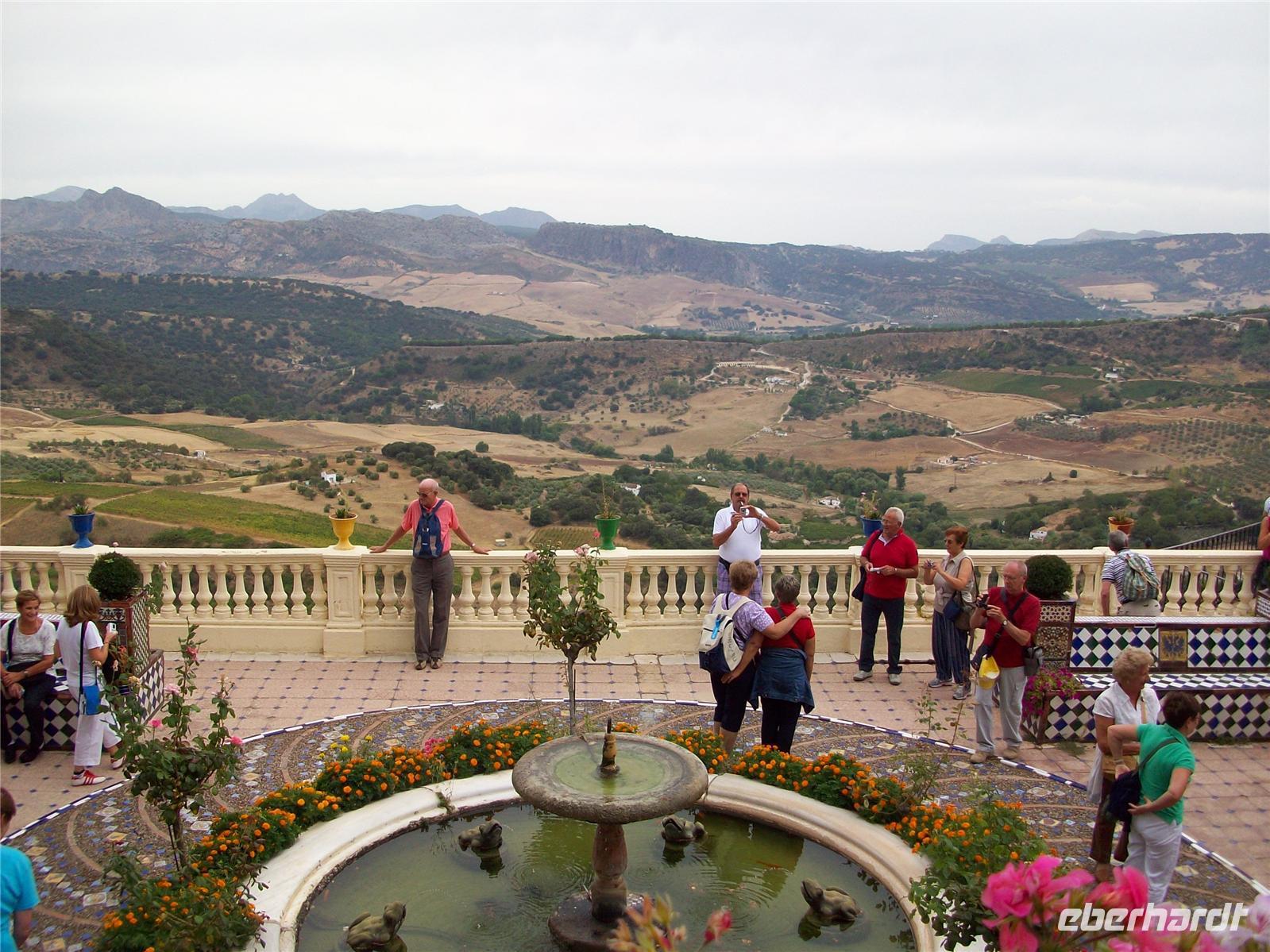 Der heutige Ausflug sollte uns das wunderschöne weiße Dorf Ronda näher bringen. Nach dem Frühstück fuhren wir in Richtung Ronda durch die Region Axarquía. In Ronda angekommen treffen wir unseren örtlichen Reiseleiter Jose. Und schon beginnt unser Spaziergang durch das romantische Dörfchen Ronda. Zu Beginn werfen wir einen Blick auf die Puente Nuevo - die eindrucksvollste der insgesamt drei Brücken über die Schlucht des Guadealevin. Danach erreichen wir das Haus „Casa don Bosco“. Vom wunderschön angelegten Garten dieses Hauses hatten wir die Gelegenheit einen unglaublichen Blick auf die