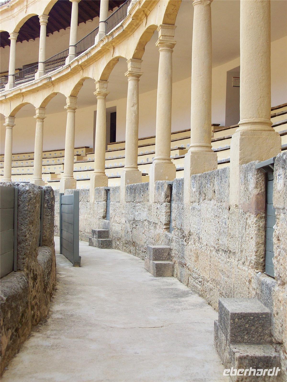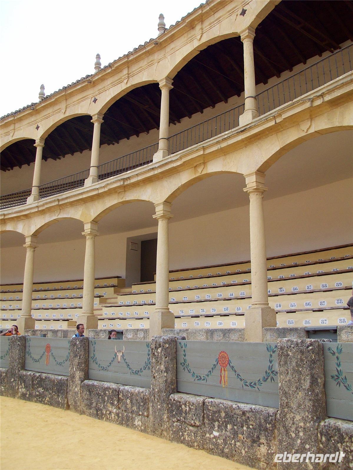 Brücke Puente Nuevo zu erhaschen. Weiter ging unsere Erkundungstour durch die Altstadt mit ihren wundschön angelegten Gassen und typischen weißen Häusern. Wieder zurück auf der Puente Nuevo eröffnete sich uns ein unglaublicher Blick in die Schlucht, welche die Altstadt und die Neustadt Rondas von einander trennt. Und nun kam ein weiterer Höhepunkt in unserem Programm. Wir besuchten die Stierkampfarena von Ronda. Diese Arena ist die älteste von ganz Spanien und architektonisch ein Highlight mit ihrer zweigeschossigen Tribüne. In den Räumen der Arena, wo sich heute ein Museum befindet, lernten wir warum die ausgestopften Stierköpfe teilweise nur ein Ohr haben bzw. gar kein Ohr mehr haben. Wissen Sie es? Ich verrate es Ihnen nämlich nicht. Schauen Sie es sich selber an! Im Anschluss hatten wir wieder Zeit für eigene Erkundungen. Wer wollte konnte mit Sandra und mir in ein typisches Tapas-Lokal einkehren und diese wunderbare Spezialität Spaniens probieren. Danach erkundete jeder die Stadt auf seine Weise, die einen genossen den wunderbaren Blick auf die Schlucht von der Aussichtspromenade aus und andere ließen das rege Treiben der Bewohner Spaniens auf sich wirken. Mit wundervollen Eindrücken traten wir die Fahrt zurück zum Hotel an.