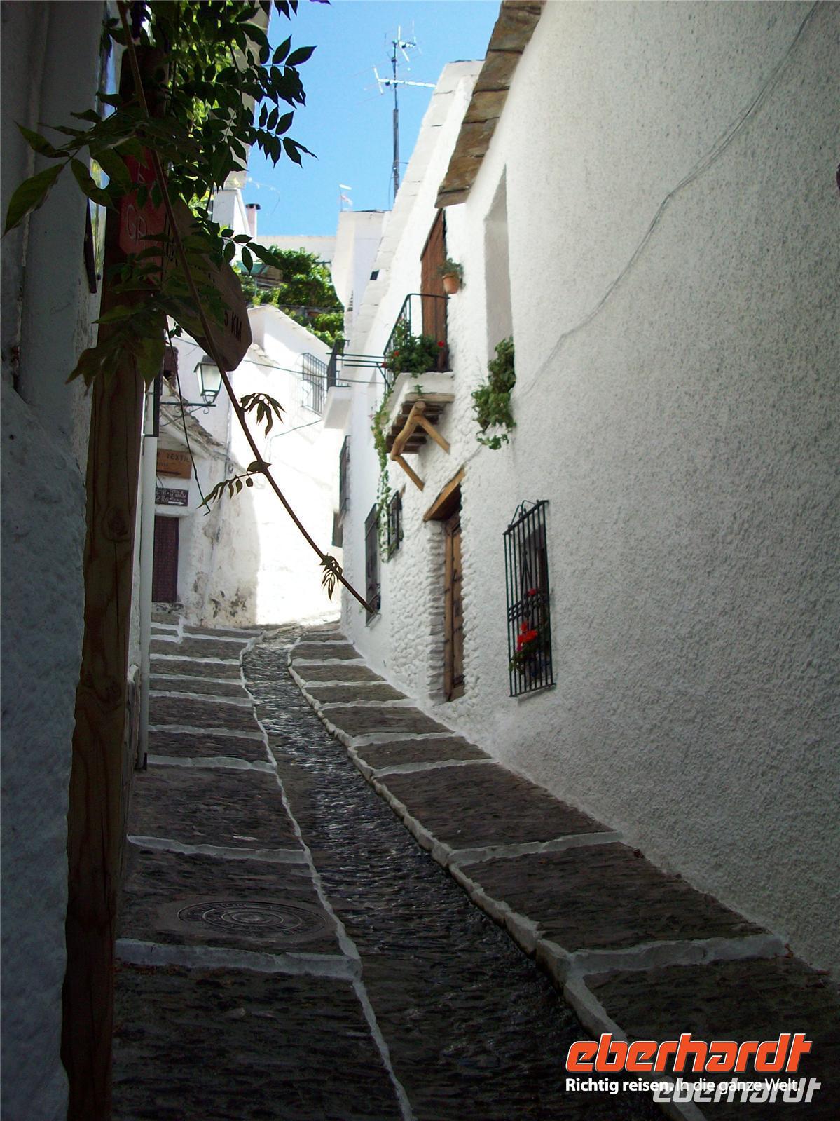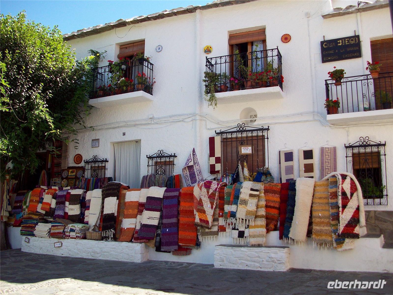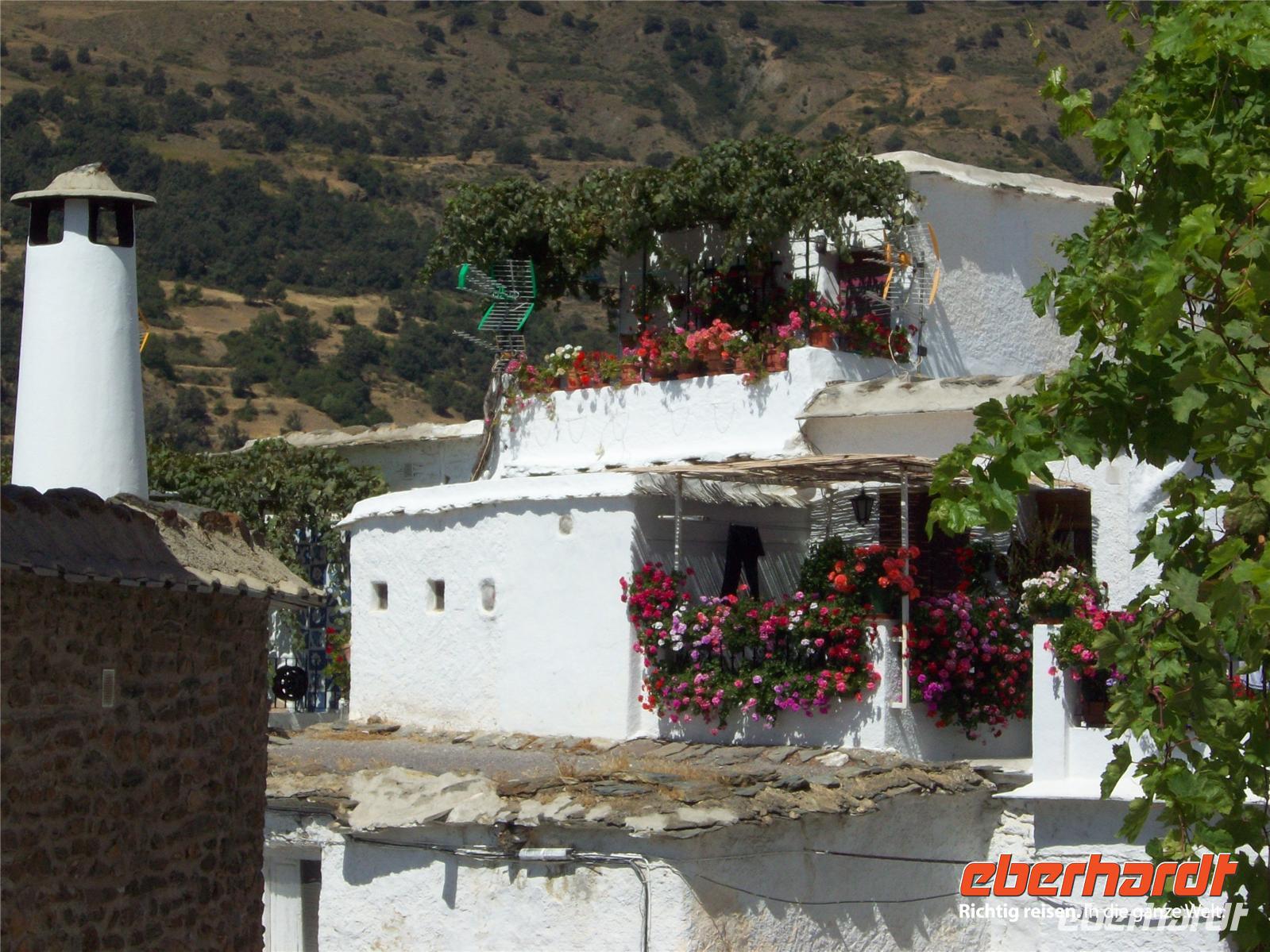 Buones días Espana! Nach einem reichhaltigen Frühstück ließen wir uns erst einmal bei lecker Sangria den Ablauf der Reise von Sandra erklären. So kann ein Tag beginnen! Im Anschluss hieß es für einen Großteil der Gruppe „vamos a la Alpujarra“. Unseren ersten Fotostopp machten wir am „Tor zur Alpujarra“. Nach einer kurzen Pause an der „Ersten Brücke“ in die Hochebene führte uns unsere Fahrt in den kleinen gemütlichen Ort Pampaneira. Hier ließen wir das urtümliche Flair des Teppich-Dörfchens auf uns wirken und bummelten durch die wunderschönen Gässchen. Weiter ging unsere Fahrt ins zweite Weiße Dorf - Capeleira. Hier besuchten wir eine Schinkentrocknerei und lernten die verschiedenen Schritte der Herstellung kennen. Aber natürlich nicht ohne den super leckeren Schinken verkostet zu haben! Nach diesem Programmpunkt hatten wir richtig Hunger bekommen und so gab es im Nahe gelegen Ort, Pórtugos, ein leckeres Menü aus Maronensuppe, Wurstplatte und zum Nachtisch Baise. Mhhh, lecker!!! Zur Verdauung machten wir einen kleinen Spaziergang zur „Fuente Agria“ - einem Brunnen mit fünf Rohren, aus denen stark eisenhaltiges Wasser strömte. Dieses Wasser lies uns gleich um einige Jahre jünger aussehen. Hoffentlich erkennt uns zu Hause noch jemand! Nach der Verjüngungskur machten wir uns auf den Rückweg. Aber bevor wir zum Hotel fuhren, machten wir noch einen kleinen Stopp an einem sehr imposanten Staudamm mit einem wunderbaren Blick auf die Sierra Nevada. Nach diesem wunderbaren Ausflug hatten wir ein wenig Zeit uns in der Umgebung des Hotels umzuschauen bzw. die Füße hochzulegen, bevor wir uns zu einem gemeinsam, sehr reichhaltigen Abendessen trafen.