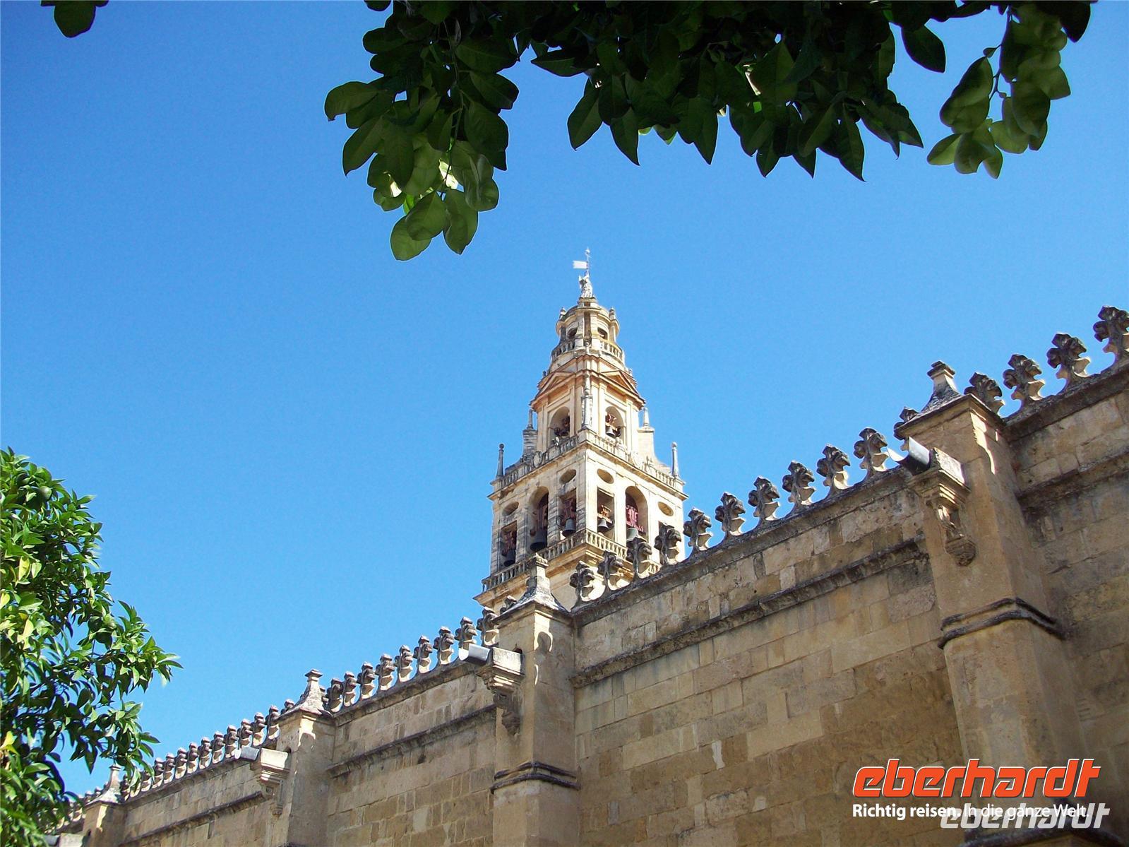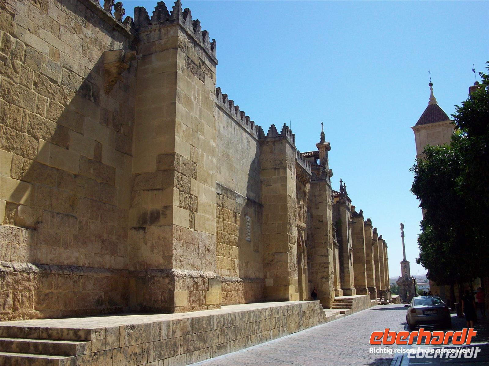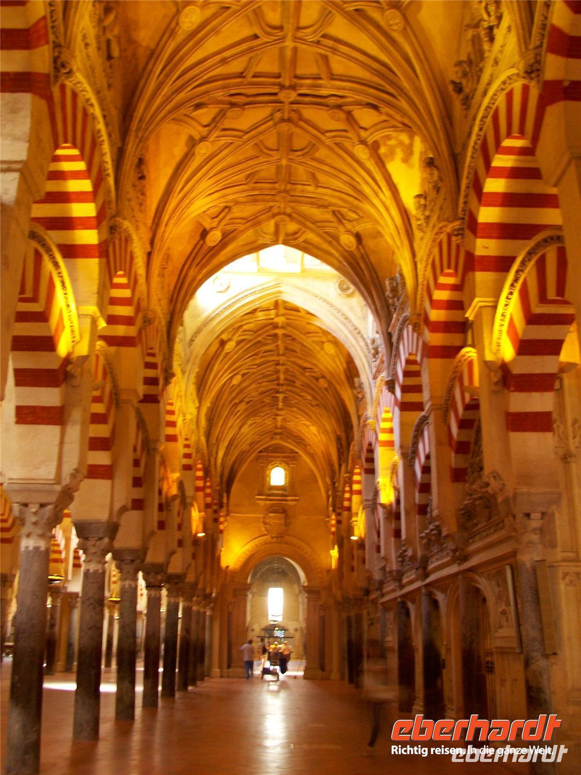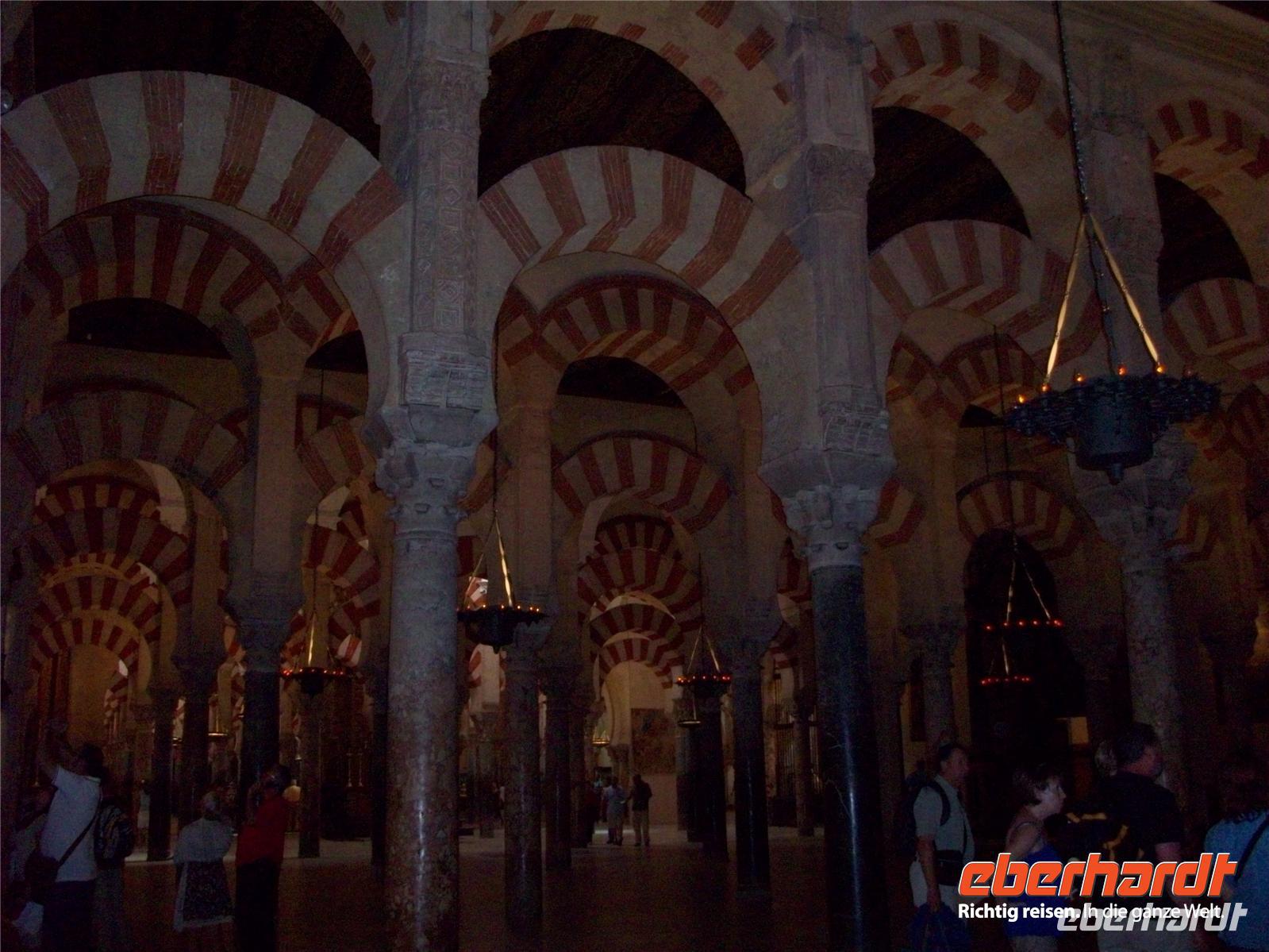 erreichen wir das Altstadtviertel und gelangen zur Mezquita. Hier zeigt uns die örtliche Reiseleiterin Africa ihre Stadt inklusive Mezquita und dem Stadtviertel la Juderia. Die Mezquita-Kathedrale kann ohne Probleme mit ihrer Schönheit und ihrem Ausmaß mit den großen Moscheen dieser Erde konkurrieren. Schon alleine der Orangenhof mit dem Glockenturm ist überaus beeindruckend. Und lädt zum verweilen ein. Aber erst einmal wollten wir die Innenräume dieses einmaligen Baus kennenlernen. Das wohl einmaligste an diesem Bau ist die große Kathedrale welche inmitten des islamischen Gebetsraums errichtet wurde. Aber schon alleine der weltberühmte Gebetsraum, welcher sich um die Kathedrale schließt, beeindruckt im Halbdunkeln mit seinem endlos erscheinenden Wald aus über 793 Säulen, welche mit jedem Schritt in einer anderen, wundervollen Perspektive erscheinen. Schauen Sie es sich selbst denn, denn mit Worten ist es kaum zu beschreiben. Nördlich der Mezquita beginnt die Juderia, das alte jüdische Viertel, welches wir im