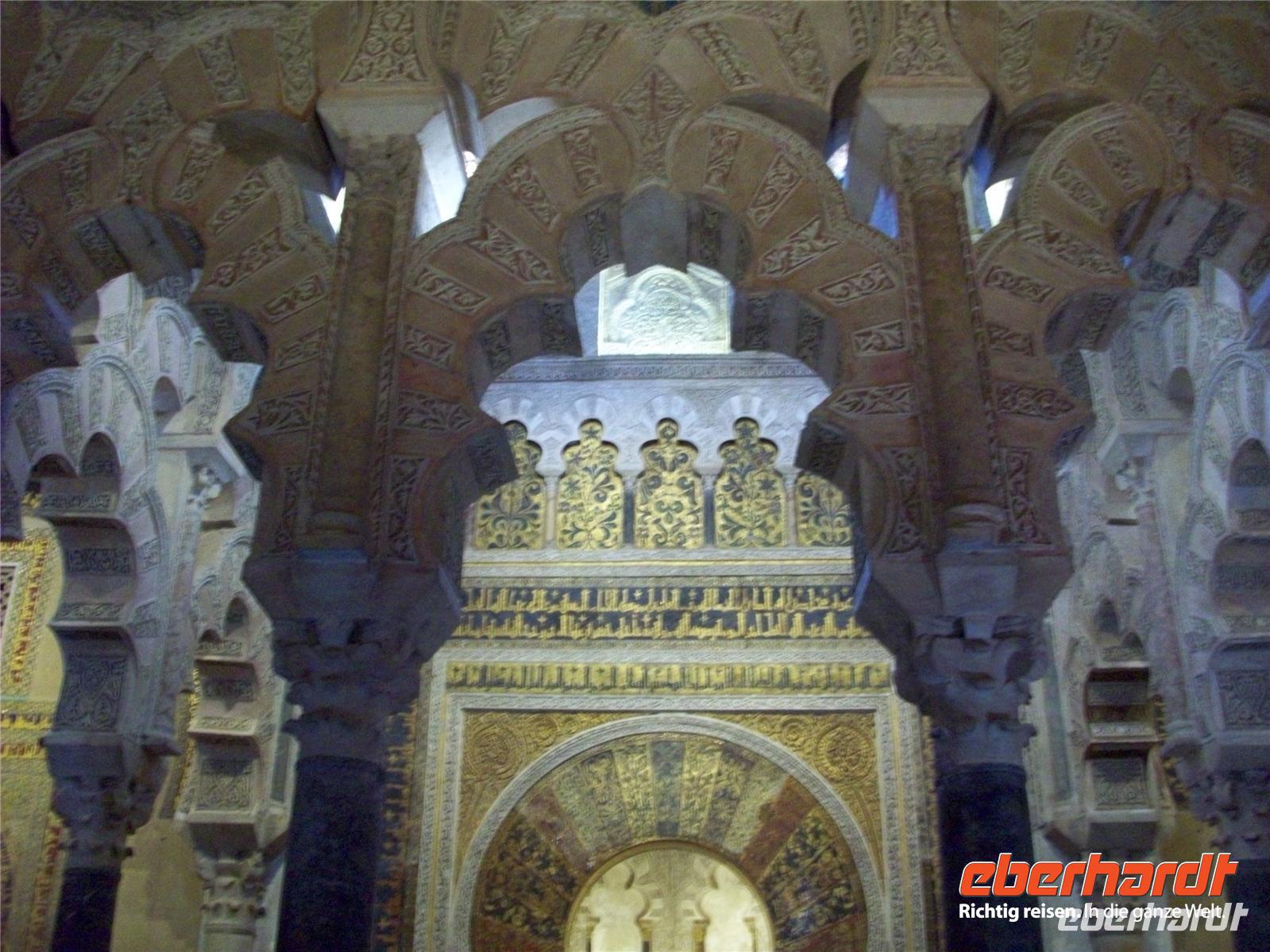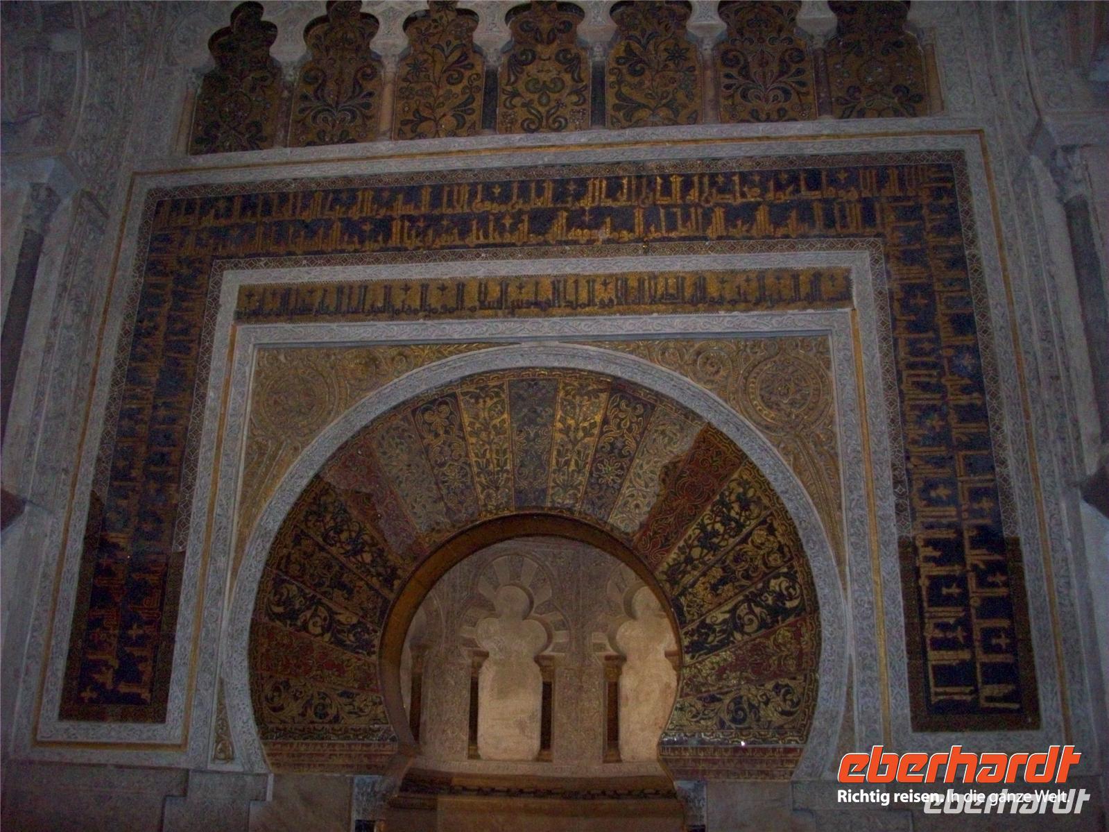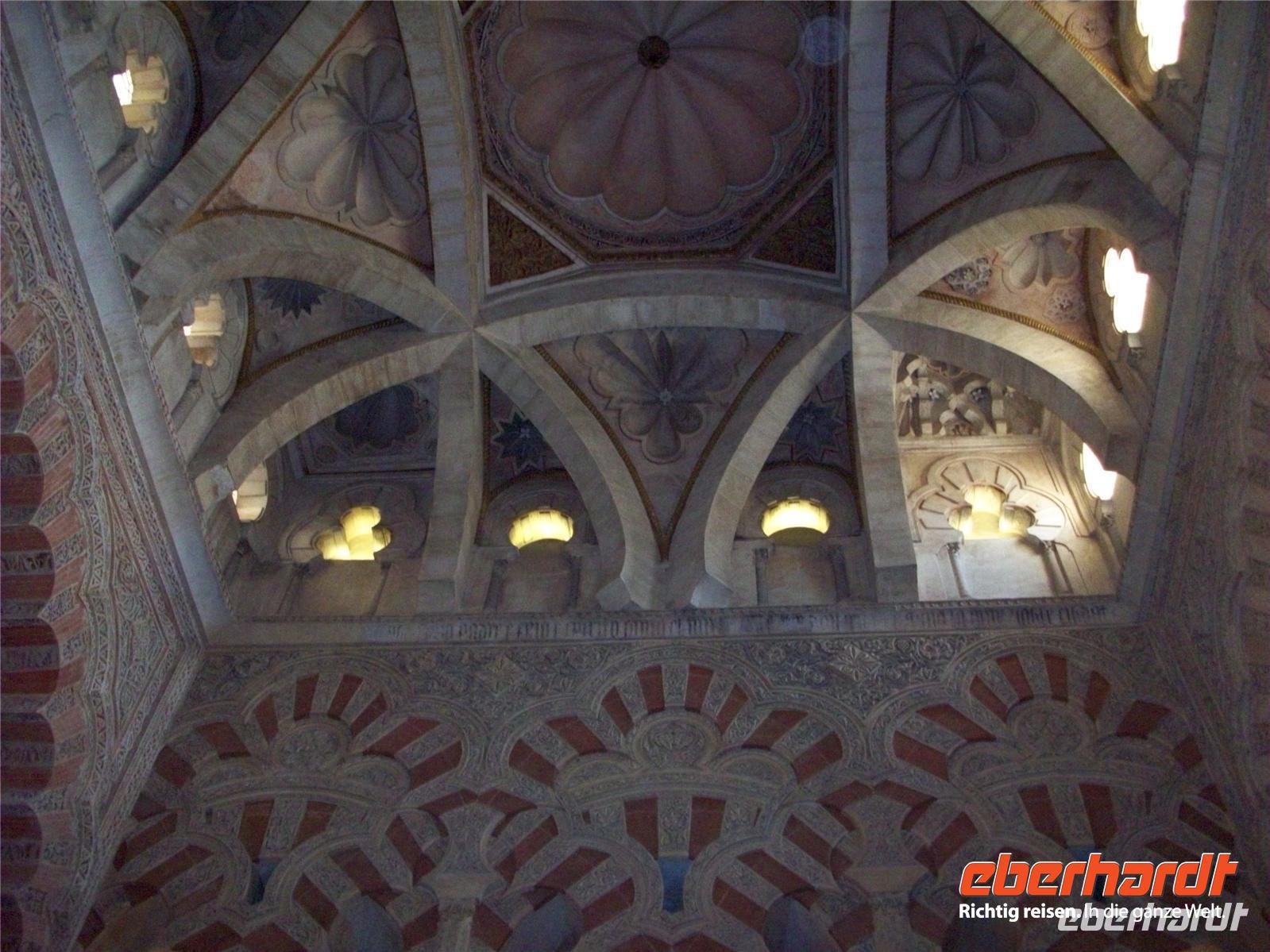 erreichen wir das Altstadtviertel und gelangen zur Mezquita. Hier zeigt uns die örtliche Reiseleiterin Africa ihre Stadt inklusive Mezquita und dem Stadtviertel la Juderia. Die Mezquita-Kathedrale kann ohne Probleme mit ihrer Schönheit und ihrem Ausmaß mit den großen Moscheen dieser Erde konkurrieren. Schon alleine der Orangenhof mit dem Glockenturm ist überaus beeindruckend. Und lädt zum verweilen ein. Aber erst einmal wollten wir die Innenräume dieses einmaligen Baus kennenlernen. Das wohl einmaligste an diesem Bau ist die große Kathedrale welche inmitten des islamischen Gebetsraums errichtet wurde. Aber schon alleine der weltberühmte Gebetsraum, welcher sich um die Kathedrale schließt, beeindruckt im Halbdunkeln mit seinem endlos erscheinenden Wald aus über 793 Säulen, welche mit jedem Schritt in einer anderen, wundervollen Perspektive erscheinen. Schauen Sie es sich selbst denn, denn mit Worten ist es kaum zu beschreiben. Nördlich der Mezquita beginnt die Juderia, das alte jüdische Viertel, welches wir im