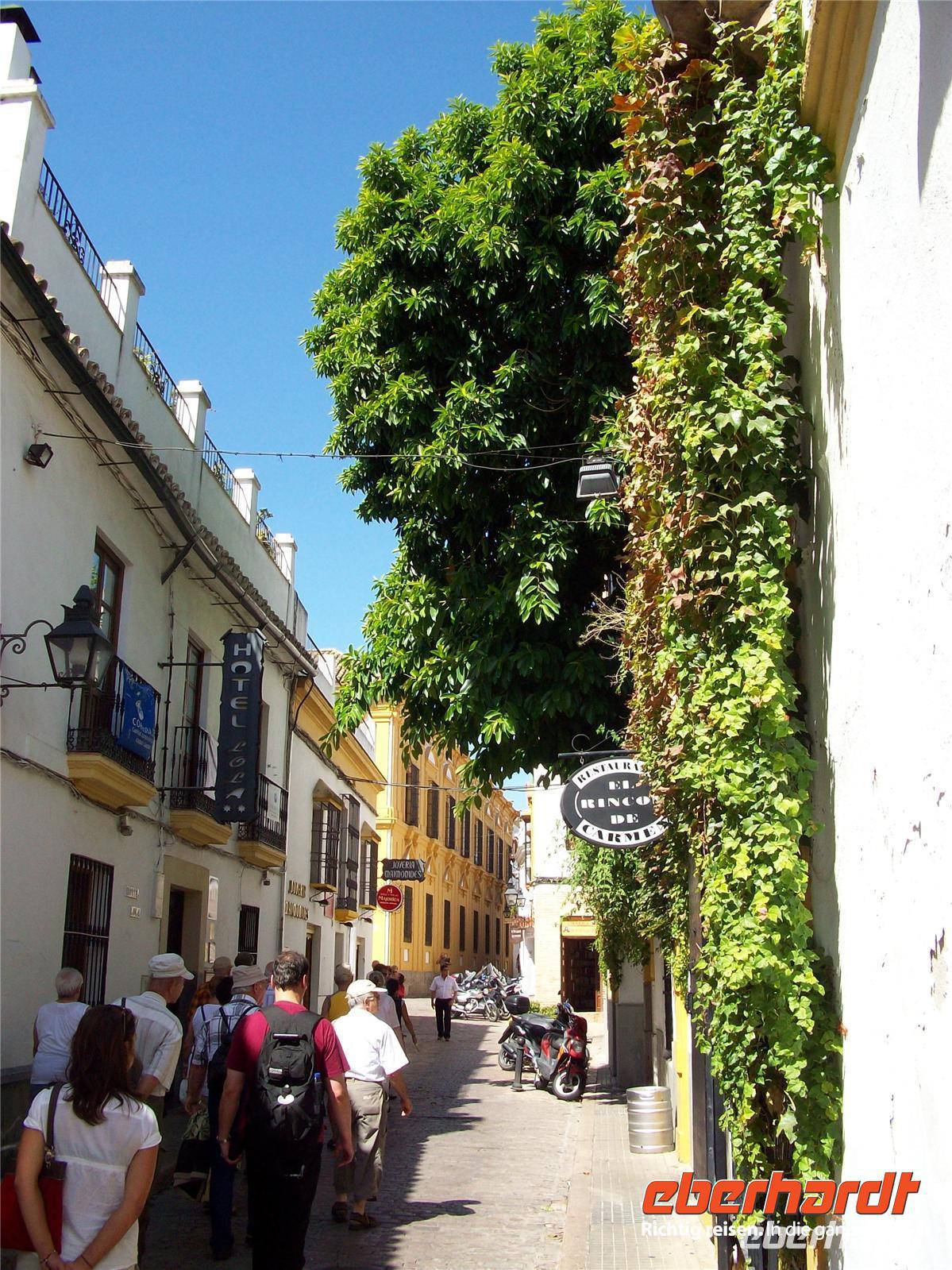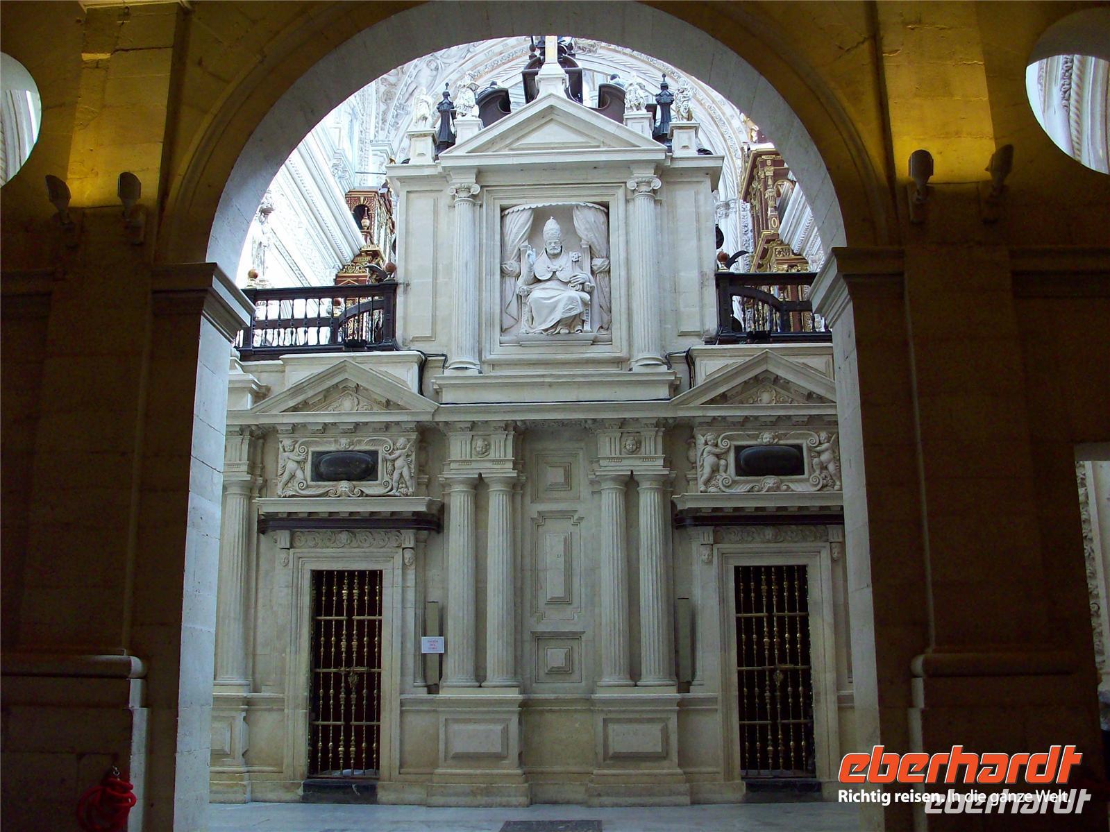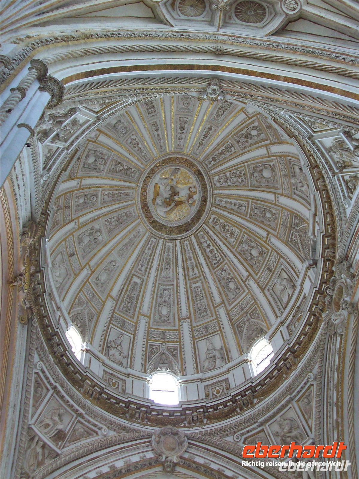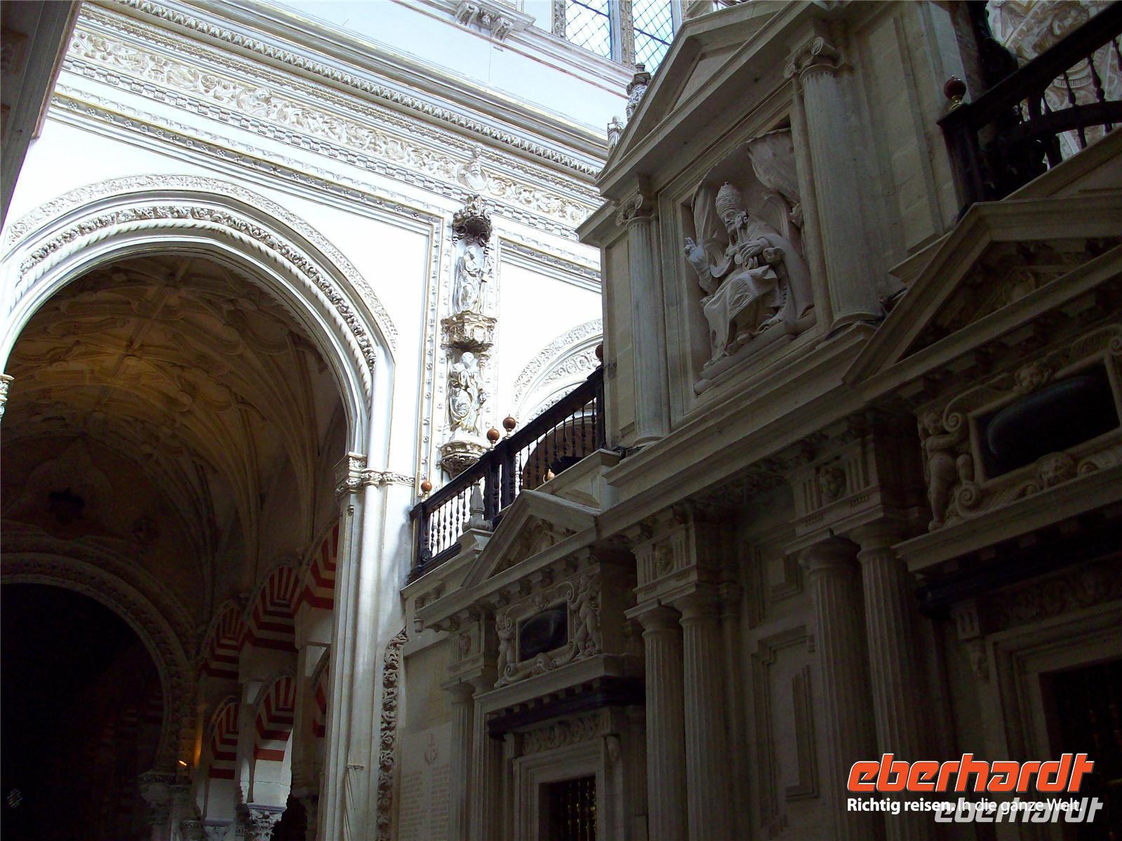 erreichen wir das Altstadtviertel und gelangen zur Mezquita. Hier zeigt uns die örtliche Reiseleiterin Africa ihre Stadt inklusive Mezquita und dem Stadtviertel la Juderia. Die Mezquita-Kathedrale kann ohne Probleme mit ihrer Schönheit und ihrem Ausmaß mit den großen Moscheen dieser Erde konkurrieren. Schon alleine der Orangenhof mit dem Glockenturm ist überaus beeindruckend. Und lädt zum verweilen ein. Aber erst einmal wollten wir die Innenräume dieses einmaligen Baus kennenlernen. Das wohl einmaligste an diesem Bau ist die große Kathedrale welche inmitten des islamischen Gebetsraums errichtet wurde. Aber schon alleine der weltberühmte Gebetsraum, welcher sich um die Kathedrale schließt, beeindruckt im Halbdunkeln mit seinem endlos erscheinenden Wald aus über 793 Säulen, welche mit jedem Schritt in einer anderen, wundervollen Perspektive erscheinen. Schauen Sie es sich selbst denn, denn mit Worten ist es kaum zu beschreiben. Nördlich der Mezquita beginnt die Juderia, das alte jüdische Viertel, welches wir im