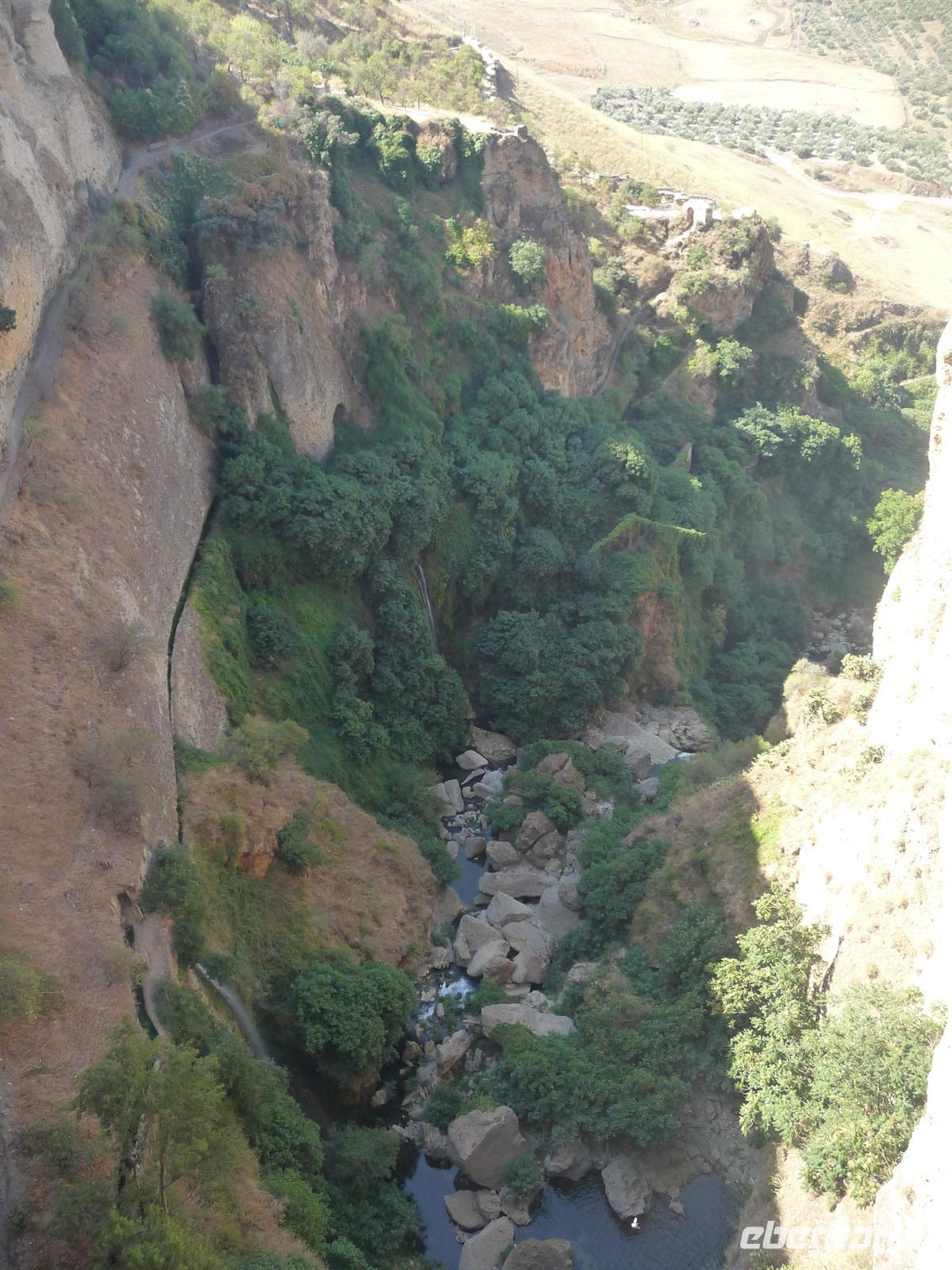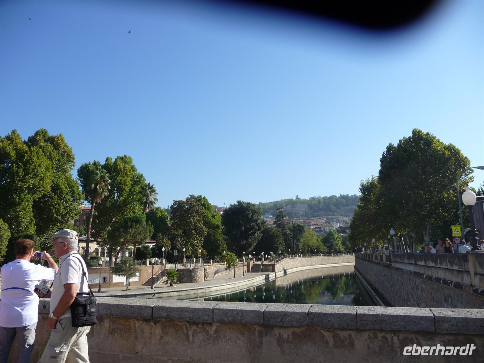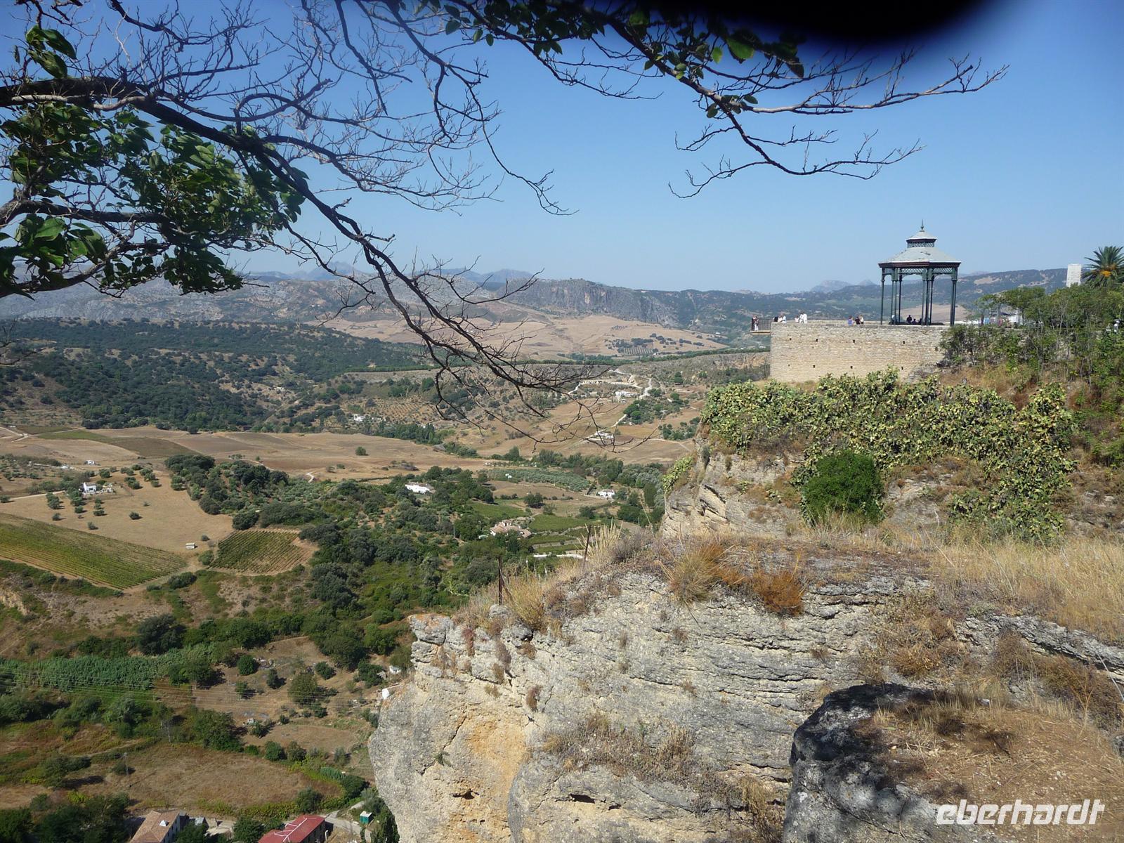 Unser eigentlicher lokaler Führer ist zu der Zeit noch mit einer anderen Touristengruppe unterwegs, die verspätet die Führung begann. Damit wir nicht warten müssen und unseren Zeitplan einhalten können, entschloss sich Kay die Stadtführung zu übernehmen. Wir überquerten die Puento Nuevo (Neue Brücke), von der wir einen atemberaubenden Blick auf die 160 Meter tiefe Schlucht El Tajo haben. Die aus dem 18. Jahrhundert stammende Brücke spannt sich in einer Höhe von knapp 100 Metern über den Tajo-Fluss und ähnelt ein römisches Aquädukt. Begeistert von der spektakulären Lage Rondas laufen wir in die Altstadt „La Ciudad“. Gleich als erstes statten wir dem Haus „El Bosco“ einen Besuch ab, herrliches Anwesen mit lieblichem Patio (Innenhof), gigantischem Panoramablick und wunderschöner Gartenanlage.
