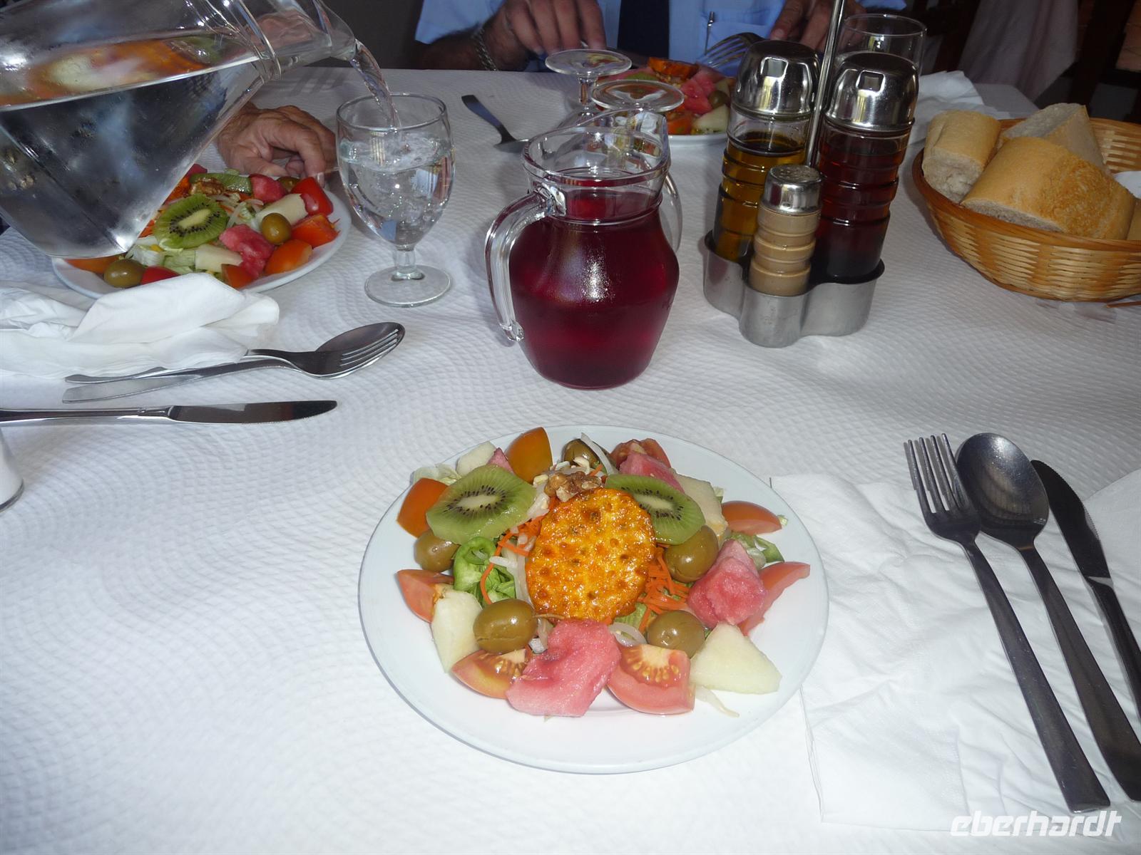 Gegen 14:15 Uhr machten wir in einem gemütlichen, urigen Restaurant eine Pause und verzehrten mit viel Freude ein wohlschmeckendes 3-Gänge-Menü aus Zutaten der Region und dazu ein Kännchen Wein.
