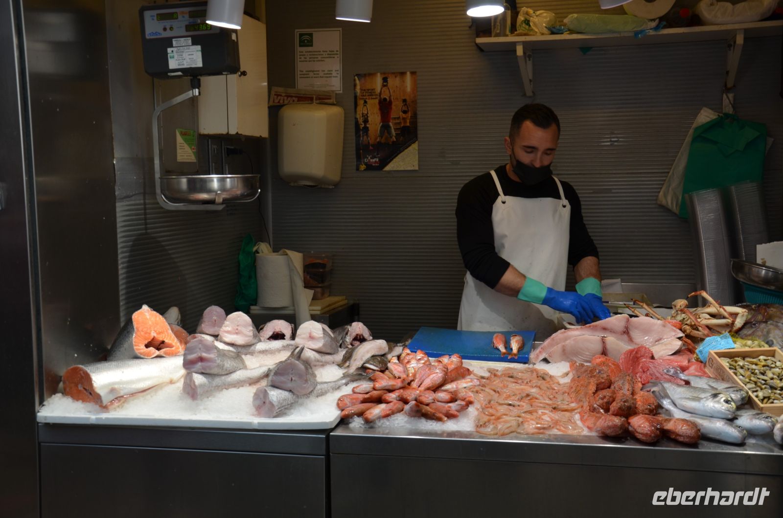 Wir fahren einmal wieder mit unserem Lieblingsbusfahrer Manolo entlang der Costa del Sol ins 20 Kilometer entfernte Málaga. Am Rathaus treffen wir auf Cristina, die den heutigen Stadtrundgang mit uns begehen wird. Unseren ersten Stopp haben wir in der „Universidad de Málaga“, die im Foyer einen kleinen Ausstellungsraum beherbergt. Weiter geht es vorbei am „Museo de Málaga“ mit seinen riesigen vorgelagerten Palmen hin zur „Calle Marués de Larios“, eine Fußgänger- und Einkaufsstraße Málagas, die den Titel der teuersten trägt. Ab hier schlängeln wir uns durch die Straßen zur berühmten Markthalle der Stadt – ein buntes Treiben mit unzähligen regionalen Produkten wie Wurst- und Fleischwaren, Obst und Gemüse und natürlich allem, was das Meer zu bieten hat. Am schönsten sind die kleinen Probierschälchen, bei denen man bereits einen Eindruck erhält, was man später in der Freizeit kaufen könnte. Und da gibt es einiges! Aufgrund dessen hätten wir hier fast einige Naschkatzen im Getümmel verloren… :D