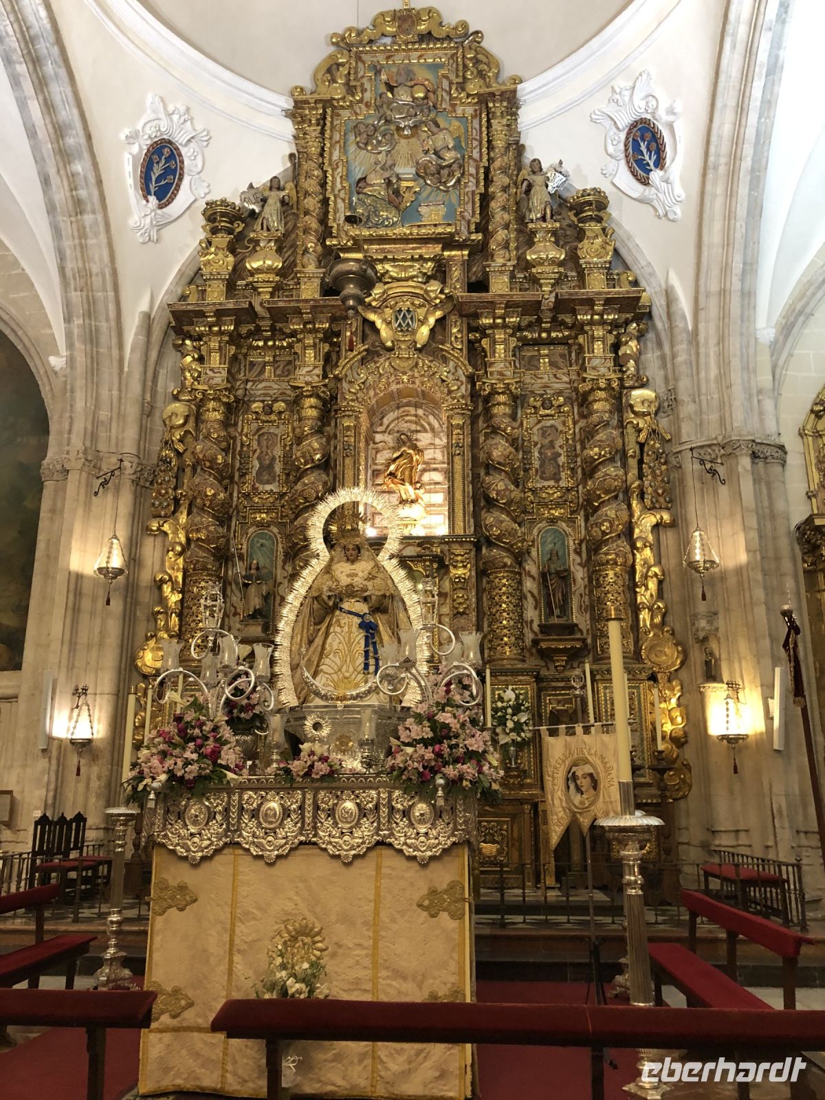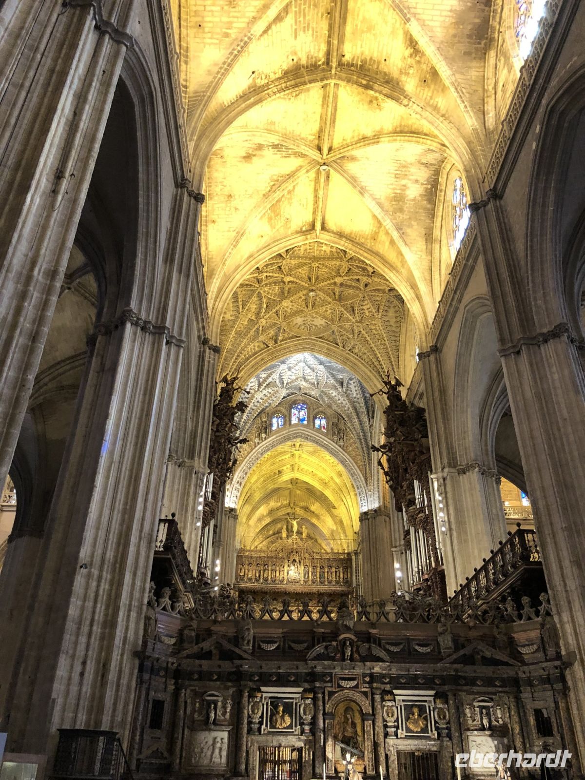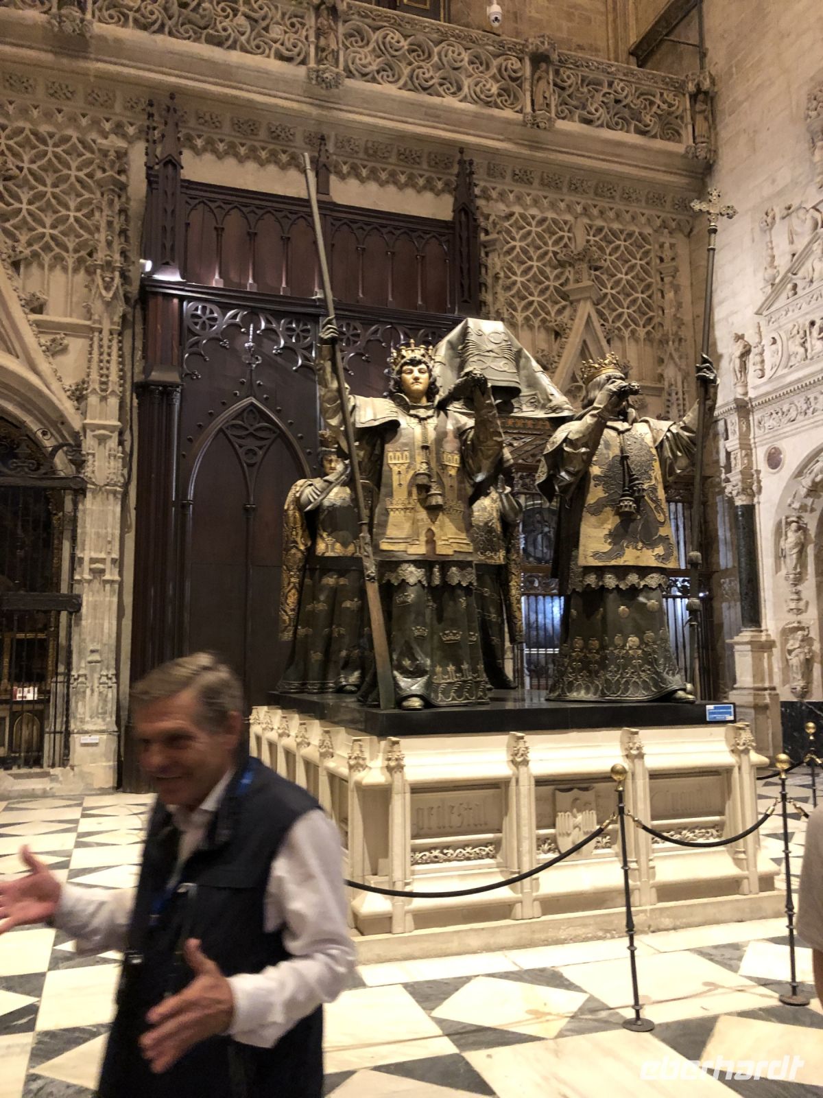 Vor dem Hauptaltar fanden wir einen Moment der Ruhe, aber auch zum Staunen und Durchatmen bevor wir auch bei Kolumbus' Grab noch kurz Wolfgangs Ausführungen über das Gotteshaus lauschten, dass nach der Eroberung der Stadt durch Ferdinand III. von Kastilien bereits 1248 wieder christlich wurde. Wolfgang kannte jede kleine Ecke der Kathedrale und hätte uns sicher noch den ganzen Nachmittag weitere Anekdoten berichten können.