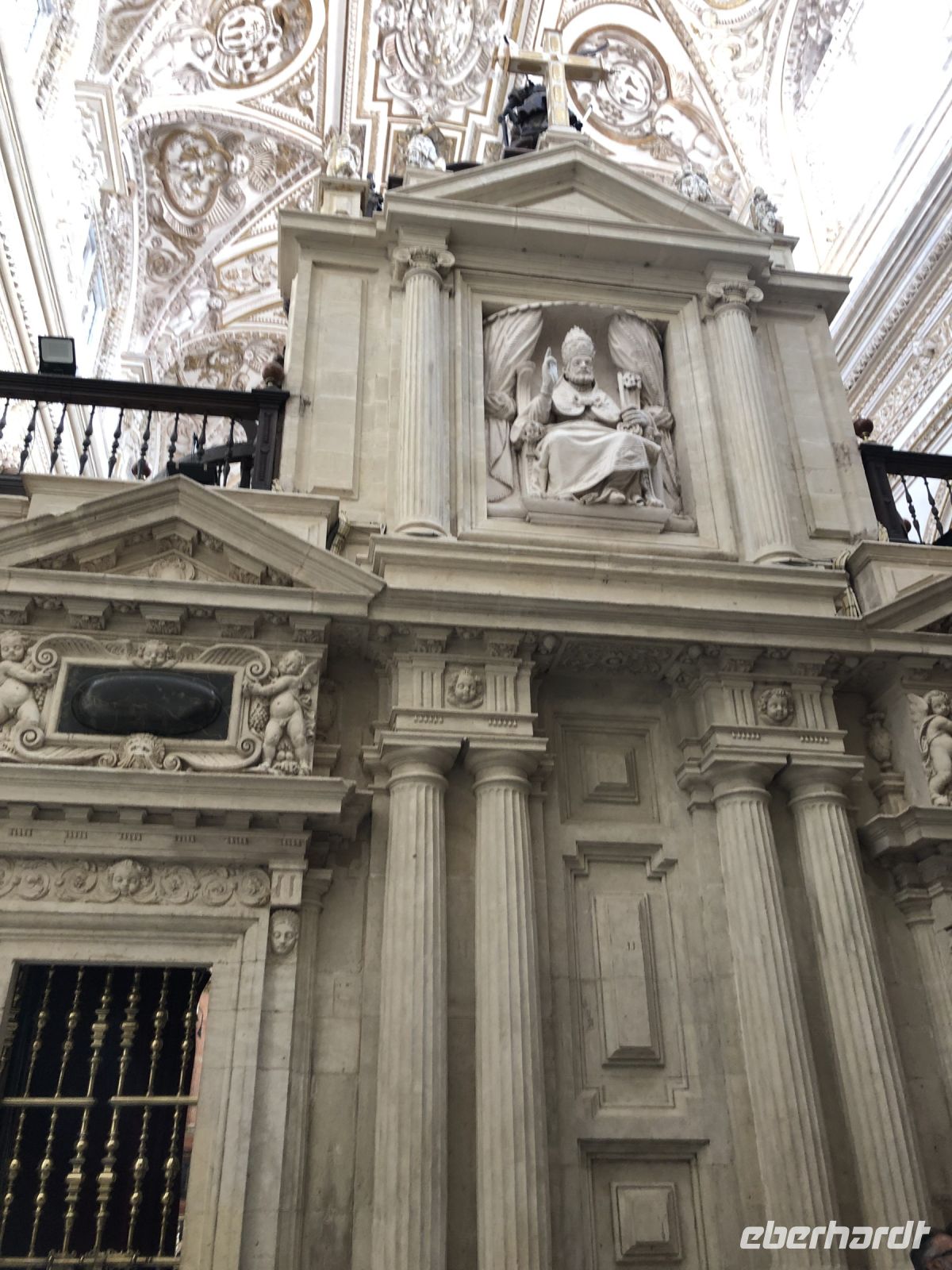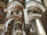Über das „Büßertor“ La Puerta del Perdón, betraten wir das 23.000 m² große Areal der Mezquita-Catedral de Córdoba – Europas älteste Moschee und standen erst einmal mitten im Patio de Naranjos – dem Orangenhof und nicht mitten in einem Wald aus Säulen. Doch dann sahen wir endlich das Meisterwerk islamischer Baukunst mit seinen 856 Säulen aus Jaspis, Onyx und Marmor. Es zog uns genauso wie auch schon Karl V. im 16. Jahrhundert in seinen Bann. Nicht nur wir waren beeindruckt von dem islamischen Bauwerk, sondern glücklicherweise ging es den christlichen Eroberern 1236 genauso. Mit der Reconquista, (der Zurückeroberung durch die Christen) wurde die Moschee von heut auf Morgen eine Kathedrale. Da sie jedoch eine Mischung aus Moschee und Kathedrale blieb, wurde sie 1984 zum Weltkulturerbe der UNESCO erklärt. Mit unserer lokalen Reiseleiterin Africa begaben wir uns nun auf die Entdeckungsreise zum Mihrab, der islamischen Gebetsnische, die den Gläubigen eigentlich die Gebetsrichtung nach Mekka anzeigt, was aber hier aus Nostalgiegründen des ersten Erbauers, des Omaijadenfürstes Abd ar-Rahman, nicht ganz der Fall ist. Weiter im Zentrum zwängt sich der gotische-Renaissance Hauptaltar, mitten hinein zwischen die rot-weißen Hufeisenbögen.