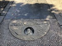 Danach starteten wir per pedes unseren Rundgang am Mercado Central de Atarazanas mit einem Erlebnis für alle Sinne: Sardinen, Käse, Oliven zum Probieren an jeder Ecke, Rosinen von der diesjährigen Ernte und ein Herz Malagas aus Feigen und gesalzenen Mandeln. Über die elegante Fußgängerzone Marques de Larios gelangten wir zur "La Manquita", der Kathedrale von Málaga, die im Volksmund unter dem Namen „die kleine Dame“ bekannt ist. Diesen Namen erhielt sie wegen des zweiten Kirchturms, der nur zur Hälfte fertiggestellt wurde. Nach einem kurzen Halt am römischen Amphitheater aus dem zweiten Jahrhundert vor Christus, schauten wir noch zu Antonio Banderas´ Restaurant „El Pimpki“, doch leider konnten wir ihn nirgends entdecken. So widmeten wir unser Augenmerk lieber dem größten Sohn Málagas: Pablo Picasso. Vor seinem Geburtshaus, der Casa Natal de Picasso steht eine Bank mit einer Statue des berühmten Malers und wir können nicht umhin, uns für eine Weile oder auch nur für ein Foto danebenzusetzen. Und hier trafen wir auch für einen Moment Daniel, unseren Guide aus Ronda wieder, der mit einem lauten „Holaaaaa“ begrüßt wurde.