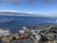 Am Rathaus nahmen wir unsere heutige Stadtführerin Cristina auf, die uns als erstes zum Mirador des 130 m hohen Monte Gibralfaro mitnahm. Dort sollen Chamäleons leben, doch wir entdeckten leider keine, dafür hatten wir einen herrlichen Blick auf die Stadt und die Küste, auf die Plaza de Toros de la Malagueta und den maurischen Palast, den Alcazaba. Der Berg Gibralfaro, der uns diese gigantische Aussicht bescherte, galt im 13. Jahrhundert als Schwachpunkt der fast uneinnehmbaren Stadt. Die Muslime wussten, dass die Stadt innerhalb weniger Tage von den Christen erobert worden wäre, wenn die Christen ihre Kanonen auf dem Berg aufgestellt hätten. Somit befahl Yusuf I., eine "coracha" zu bauen, einen ummauerten Korridor, der die Alcazaba mit dem Gibralfaro verband und es den Soldaten ermöglichte, sich sicher von einem Ort zum anderen zu bewegen. Von der Festungaus konnten sie dann die Stadt und den Hafen erreichen.
