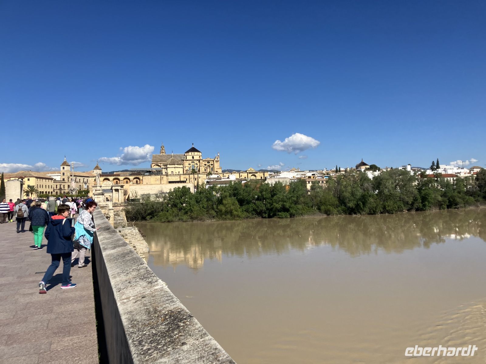 Den restlichen Nachmittag nutzten wir für einen entspannten Bummel durch die Altstadt. Die verwinkelten Gassen mit ihren weiß gekalkten Häusern, kunstvoll verzierten Balkonen und versteckten Innenhöfen luden zum Entdecken ein. Wer die Aussicht genießen wollte, spazierte zur römischen Brücke, die den Guadalquivir überspannt und die Stadt mit dem Umland verbindet. Von hier bot sich ein atemberaubender Blick auf die Skyline Córdobas, mit der imposanten Mezquita (Moschee) als krönendem Mittelpunkt.