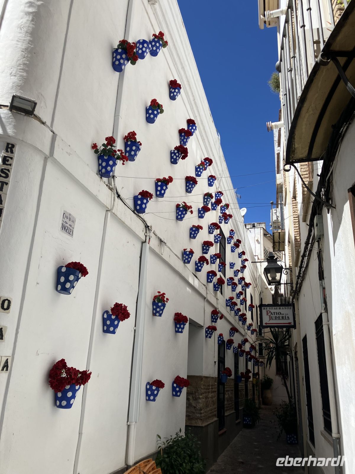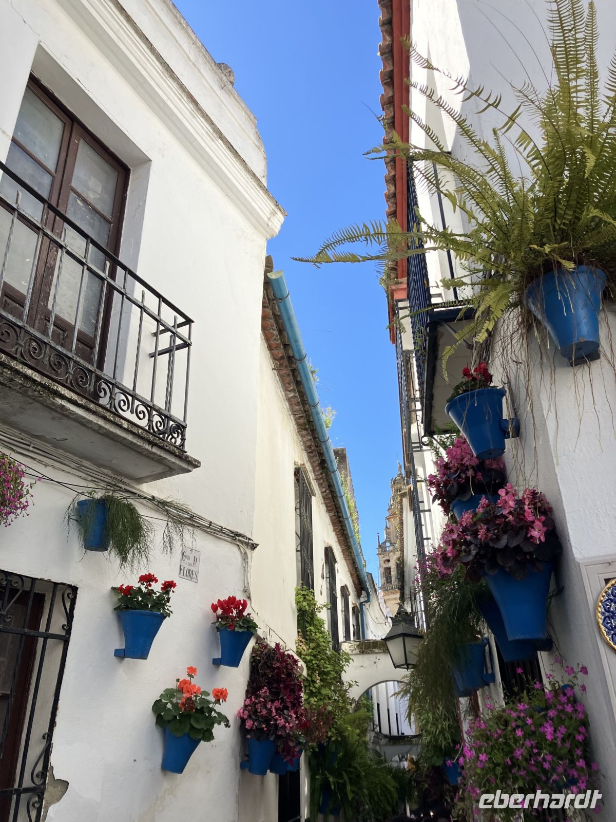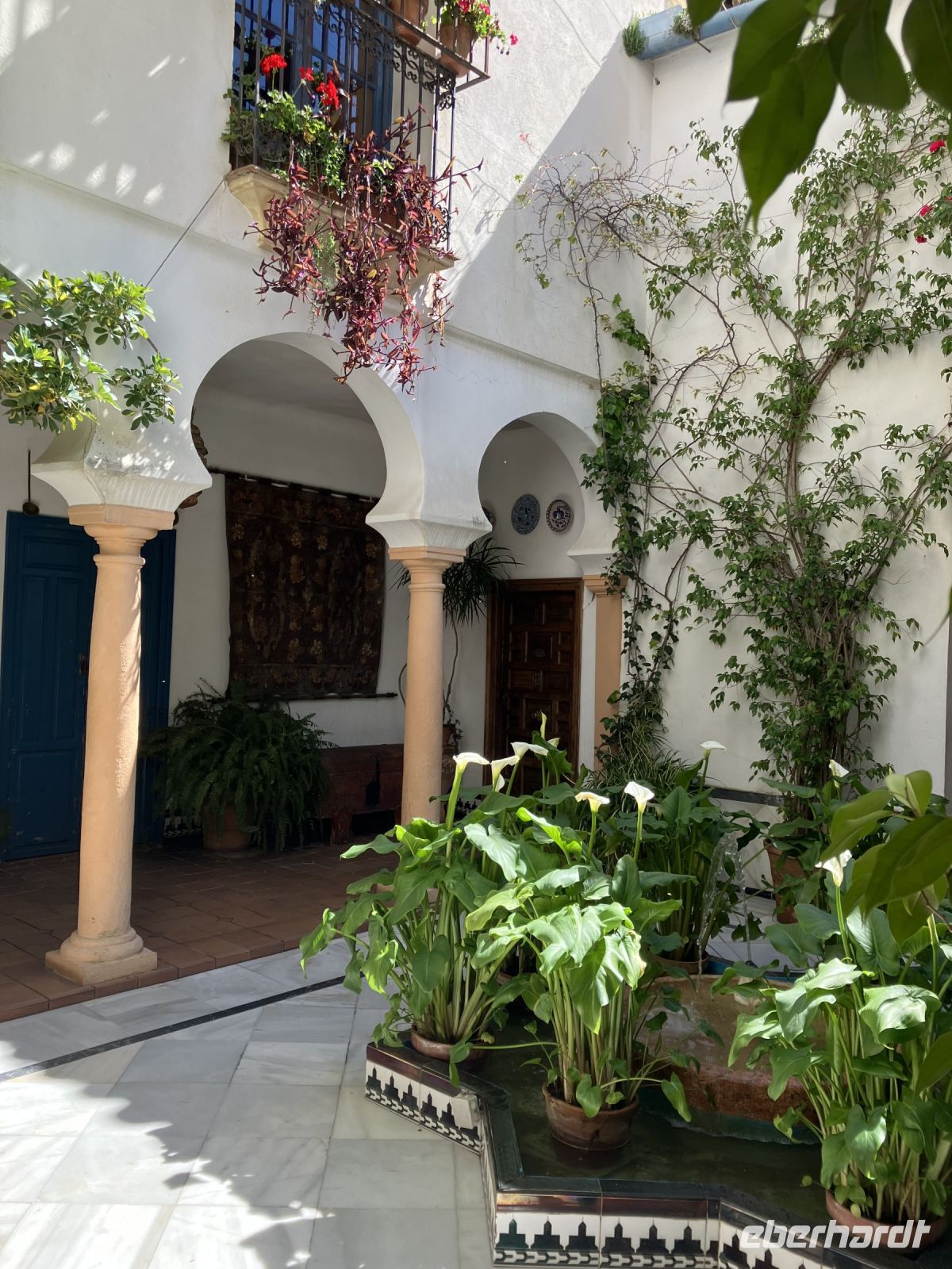Nach diesem einzigartigen Erlebnis spazierten wir durch die engen Gassen der Altstadt, die noch immer den Charme vergangener Jahrhunderte versprühten. Unser Weg führte uns zu den berühmten Patios von Córdoba, die gerade in voller Blüte standen. Diese Innenhöfe, liebevoll geschmückt mit bunten Blumen, duftenden Pomeranzenbäumen und plätschernden Brunnen, erschienen uns wie kleine Oasen mitten in der Stadt. Wir konnten uns kaum sattsehen an den leuchtenden Geranien, Bougainvilleen und Jasminsträuchern, die die weiß getünchten Wände schmückten und dem Ort ein fast märchenhaftes Ambiente verliehen.