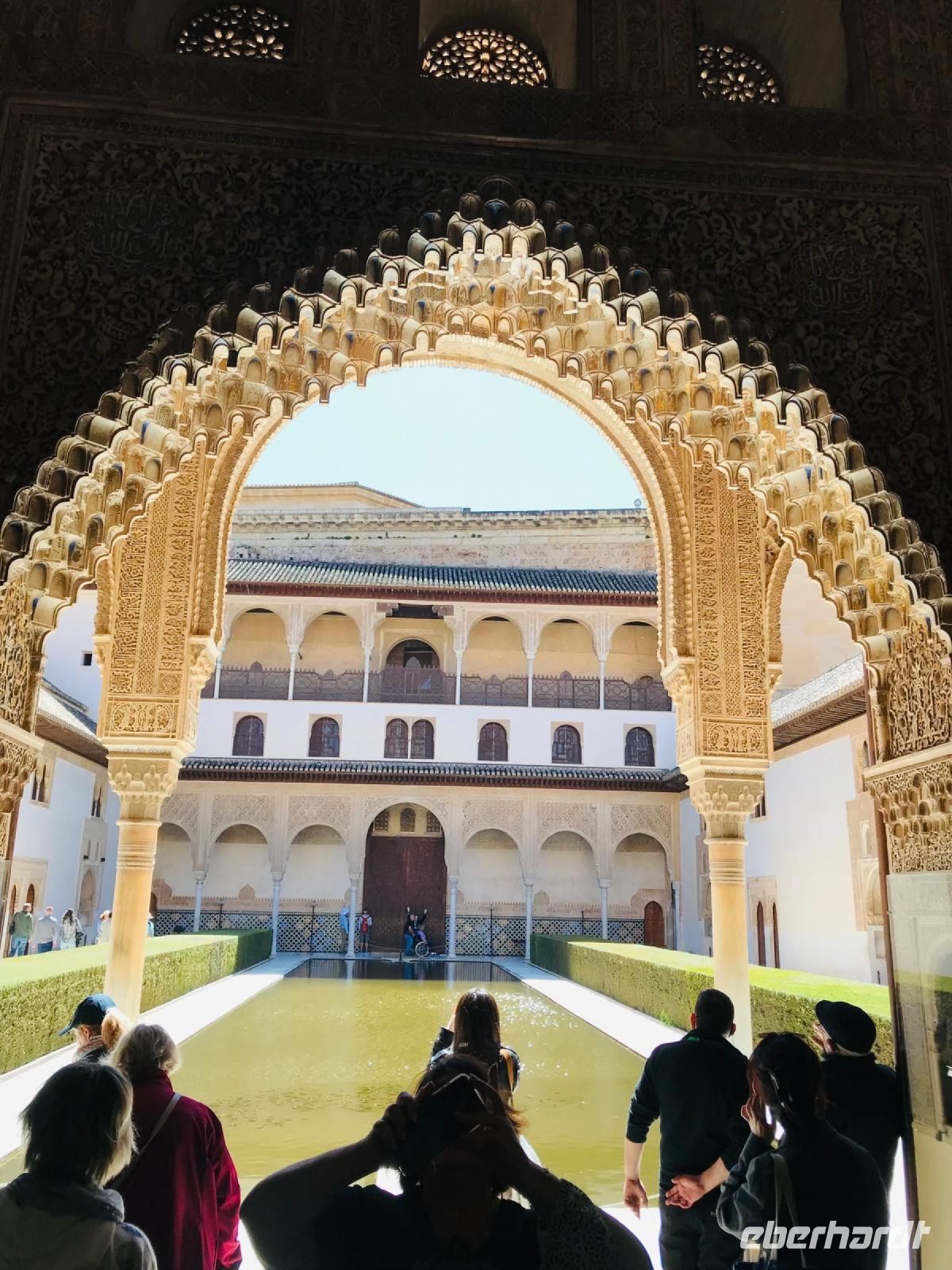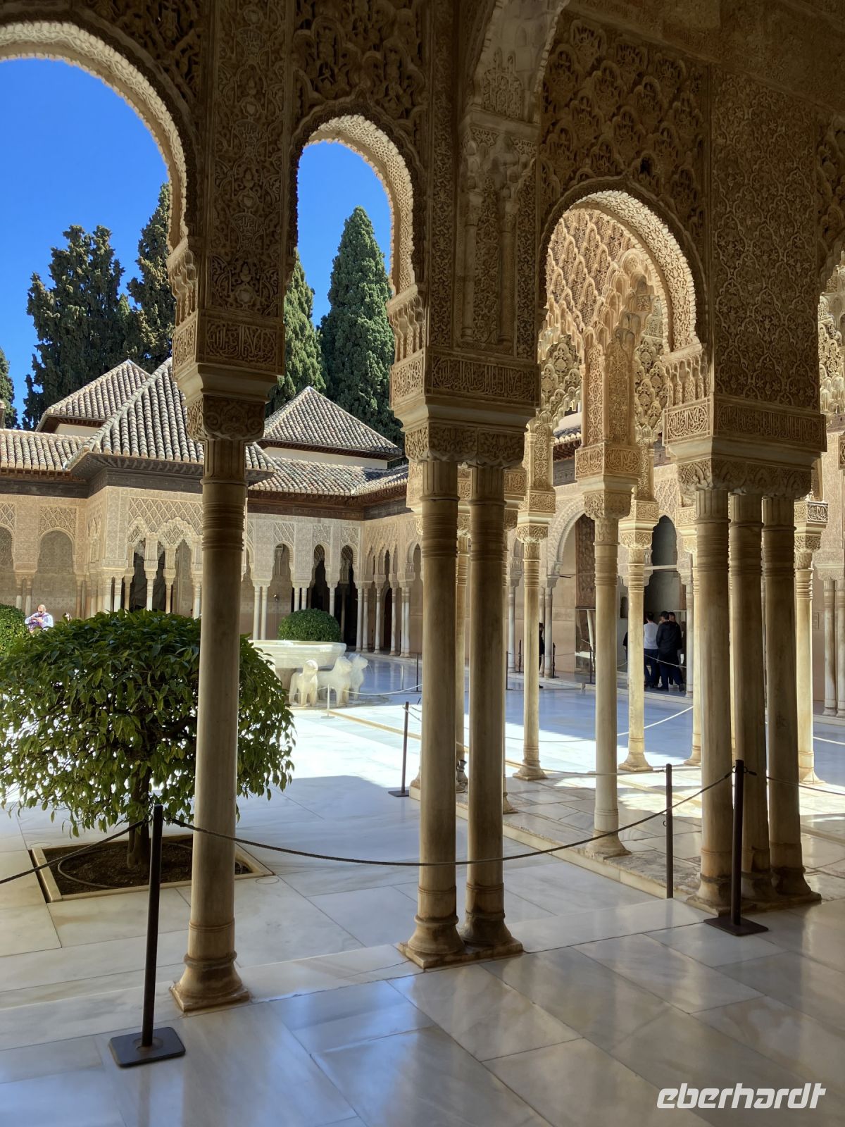 Dann wurde es noch beeindruckender: Wir betraten die legendären Nasridenpaläste, ein wahres Meisterwerk filigraner Architektur. Jeder Raum schien noch prachtvoller als der vorherige – Wände, die mit aufwendigen Stuckornamenten, feinsten Mosaiken und kunstvollen Holzschnitzereien verziert waren, ließen uns in Ehrfurcht erstarren. einige von uns warteten aber auf einen besonderen Höhepunkt. Der Löwenhof mit seinem berühmten Brunnen, getragen von zwölf marmornen Löwen, zog uns in seinen Bann. In den eleganten Arkaden und Säulengängen konnte man sich lebhaft vorstellen, wie einst Sultane und Gelehrte hier wandelten.