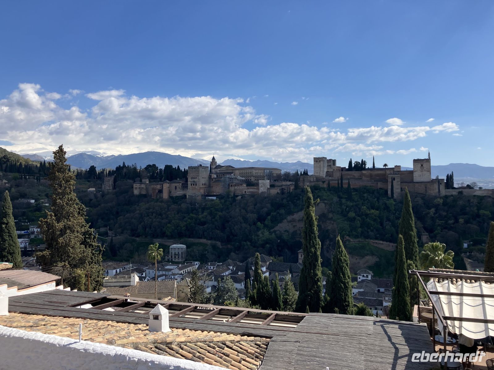 Zum krönenden Abschluss erklommen wir die alte Festung Alcazaba, die einst der militärische Kern der Alhambra war. Von ihren wuchtigen Mauern aus bot sich uns ein unvergleichlicher Blick: Vor uns erstreckte sich die weiße Altstadt Granadas, dahinter die schneebedeckten Gipfel der Sierra Nevada, die in der klaren Luft fast zum Greifen nah erschienen. Ein Anblick, der uns sprachlos machte und uns noch einmal die Magie dieses Ortes bewusst werden ließ.