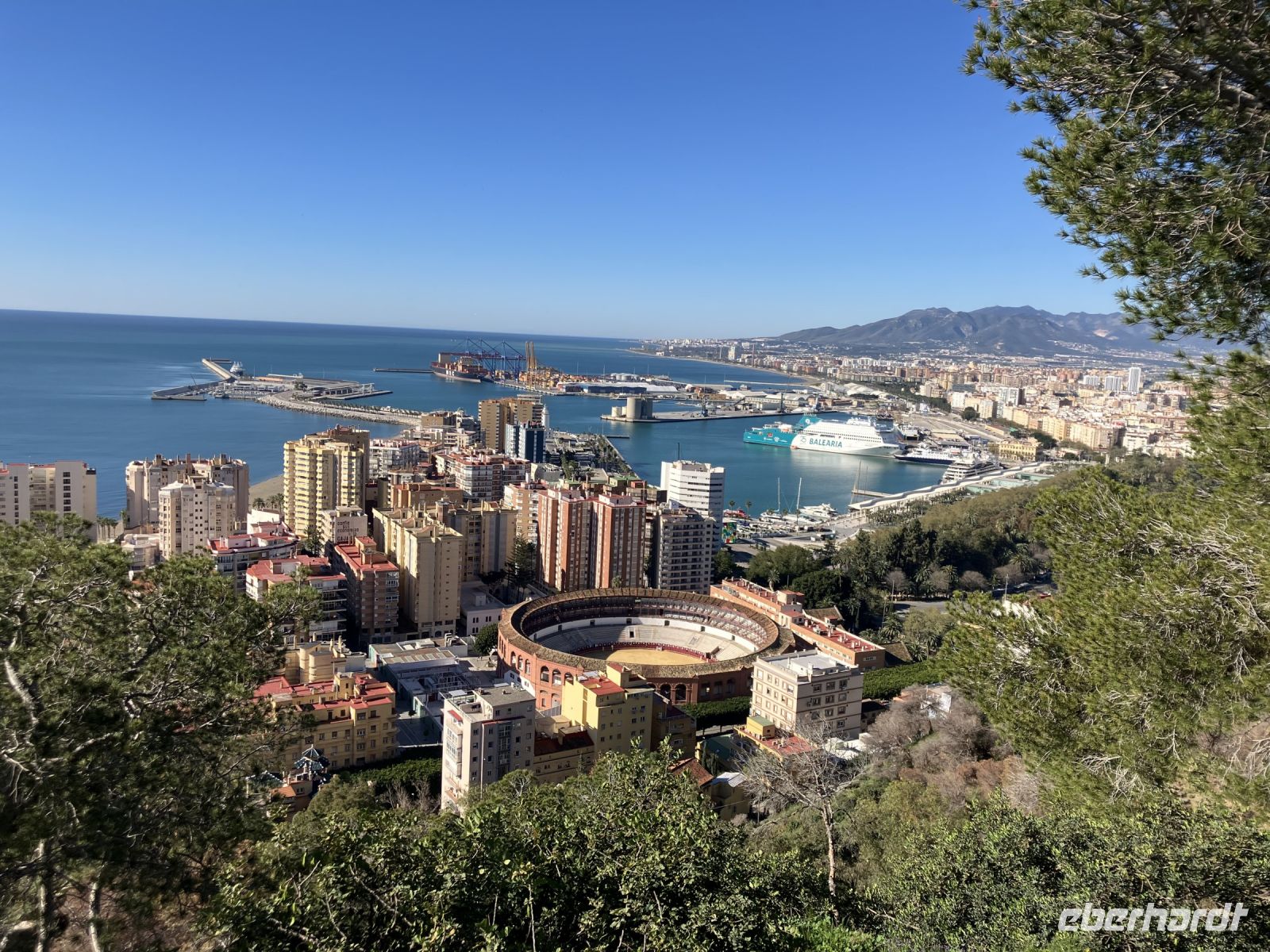 Unser erster Halt der Aussichtspunkt am Gibraltar, von wo wir mit Reiseführerin Cristina auf die Hafenstadt und die Alcazaba, eine maurische Festung aus dem 11. Jahrhundert, schauten, die sich majestätisch über der Stadt erhebt. Auch wenn wir sie nur von außen bewunderten, konnten wir erahnen, welch spektakuläre Aussichten ihre hohen Mauern bieten.