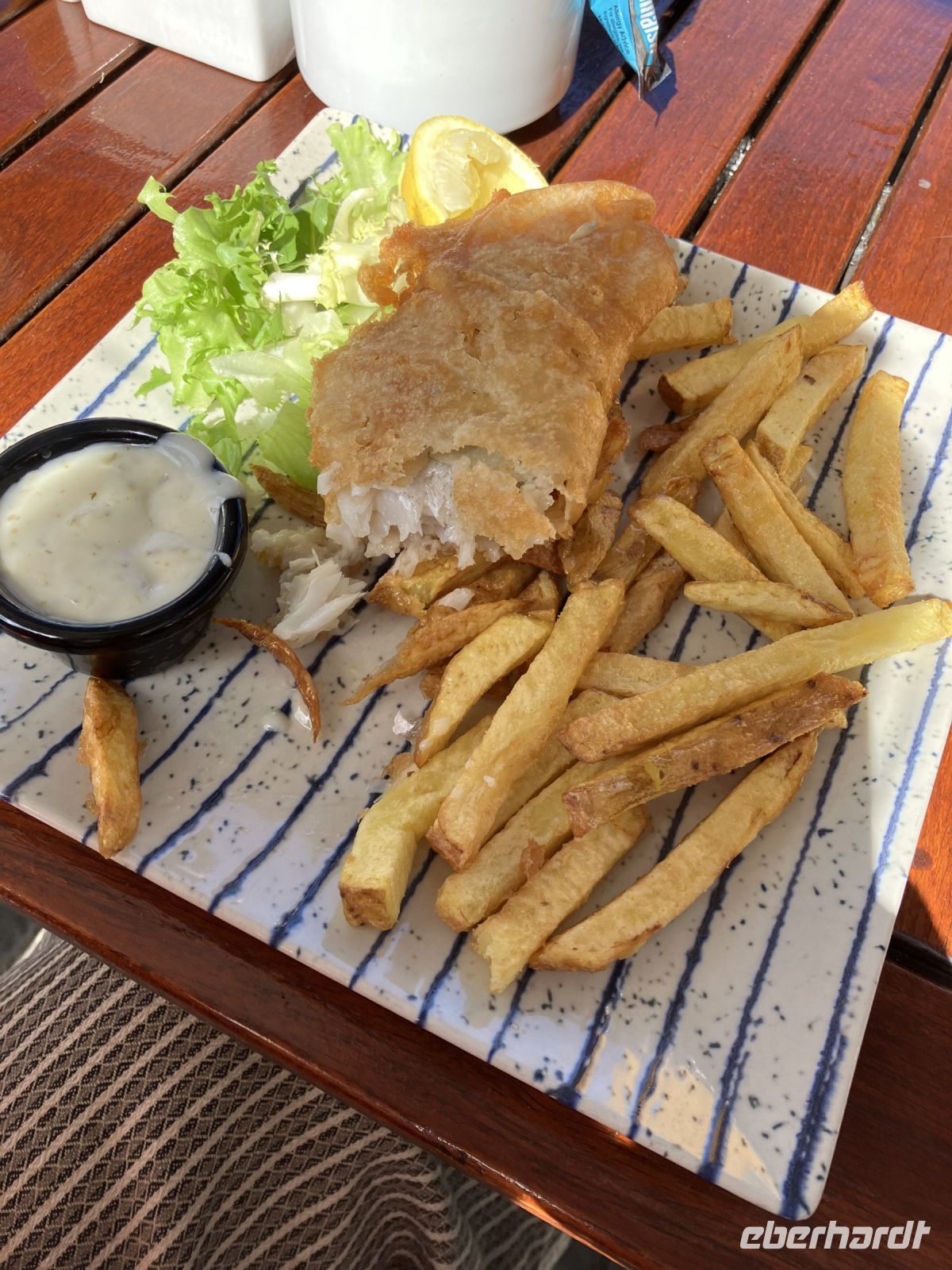 Natürlich durfte ein kulinarischer Abstecher nicht fehlen: In einem der traditionellen Pubs wollten wir die berühmten Fish and Chips probieren – ein Muss in Gibraltar! Doch das gestaltete sich schwieriger als gedacht, denn durch den heutigen Muttertag waren fast alle Tische bereits reserviert. Doch schließlich fanden wir ein gemütliches Plätzchen und genossen die frisch frittierten Fischfilets mit knusprigen Pommes.