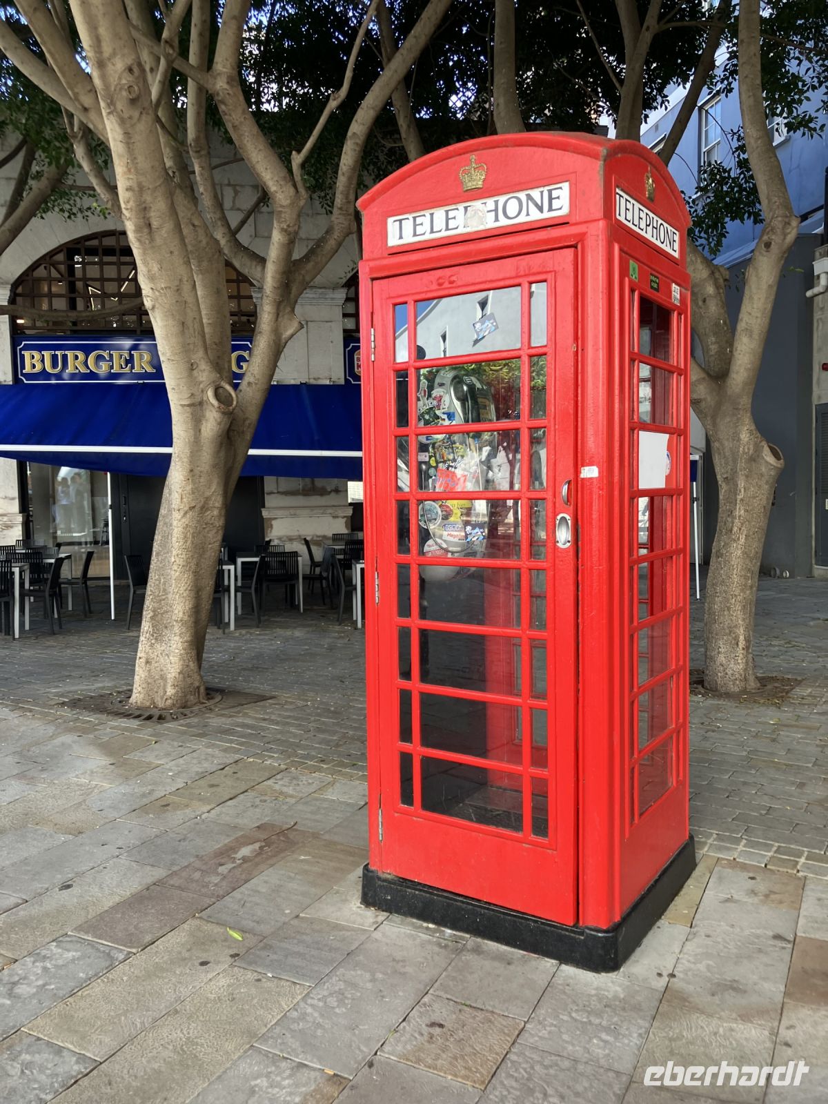 Unser erster Weg führte uns in die berühmte Main Street, das pulsierende Herz Gibraltars. Hier reihten sich charmante britische Pubs an exklusive Duty-Free-Shops, in denen heut zum Sonntag nur wenige Besucher nach günstigem Alkohol, Tabak oder Parfum suchten. So blieb es auch für uns bei einem gemütlichen Spaziergang durch die sonst so geschäftige Fußgängerzone mit britischen Ambiente. Selbst die roten Telefonzellen und die ebenso roten Briefkästen erinnerten uns daran, dass wir uns auf britischem Hoheitsgebiet befanden – und das mitten in Südspanien!
