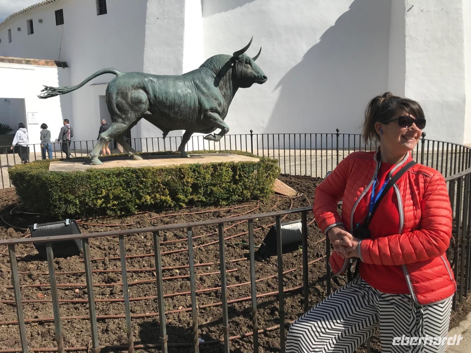 Nach einer malerischen Fahrt erreichten wir schließlich Ronda, eine der ältesten Städte Spaniens und ein Ort, der schon Schriftsteller wie Ernest Hemingway und Rainer Maria Rilke inspirierte. Mit unserem dynamischen Reiseführer Daniel und seinem australischem Hut machten wir uns auf den Weg durch Ronda. Mit ihm erreichten wir zuerst eines der bedeutendsten Wahrzeichen Rondas: die Plaza de Toros, eine der ältesten und traditionsreichsten Stierkampfarenen Spaniens. Als wir durch das sandfarbene Rund traten, spürten wir die Geschichte, die in den Mauern vibrierte. Hier fanden schon im 18. Jahrhundert die ersten großen Stierkämpfe statt, und bis heute gilt diese Arena als eine der wichtigsten Stätten der spanischen Corrida. Wir lauschten Daniels Erzählungen über berühmte Toreros, die hier Legenden wurden, was Stierkampf heute bedeutet und wieviele Arbeitsplätze daran hängen. Viel Neues zum Nachdenken...