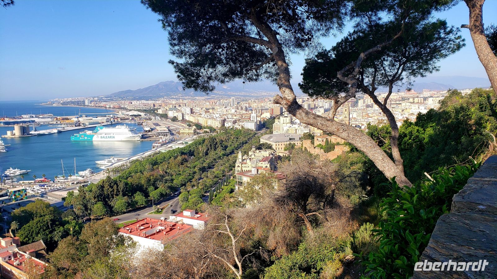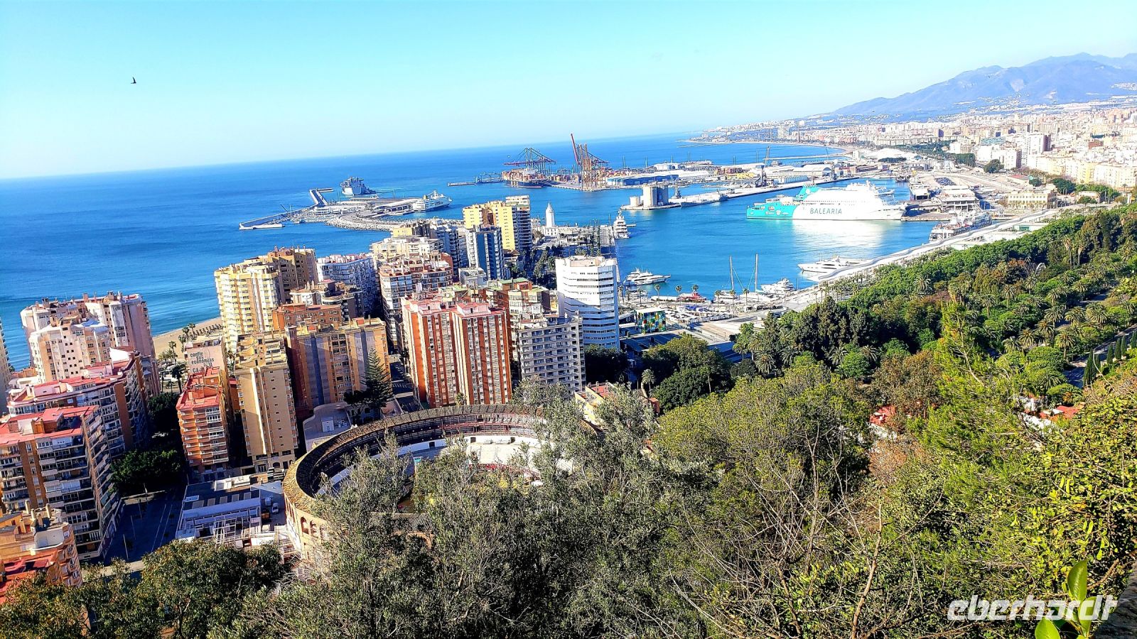 Um 8.45 Uhr gejt es mit dem Bus nach Malaga, wo wir schon eine halbe Stunde später Maria, unsere Stadtführerin treffen, die zu uns in den Bus steigt. Als erstes gibt es oberhalb der Stadt einen Stopp für Fotos, von hier hat man einen tollen Blick über die ganze Stadt mit Hafen. Dann drehen wir noch eine Runde durch die Stadt, bevor wir aussteigen und mit Maria zu Fuß weitergehen. Von einer archäologischen Ausgrabungsstätte geht es zu Pablo Picassos Geburtshaus, wir machen Fotos mit und von der Picasso Statue und dann geht es weiter durch die Altstadt, vorbei am Picasso Museum bis zur Kathedrale. Als die Tour endet, gehen die Meisten mit mir direkt in das berühmte Restaurant „El Pimpi“, wo wir draußen Plätze ergattern. Antonio Banderas wohnt direkt neben dem "El Pimpi" Restaurant, aber an diesem Tag sehen wir ihn nicht...