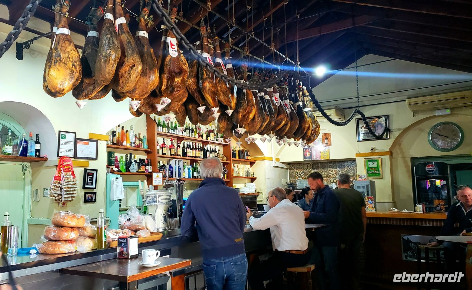 Zunächst geht es nach Ronda in die Berge, wieder vorbei an endlosen Olivenhainen, aber auch Korkeichenwälder sehen wir. Die Fahrt führt ein Stück entlang der Route der weißen Dörfer , den "pueblos blancos". An Berghängen sehen wir, wie angeklebt, kleine Dörfer mit weißgekalkten Häusern, ein hübscher Anblick. Unterwegs machen wir eine Kaffeepause in dem urigen Restaurant "El Cortijo".