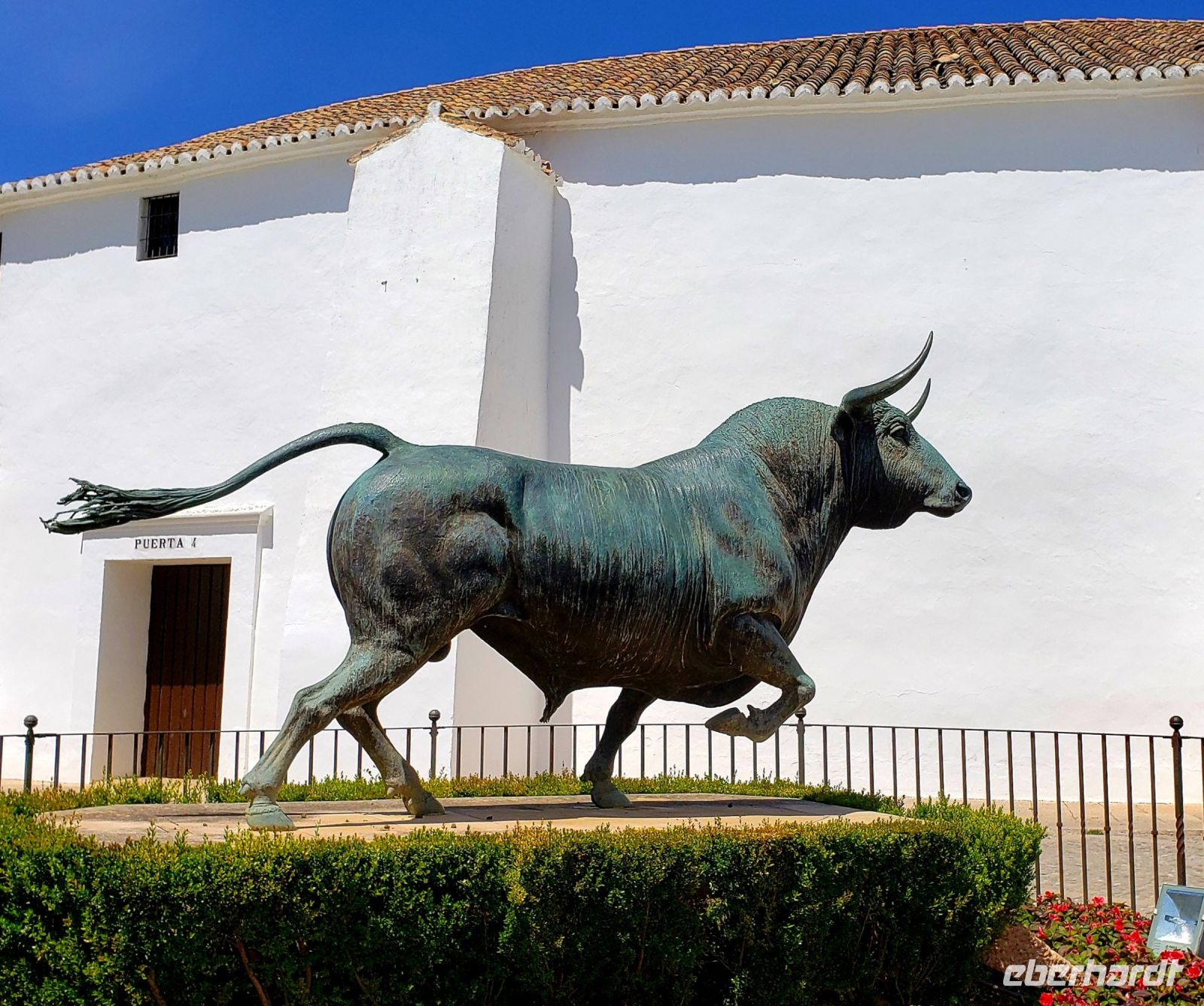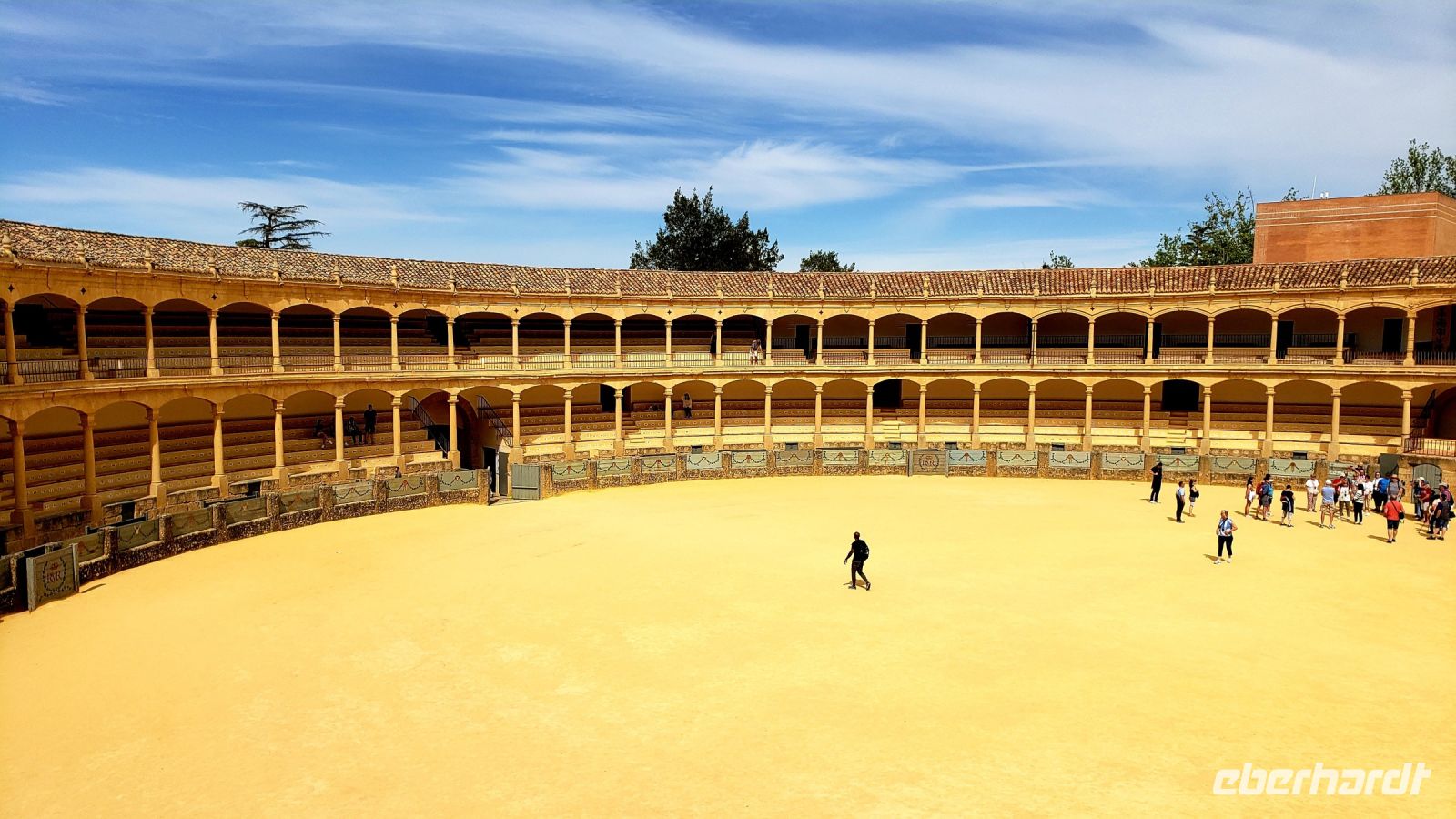 In Ronda erwartet uns Armando, der uns den Ort zeigen wird. Ich hatte den Gästen vorab erzählt, dass schon Ernest Hemingway, Orson Welles und Ava Gardner begeistert von Ronda waren und wir sind es auch! Die Stadt liegt auf einem Plateau, überall gibt es spektakuläre Ausblicke in Schluchten oder Berghänge. Armando führt uns durch den schönen Ort zur Kirche "Santa María la Mayor", wo wir die dazugehörige Historie erfahren. Weiter geht es Richtung Stierkampfarena, die Gäste sind erstaunt, wie groß die Arena ist. Nachdem Armando uns noch Tipps für Restaurants oder Einkaufsmöglichkeiten gegeben hat, verabschieden wir uns von ihm. Ich mache mit der Gruppe einen Treffpunkt ab und alle verteilen sich in der Fußgängerzone. Ein Teil der Gruppe setzt sich mit mir draußen in das Restaurant "Mesón Rodeño" für ein kleines Mittagessen. Anschließend bummeln wir durch den Ort, es gibt Kunsthandwerk, z.b. Keramik, Lederwaren oder auch Olivenöl. Die Zeit vergeht im Fluge, uns allen gefällt dieser kleine, hübsche Ort mit den faszinierenden Aussichten. Um 15 Uhr treffen sich alle Gäste am vereinbarten Punkt und gemeinsam gehen wir zum Bus zurück.