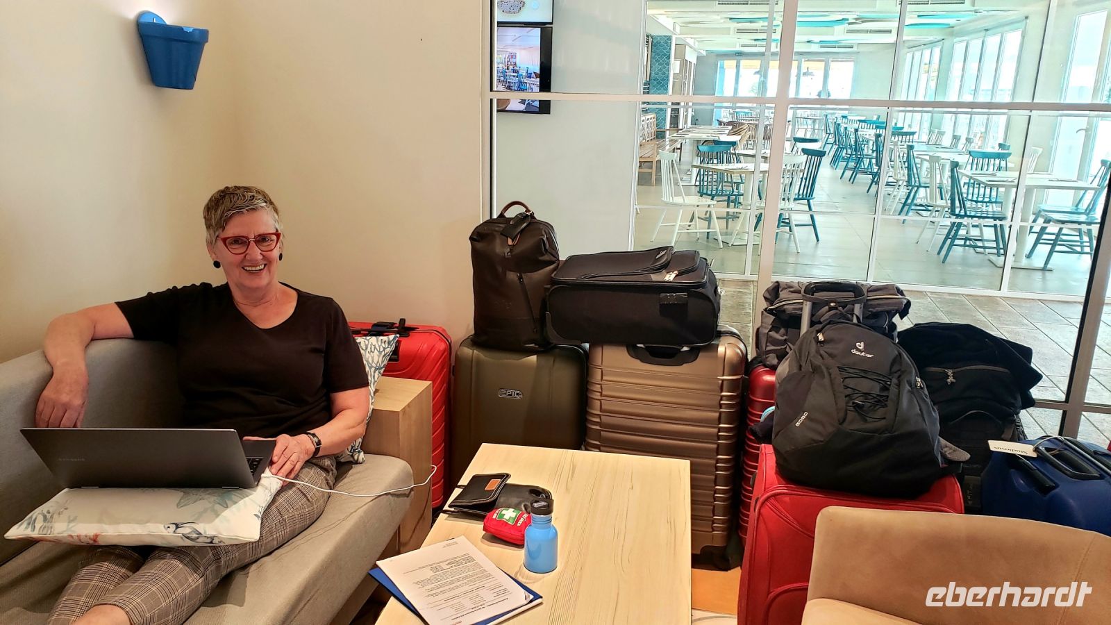 Vor dem Abendessen treffen wir uns, um gemeinsam das Online Check-in zu erledigen, dann gibt es ein letztes Mal Abendbuffet im Hotel. Anschließend darf ich im Namen von Eberhardt Travel für die Gruppe einen „Abschiedstrunk“ spendieren. Es gibt Rotwein und den Sherrywein „Moscatel“, wer etwas ohne Alkohol möchte, kann dies natürlich auch bestellen. So sitzen wir noch eine Weile sehr nett und gemütlich zusammen, dann geht es auf die Zimmer, Koffer packen.