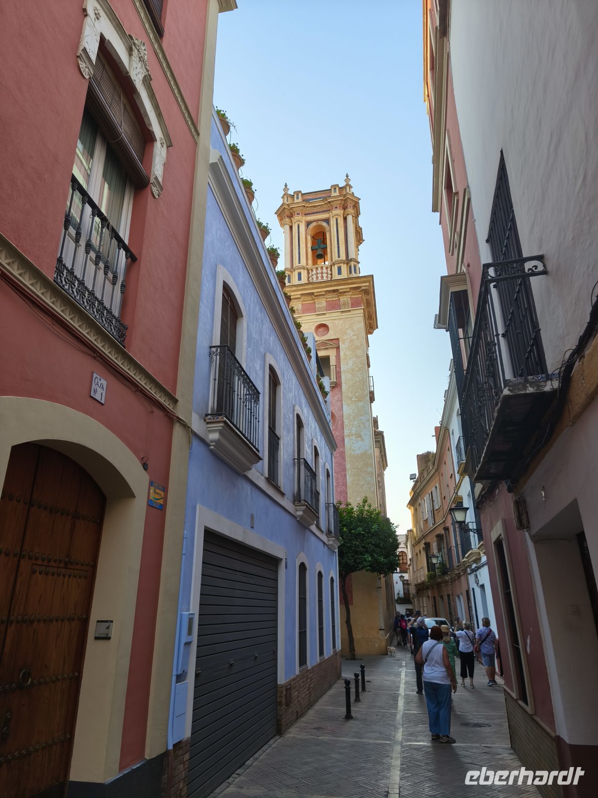 Nur wenige Schritte vom Alcazar entfernt im Herzen der Altstadt, beeindruckt das gewaltige Bauwerk - die Kathedrale. Sie ist die größte gotische Kathedrale der Welt. Man spürt beim betreten die besondere Atmosphäre des riesigen Innenraums. Hohe Gewölbe, kunstvoll geschnitzte Chorstühle und prächtige Altäre zeugen von meisterhafter Handwerkskunst. Wir besichtigen das Grabmal von Christoph Kolumbus, das von vier mächtigen Figuren getragen wird. Sie stellen die Königreiche Kastilien, Leon, Aragon und Navarra dar. Marta erzählt am Ende ihrer Führung mit einem Schmunzeln, dass es gar nicht ganz sicher ist, wo nun Kolumbus wirklich seine letzte Ruhe gefunden hat und ob überhaupt noch ein bisschen Staub im Sarg zu finden ist....offenbar war er selbst im Tod noch unentschlossen wie zu Lebzeiten, wenn es um seine Ziele ging.