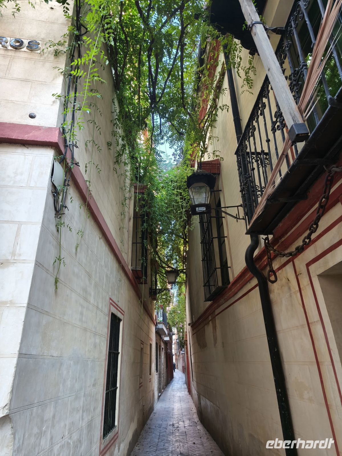 Marta unsere Stadtführerin holt uns pünktlich im Hotel ab und wir spazieren zunächst durch das ehemalige jüdische Viertel Santa Cruz. Es geht durch kleine, schmale, verwinkelte Gässchen, vorbei an kleinen Plätzen und bunt bepflanzten Balkonen. Marta erzählt uns Legenden und Geschichten die sich um diesen Teil der Stadt ranken.