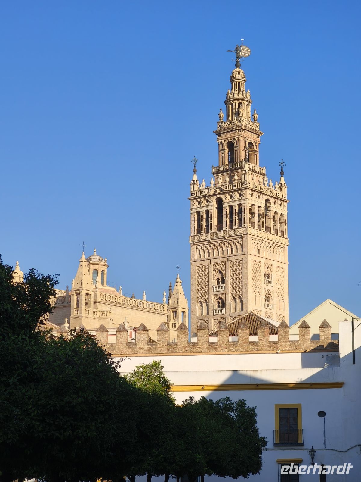 Einige Mutige erklimmen nun mit mir noch die Giralda, den berühmten Glockenturm. Es geht 35 Rampen hoch. Rampen, da einst der Muezzin hoch zu Ross den Turm erklomm. Wir schnaufen ein wenig, da leider per pedes unterwegs..... oben angekommen werden wir dann mit einer atemberaubenden Aussicht über Sevilla belohnt.