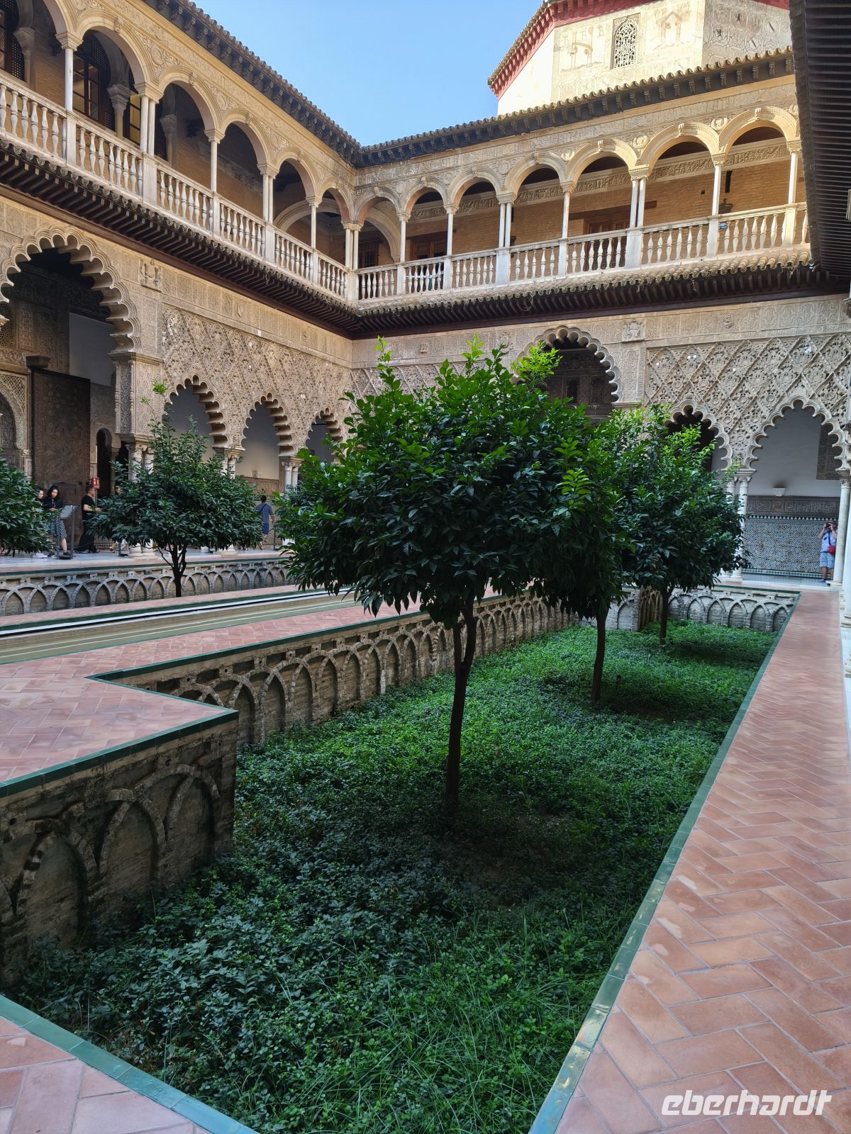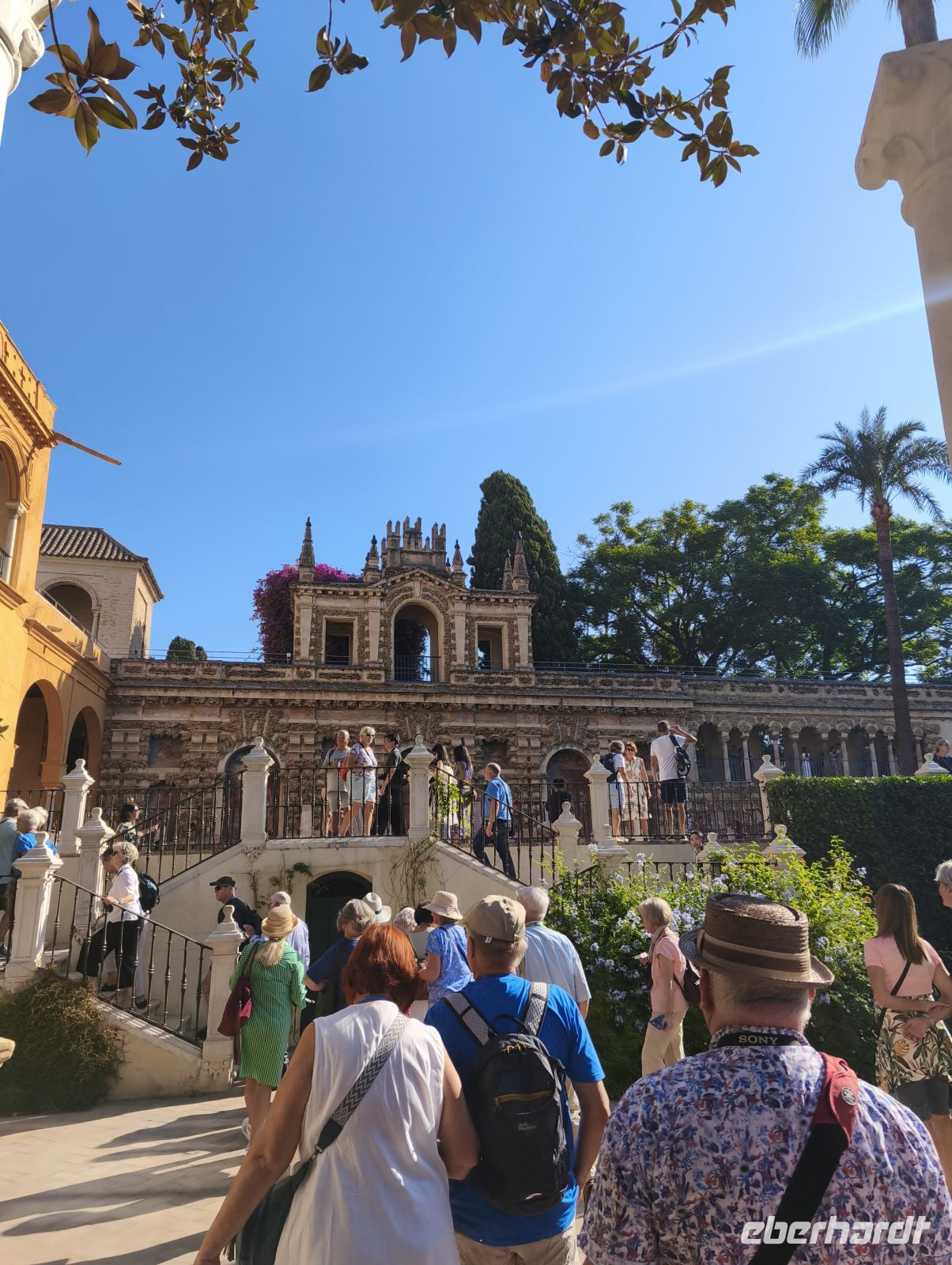 Der Weg führt uns weiter zum prachtvollen Königlichen Alcazar. Ursprünglich von den Mauren im 10. Jahrhundert errichtet und später von christlichen Königen erweitert, vereint der Alcazar islamische, gotische, Renaissance-und barocke Elemente. Die filigranen Verzierungen und Bögen, der wunderschöne Garten lassen uns staunen.