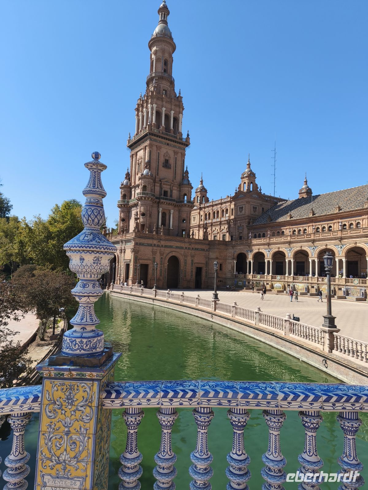 Am Nachmittag besuchen einige mit mir den berühmten Plaza de Espana. Die halbkreisförmige große Anlage mit ihren Brücken, Wasserkanälen und bunten Fliesen ergibt eine wunderschöne Kulisse. Der Platz wurde 1929 anlässlich der Iberoamerikanischen Expo gestaltet.