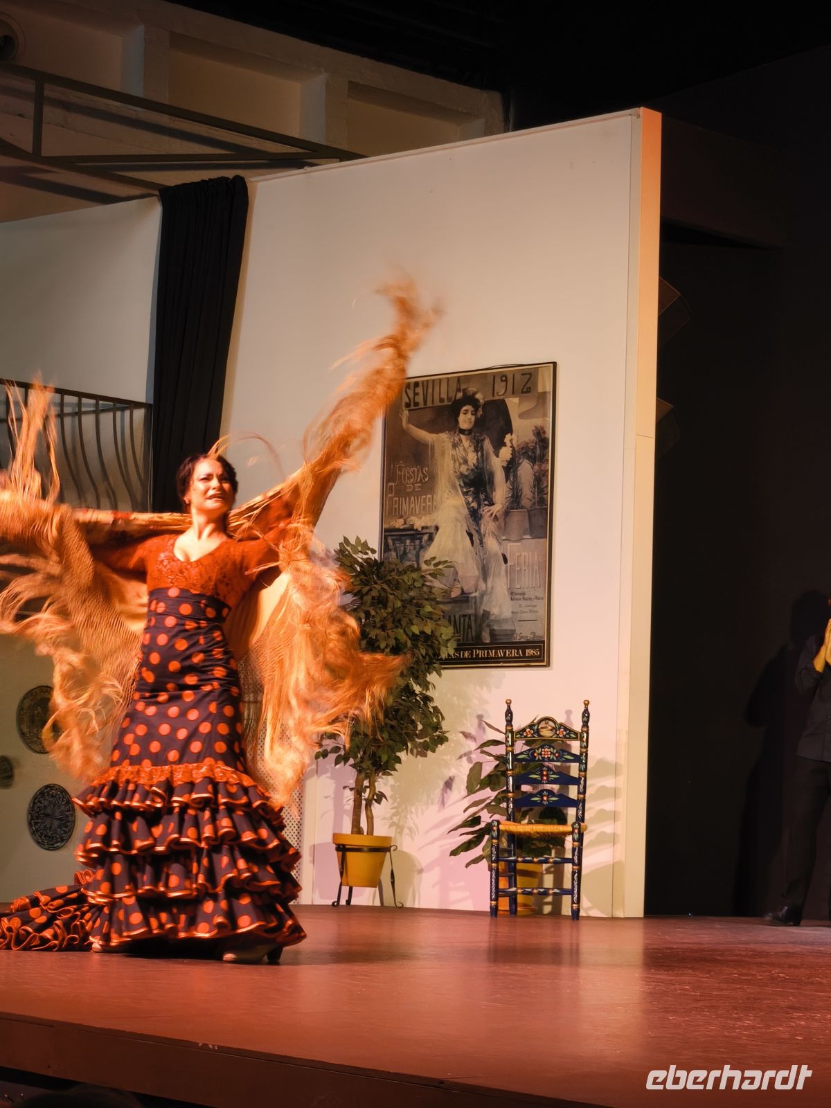 Am Abend schauen wir uns noch eine farbenfrohe, temperamentvolle Flamenco Show an. Sie begeistert uns sehr.