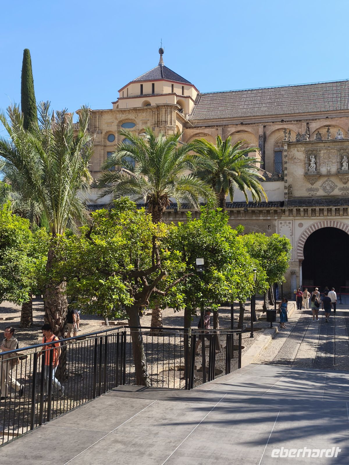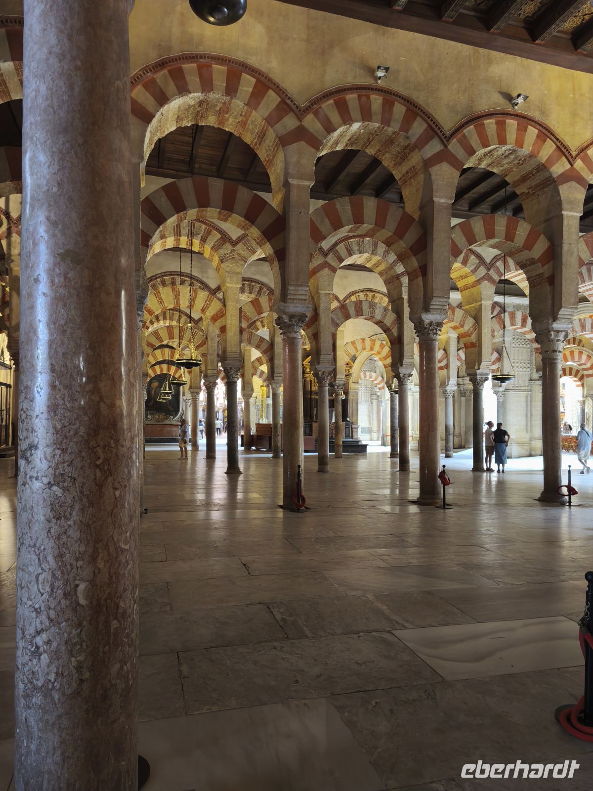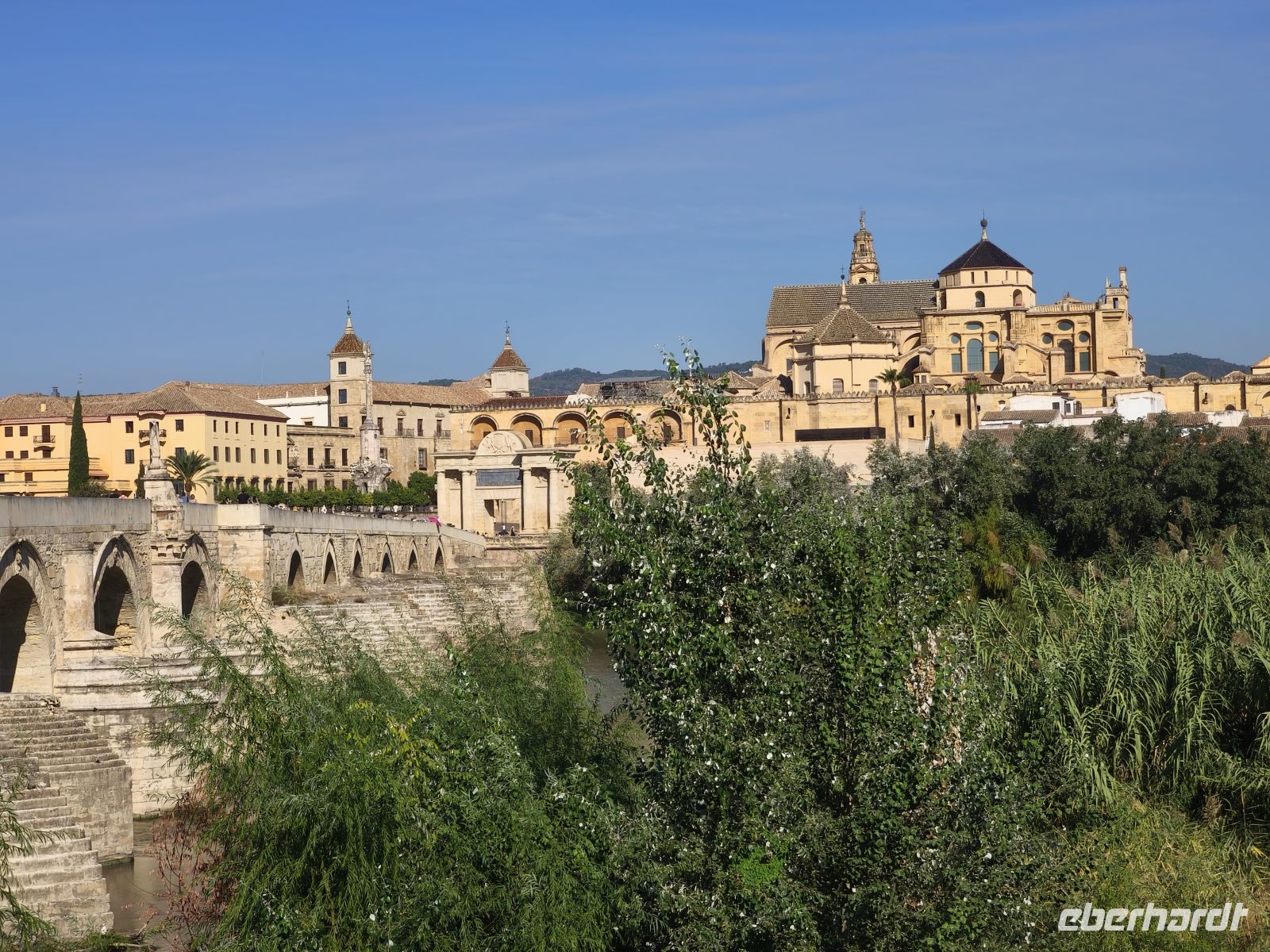 Heute besuchen wir die Stadt Cordoba. Über 16 mächtige Steinbögen führt uns die Puente Romana über den Fluss Guadalquivir direkt auf die Stadt zu. Wir haben einen fantastischer "Postkartenblick" von der Brücke auf die Mezquita Kathedrale, das Wahrzeichen von Cordoba. Am Haupteingang treffen wir unsere örtliche Reiseführerin Nuria. Sie führt uns durch den "Patio de los Naranjos" der mit vielen Orangenbäumen bestückt ist in die Kathedrale. Im inneren erwartet uns ein atemberaubender Anblick: unzählige rot-weiße Bögen, die sich scheinbar endlos durch den Raum ziehen. Nuria erzählt, dass die Moschee im 8Jh. unter den Mauren erbaut wurde und später zur Kathedrale umgebaut wurde, nachdem die Christen die Stadt zurückerobert hatten. Besonders faszinierend war der Gegensatz zwischen der maurischen Architektur und der barocken Kathedrale, die mitten in das ehemalige Gebetshaus, Moschee eingefügt wurde.